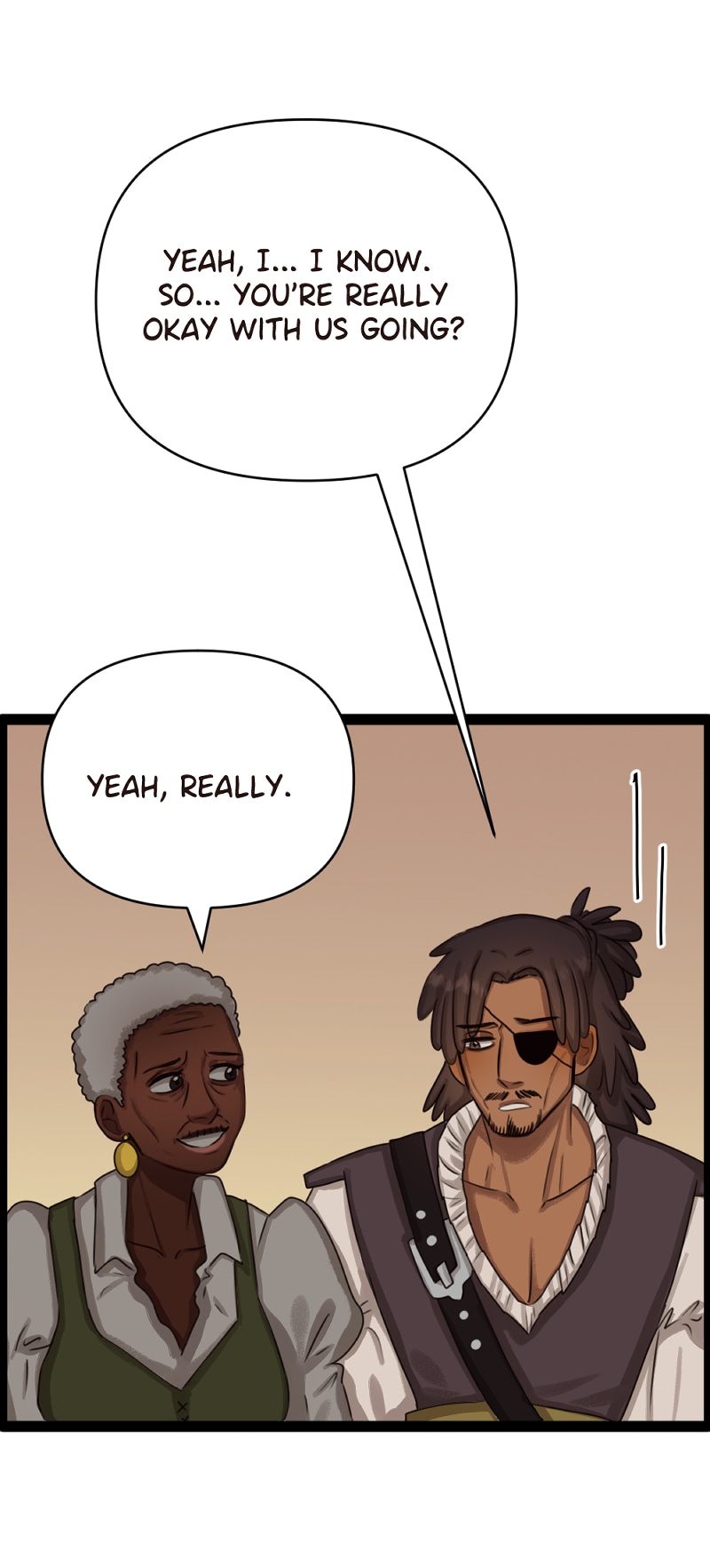 (SLOW BURN, LGBT+) Yasmin is a pirate who's obsessed with The Legend of the Holy Pearl, which says that this desirable treasure is supposed to be in the dephts of the sea. Her father, the captain of their ship, is just a grumpy man who doesn't care about legends at all. He only focuses on stealing, surviving... and leaving behind his mysterious past. Will Yasmin ever progress with her goal of finding the Holy Pearl? CW: strong language, slavery and depictions of abuse and violence.