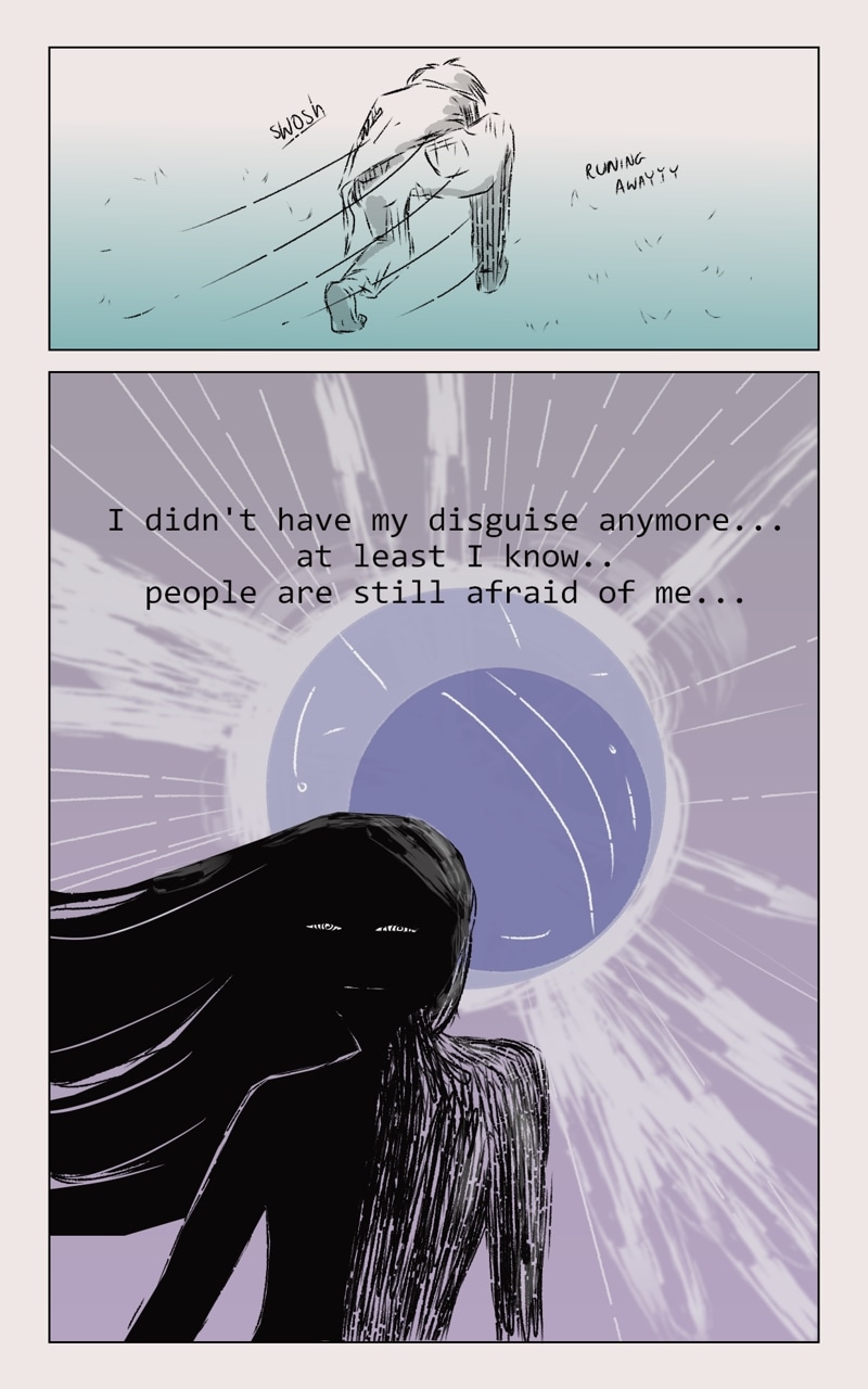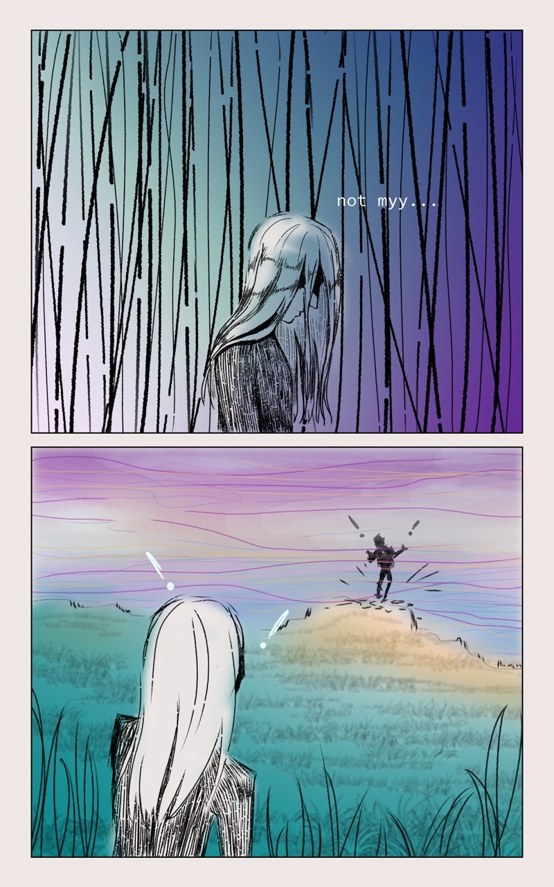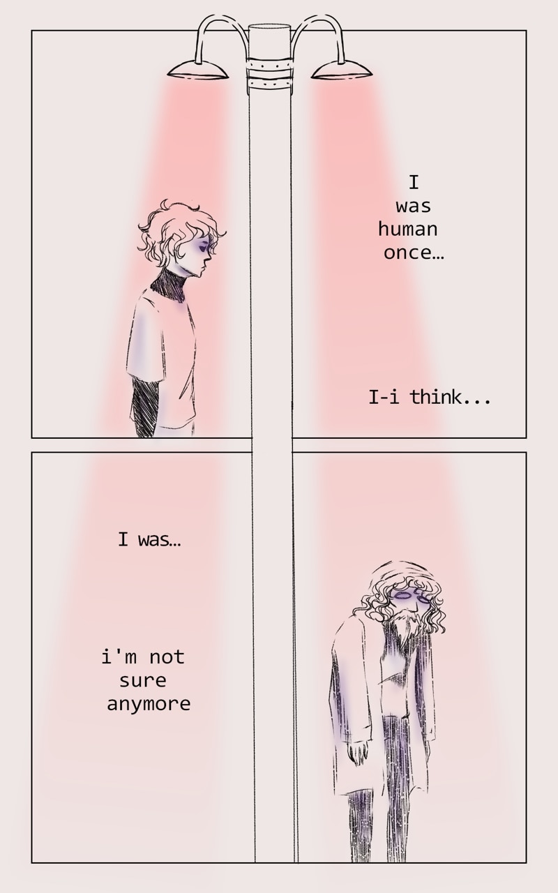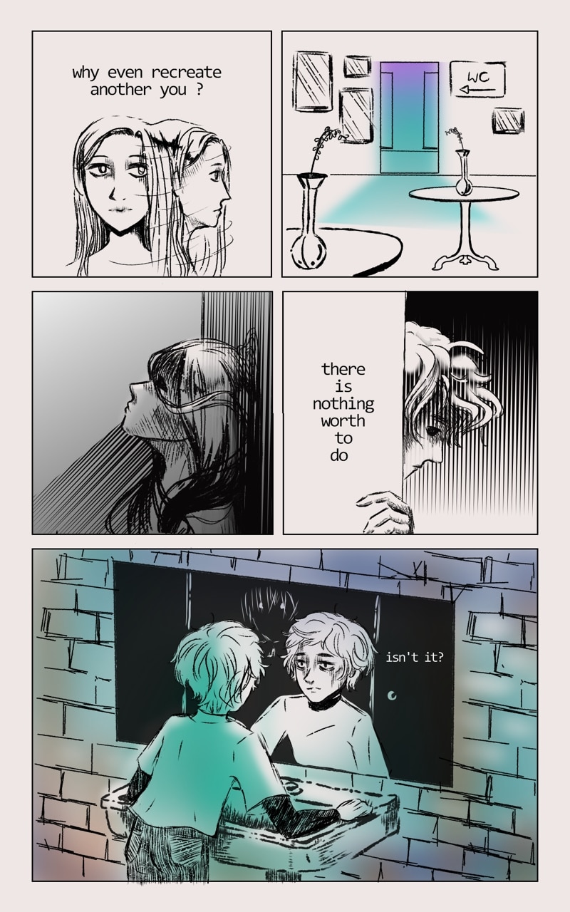 We follow the character, named Eman... is strange being, such gray one... but willing to look for that thing... that will made it whole. Yet the world is full of things, that Eman do not quite understand, but what doesn't kill you will make u stronger.