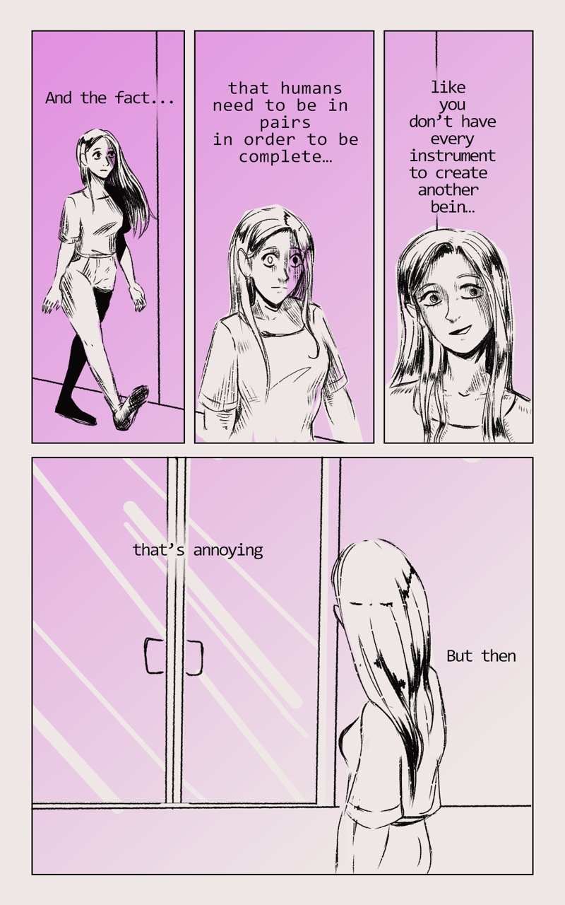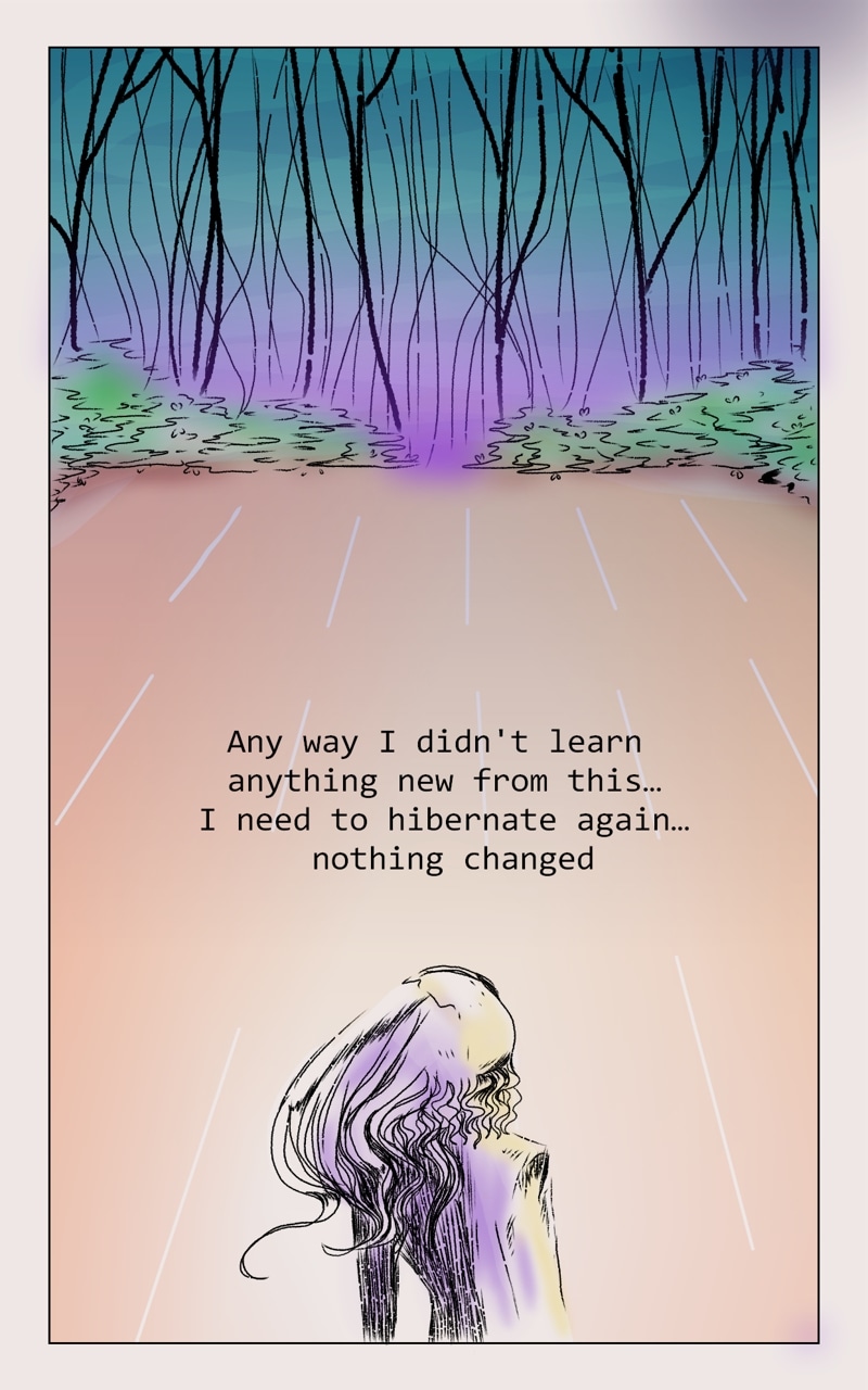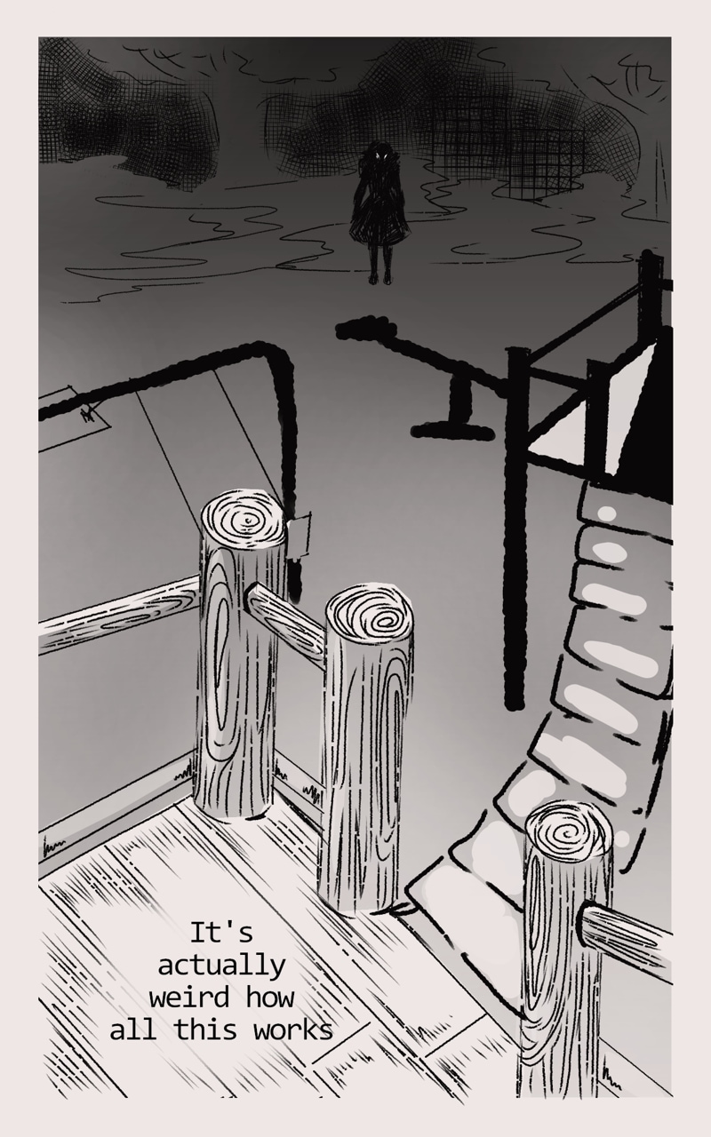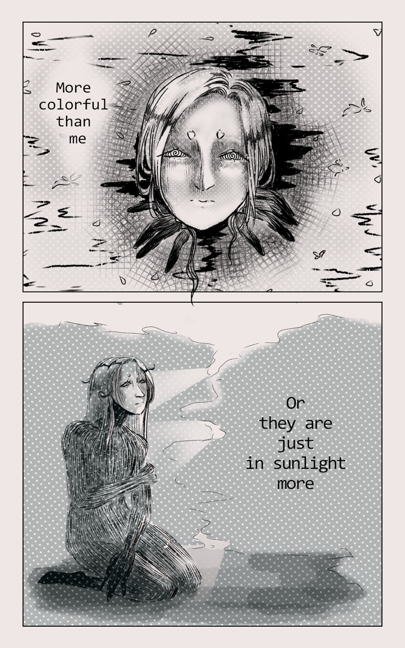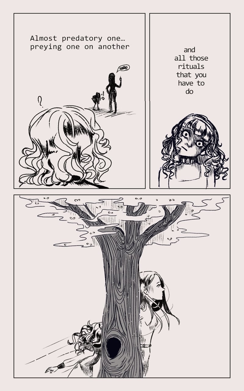 We follow the character, named Eman... is strange being, such gray one... but willing to look for that thing... that will made it whole. Yet the world is full of things, that Eman do not quite understand, but what doesn't kill you will make u stronger.