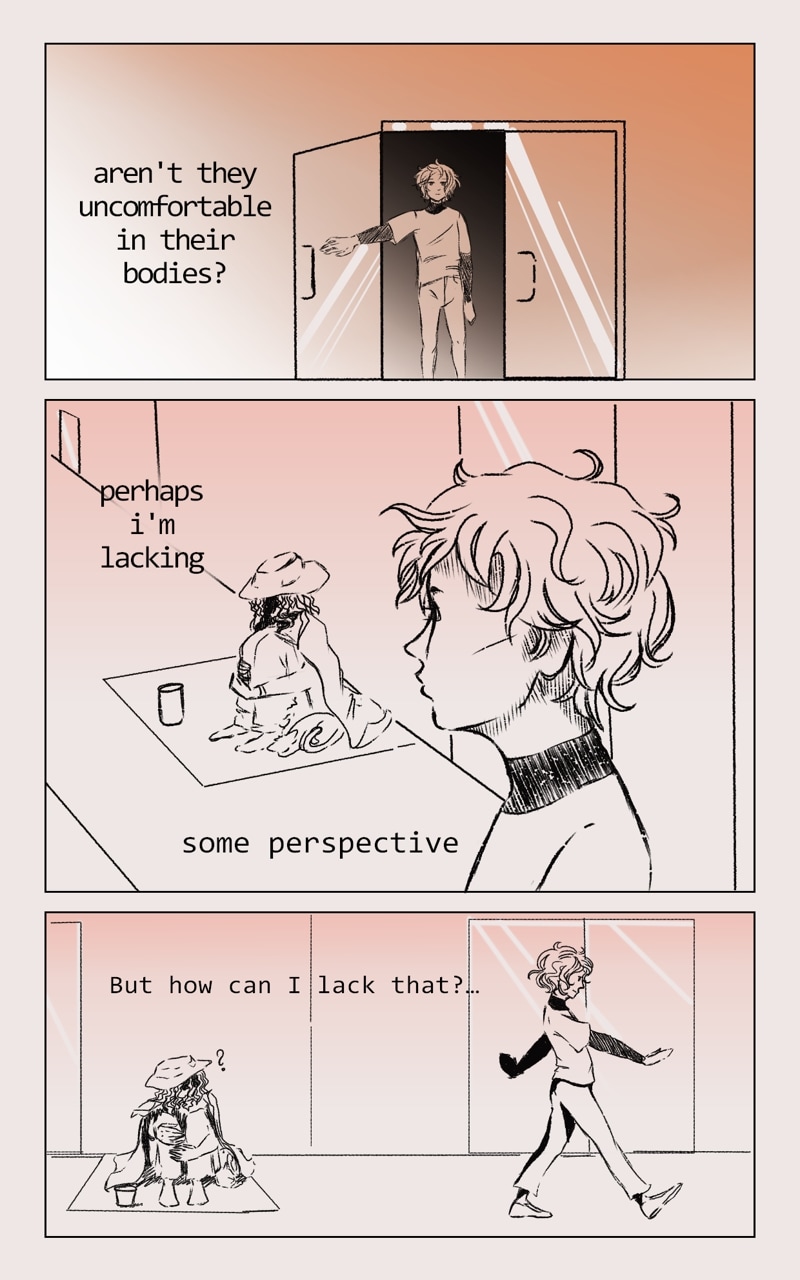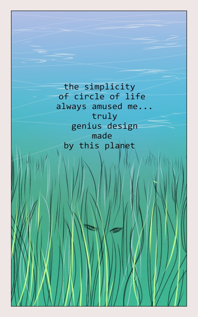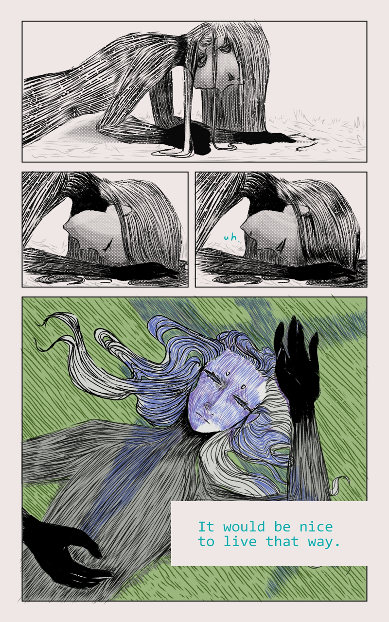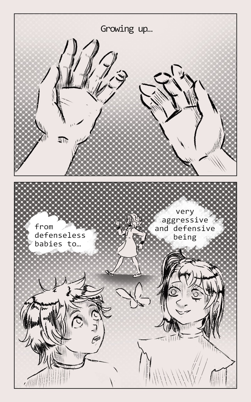 We follow the character, named Eman... is strange being, such gray one... but willing to look for that thing... that will made it whole. Yet the world is full of things, that Eman do not quite understand, but what doesn't kill you will make u stronger.