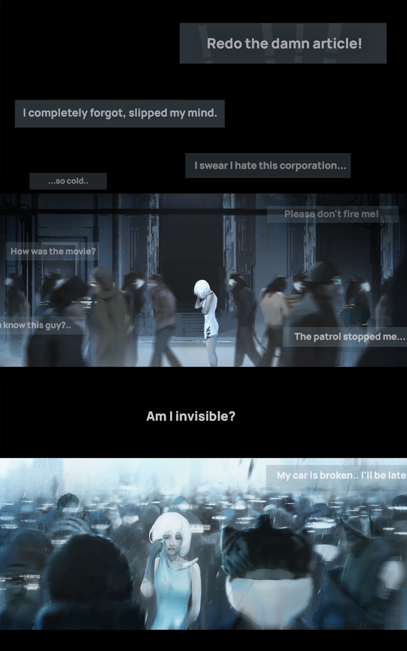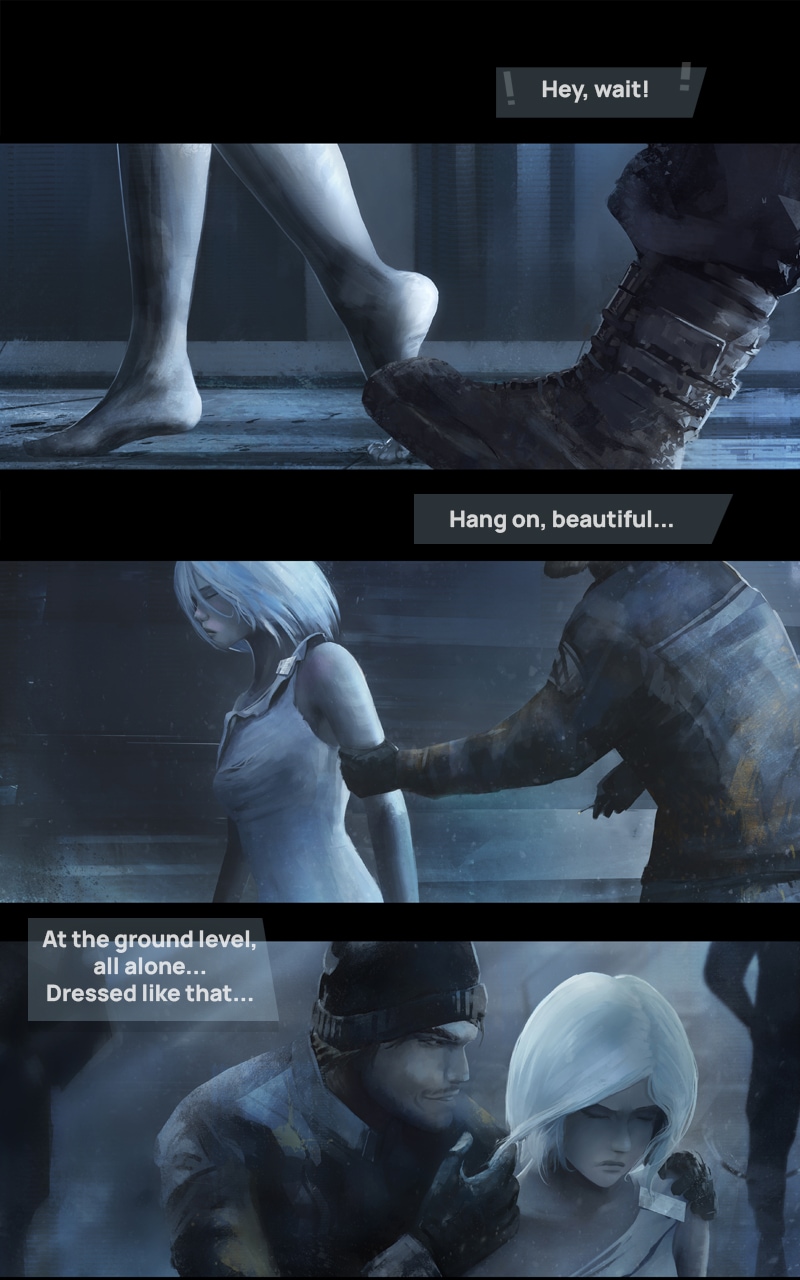 The Earth has become a forced refuge for billions of creatures from other worlds. 15 years in planetary isolation. Life has changed, and the new order dictates cruel conditions. Corporate detective Coma is tasked with finding an escaped test subject. The technology that will allow aliens to return to their homeworlds is in her possession, therefore she must be captured alive and unharmed.