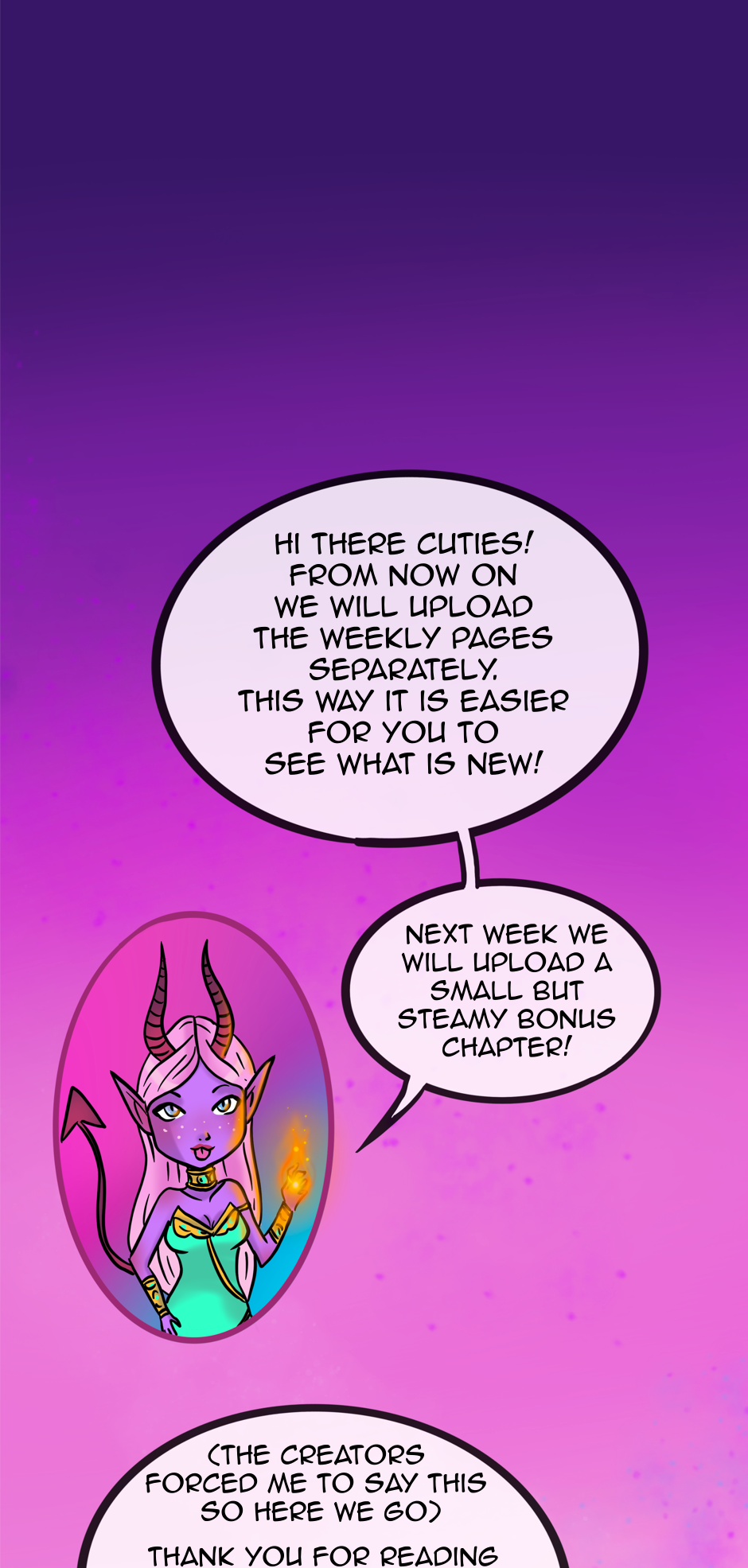After this chapter we will update weekly pages separately! Thank you for liking, subscribing and enjoying our comic! Leave a comment to let us know your thoughts!