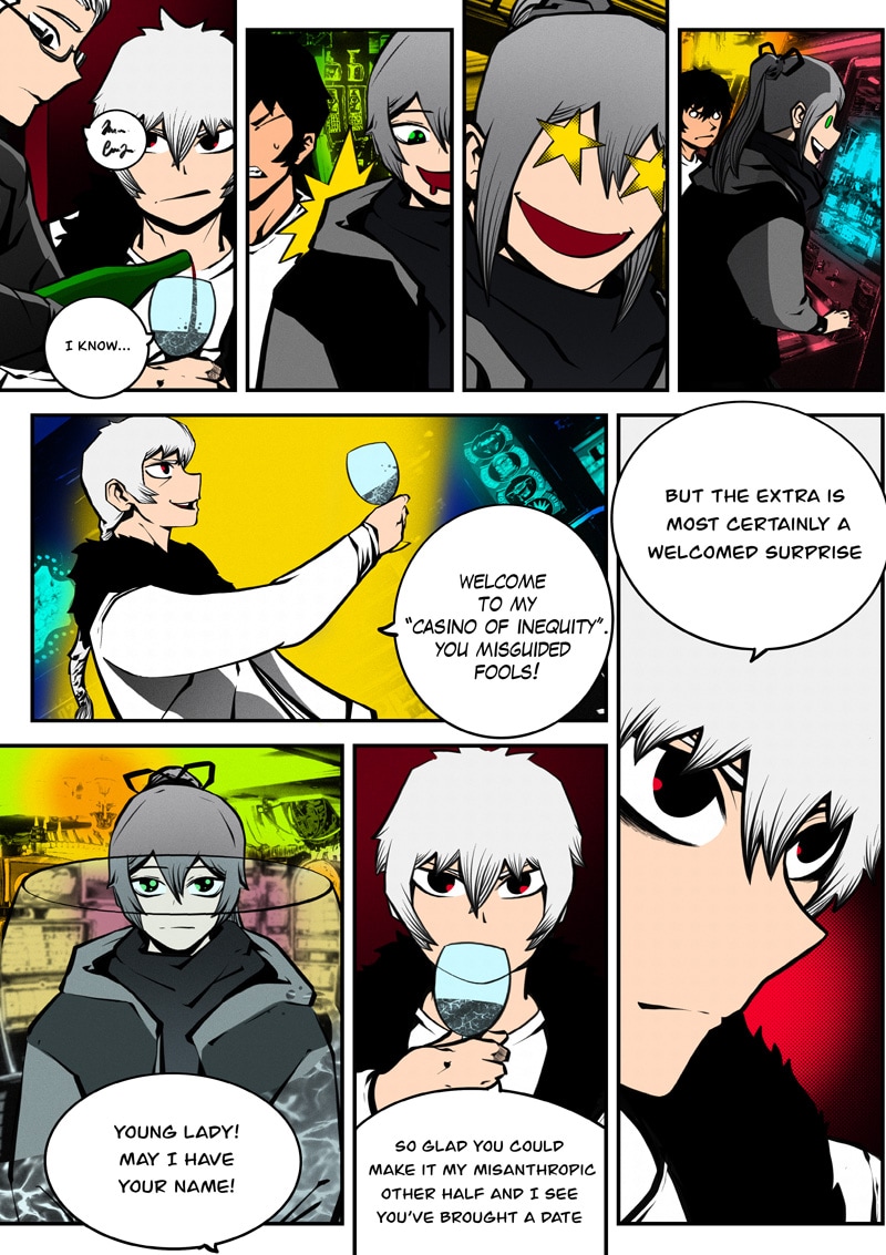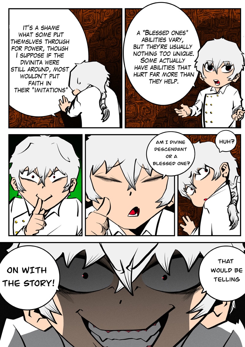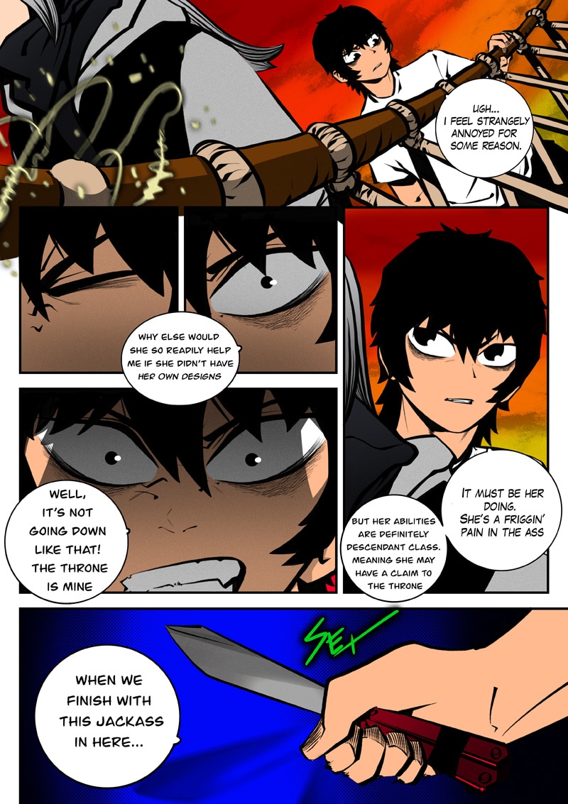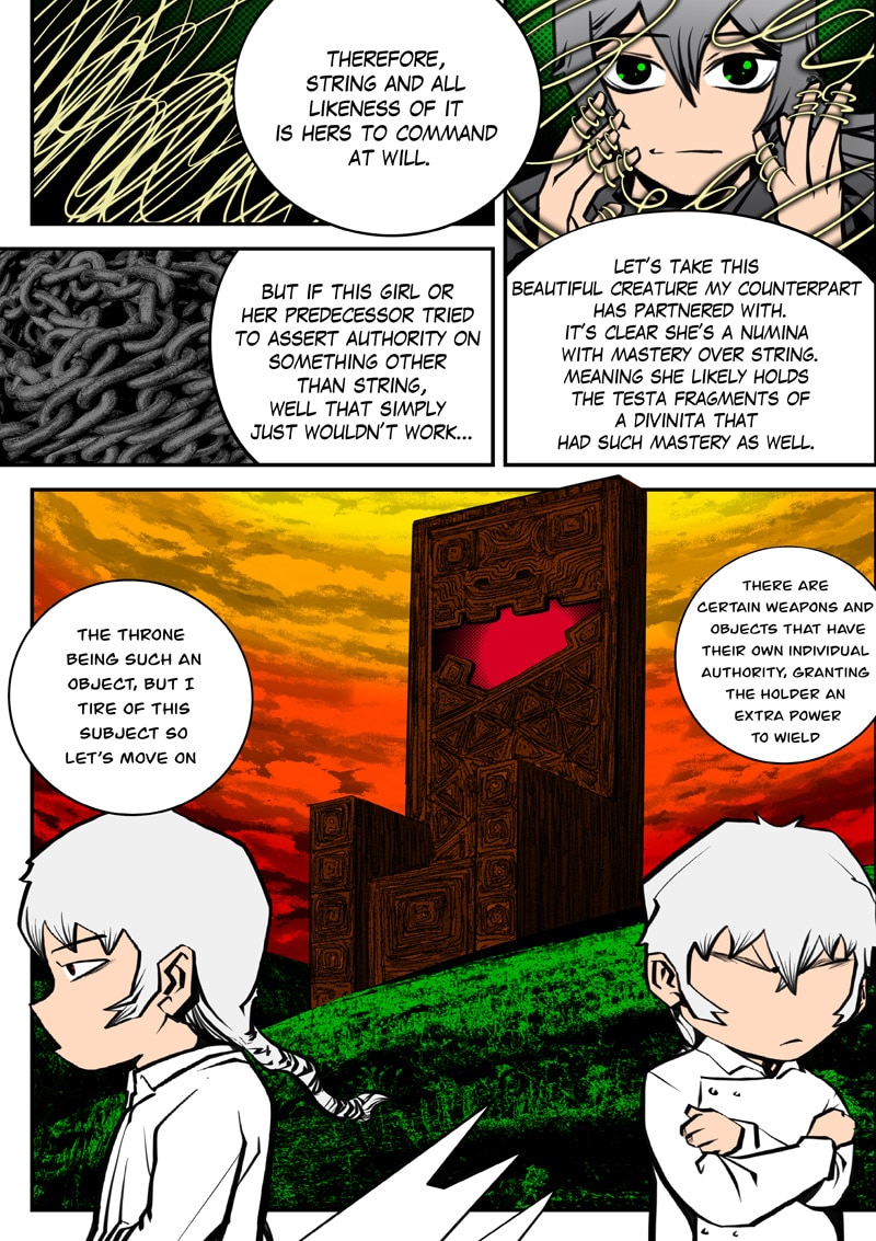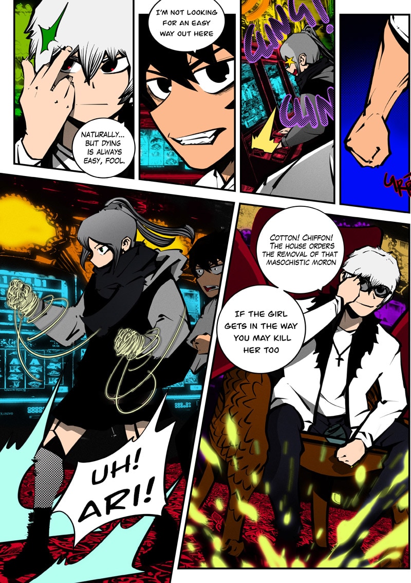 Dism returns to Paradise Cape with Ari by his side to challenge Archus for the throne. When they enter the throne's space, it's apparent that Archus has already started changing its space to fit his own designs, and it seems he has friends in tow now... (panel on Page 52 is censored as it could be misconstrued)