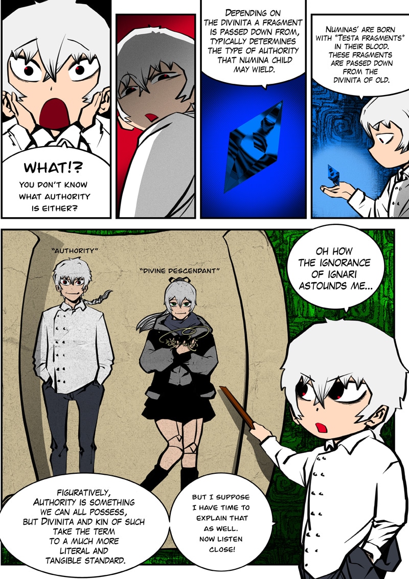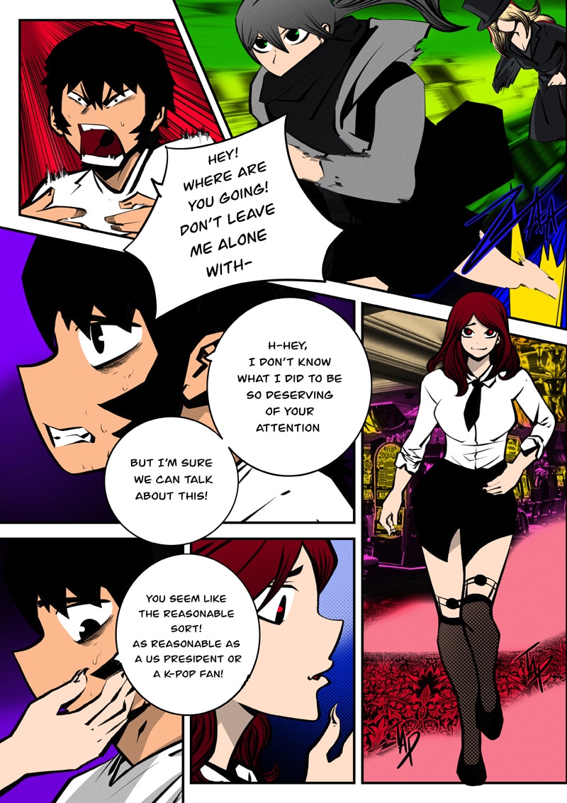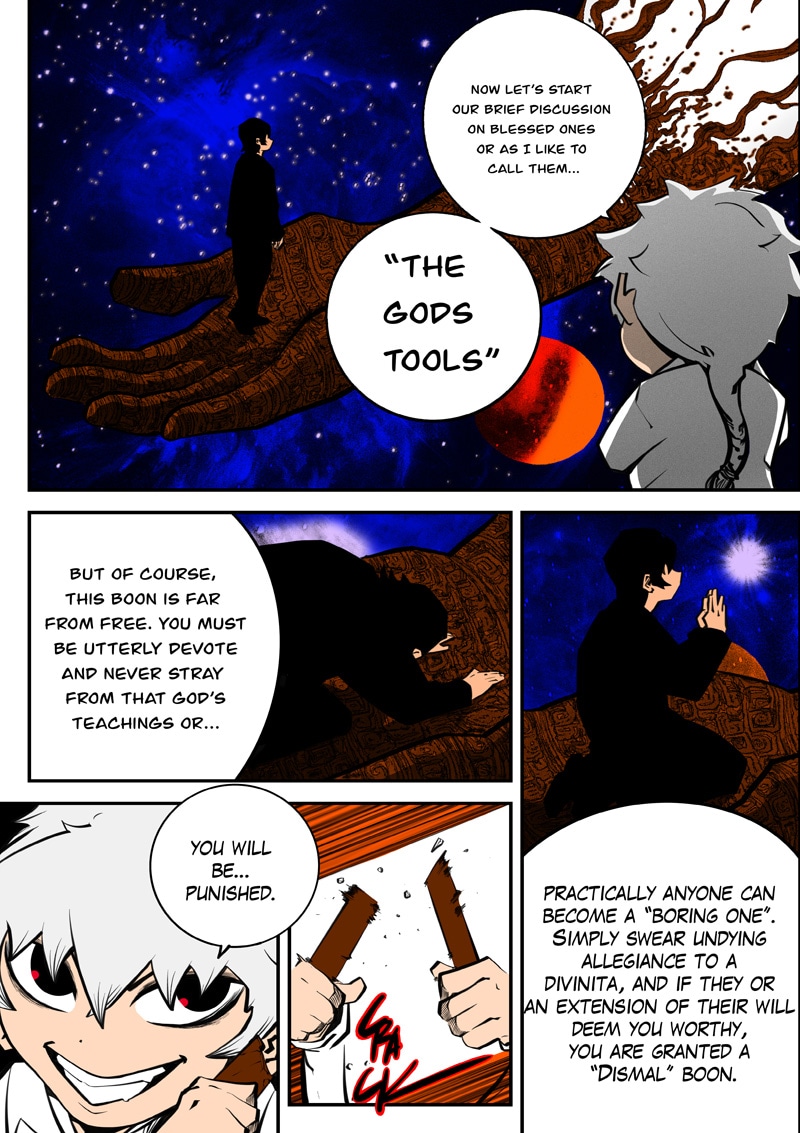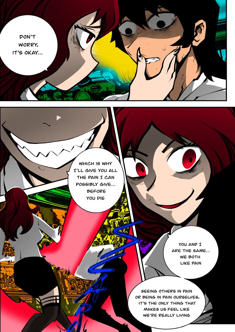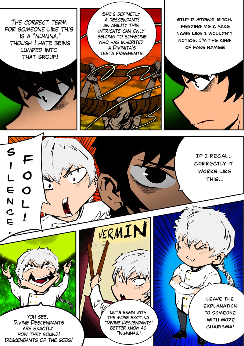 Dism returns to Paradise Cape with Ari by his side to challenge Archus for the throne. When they enter the throne's space, it's apparent that Archus has already started changing its space to fit his own designs, and it seems he has friends in tow now... (panel on Page 52 is censored as it could be misconstrued)