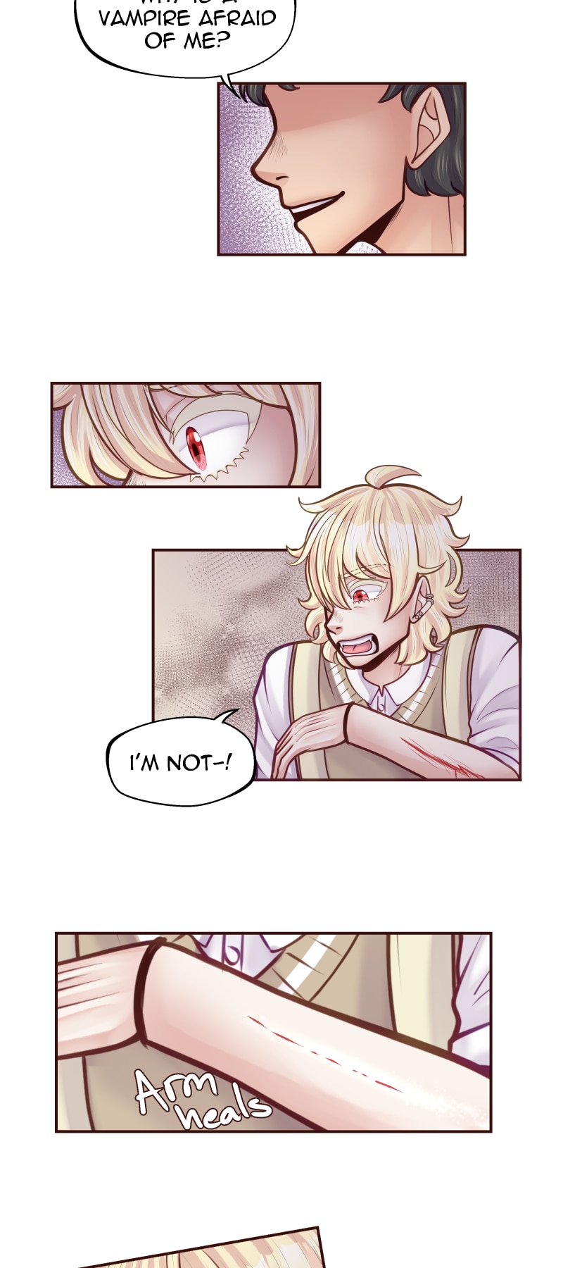 Human or vampire? 17 year old Chester questions where he stands in a divided world. Before finding his answer, a vampire makes him an offer he can't refuse. To make things more complicated, he becomes entangled with a handsome vampire hunter. Between this tender love and his new life, will Chester manage to find out just how different he is?