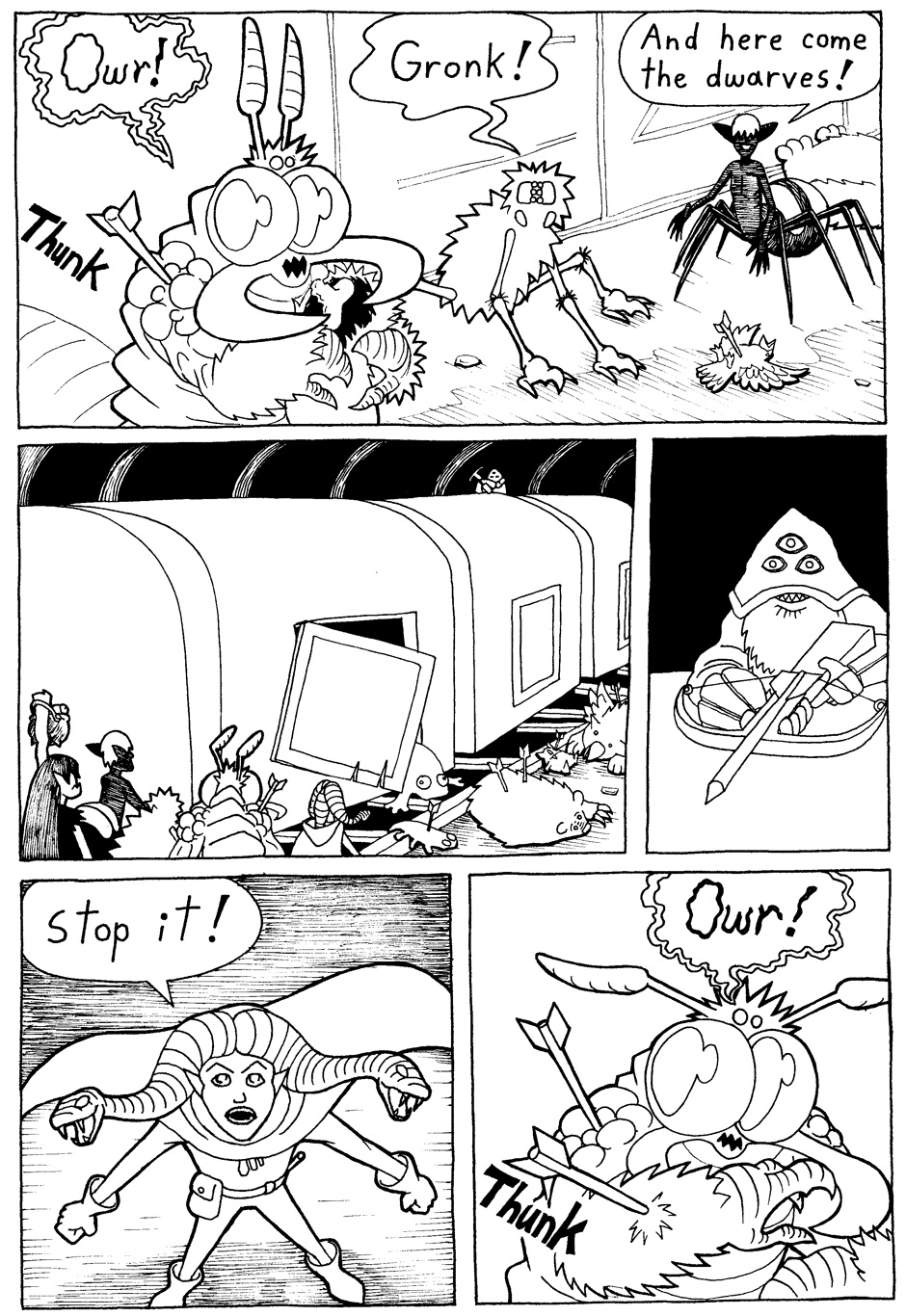 In a familiar fantasy world, evil wizards need slave creatures to guard their castles, towers and dungeons. So dwarves bring train loads of baby monsters to the wizards' market. But what happens when the slave train crashes, and all the baby monsters escape?