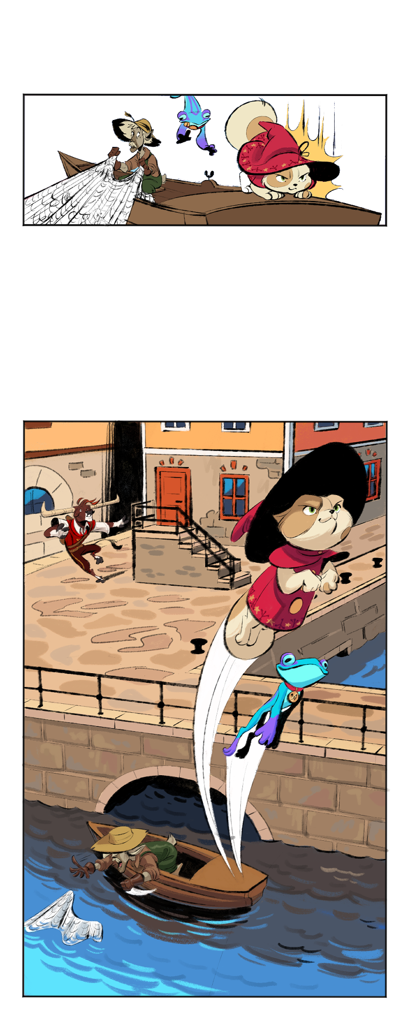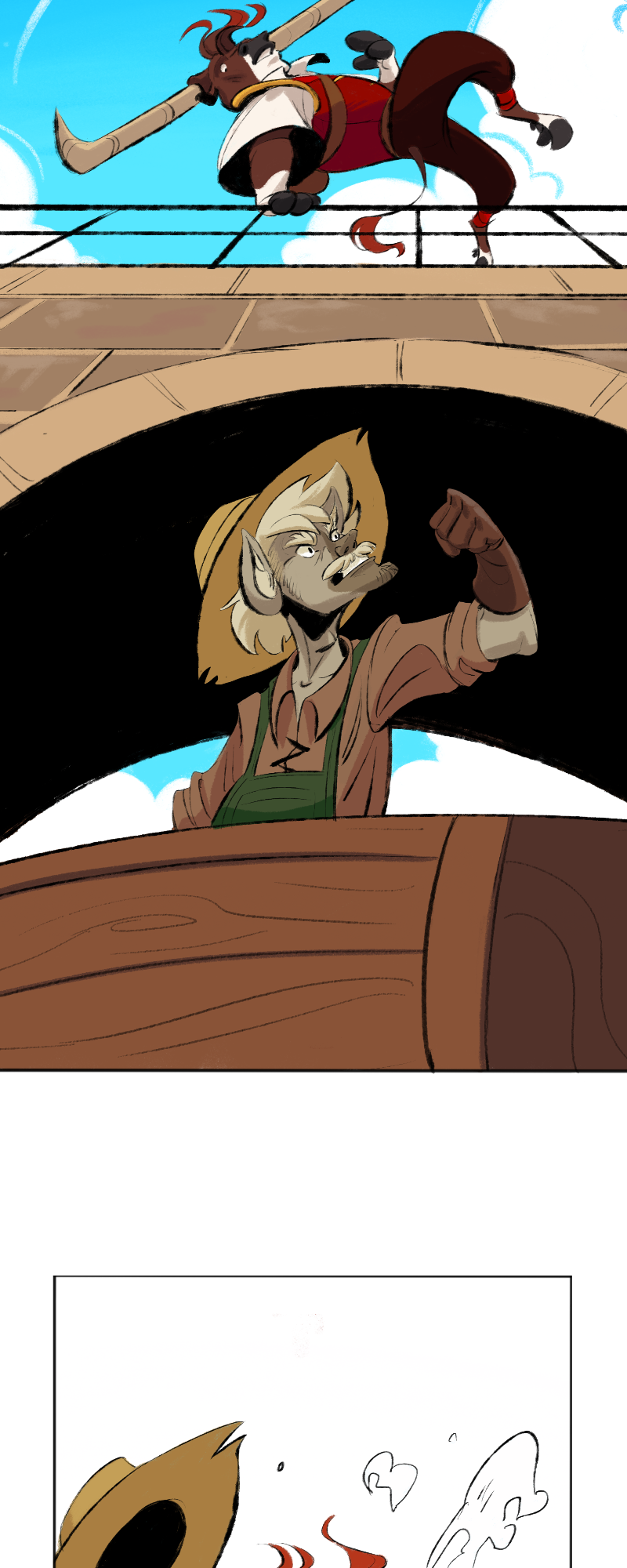 Minotaurs Can't Be Witches is a free to read webcomic about a friendly minotaur, a grumpy witch and her pet frog becoming unlikely friends when they have to work together to reverse a disasterous spell. It's adventurous, light-hearted and hopefully also a bit funny at times.
