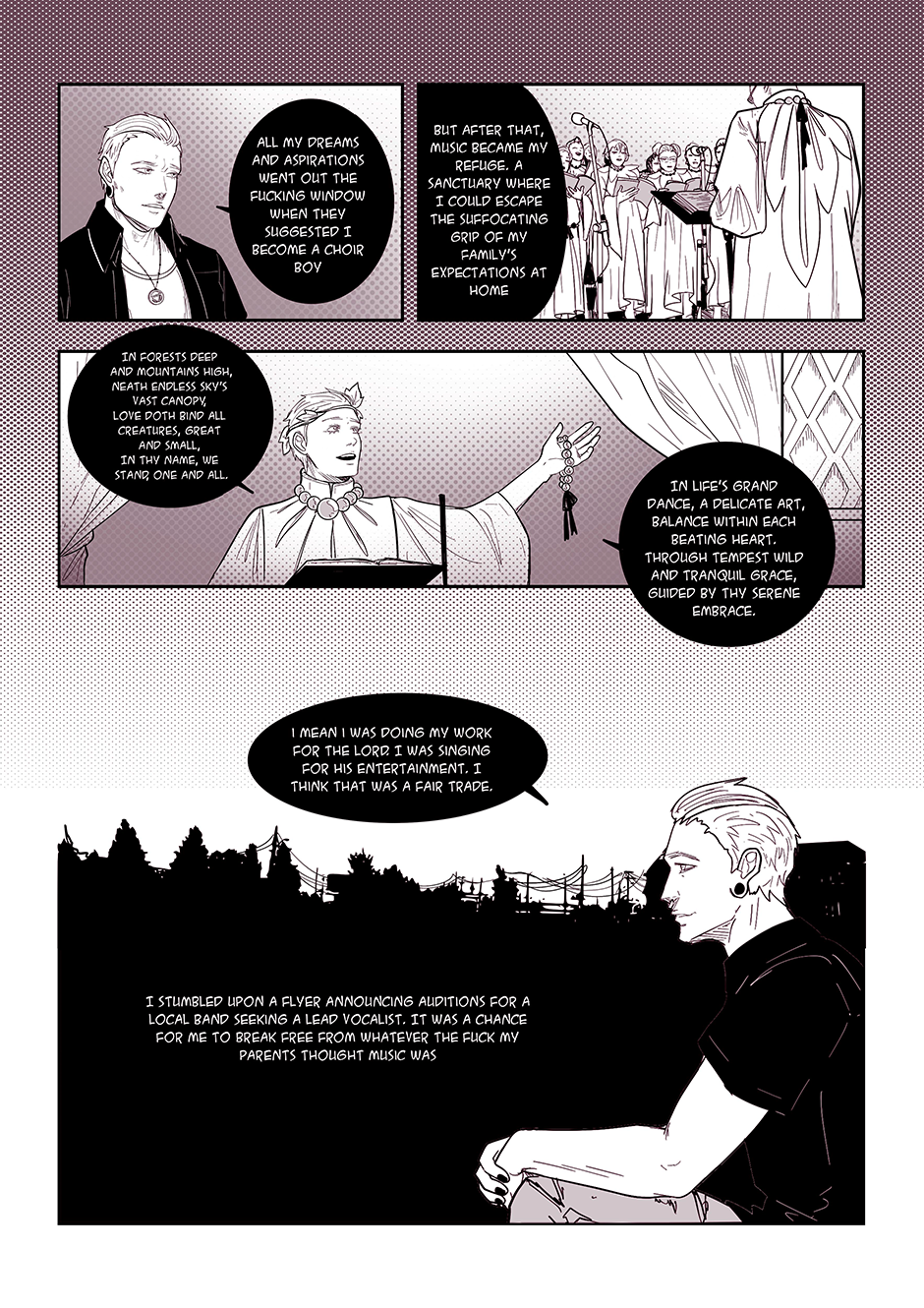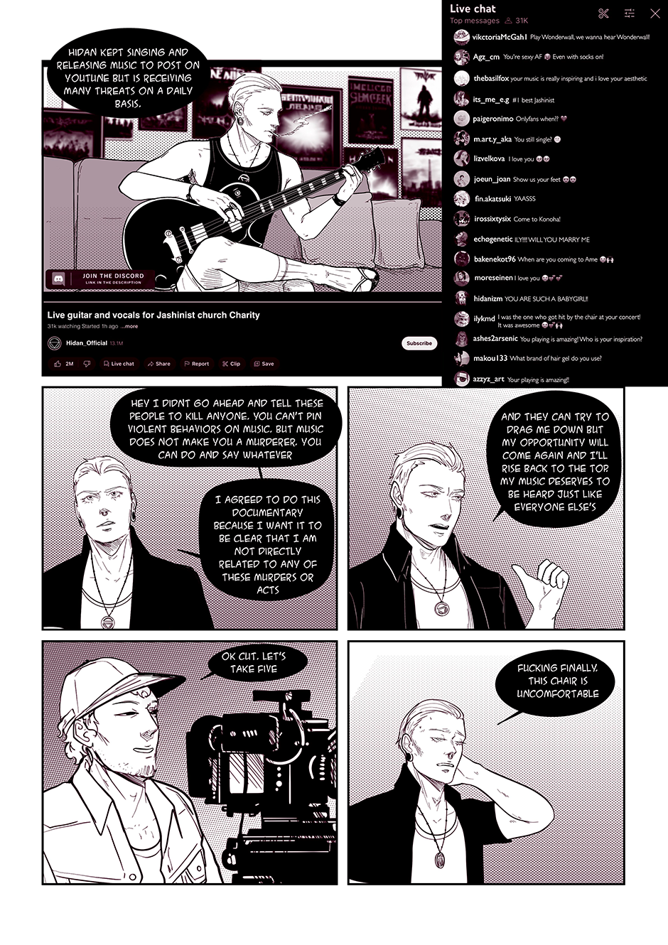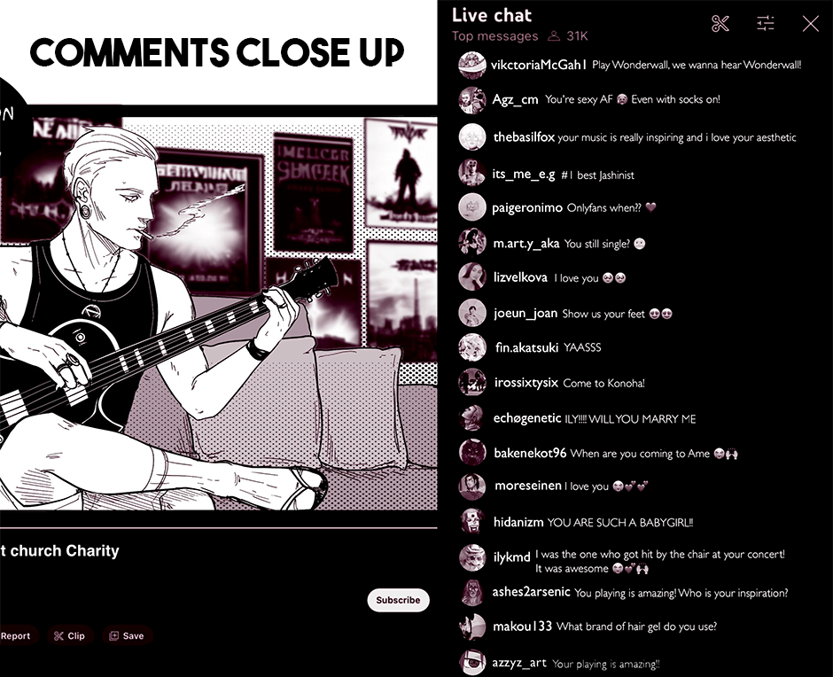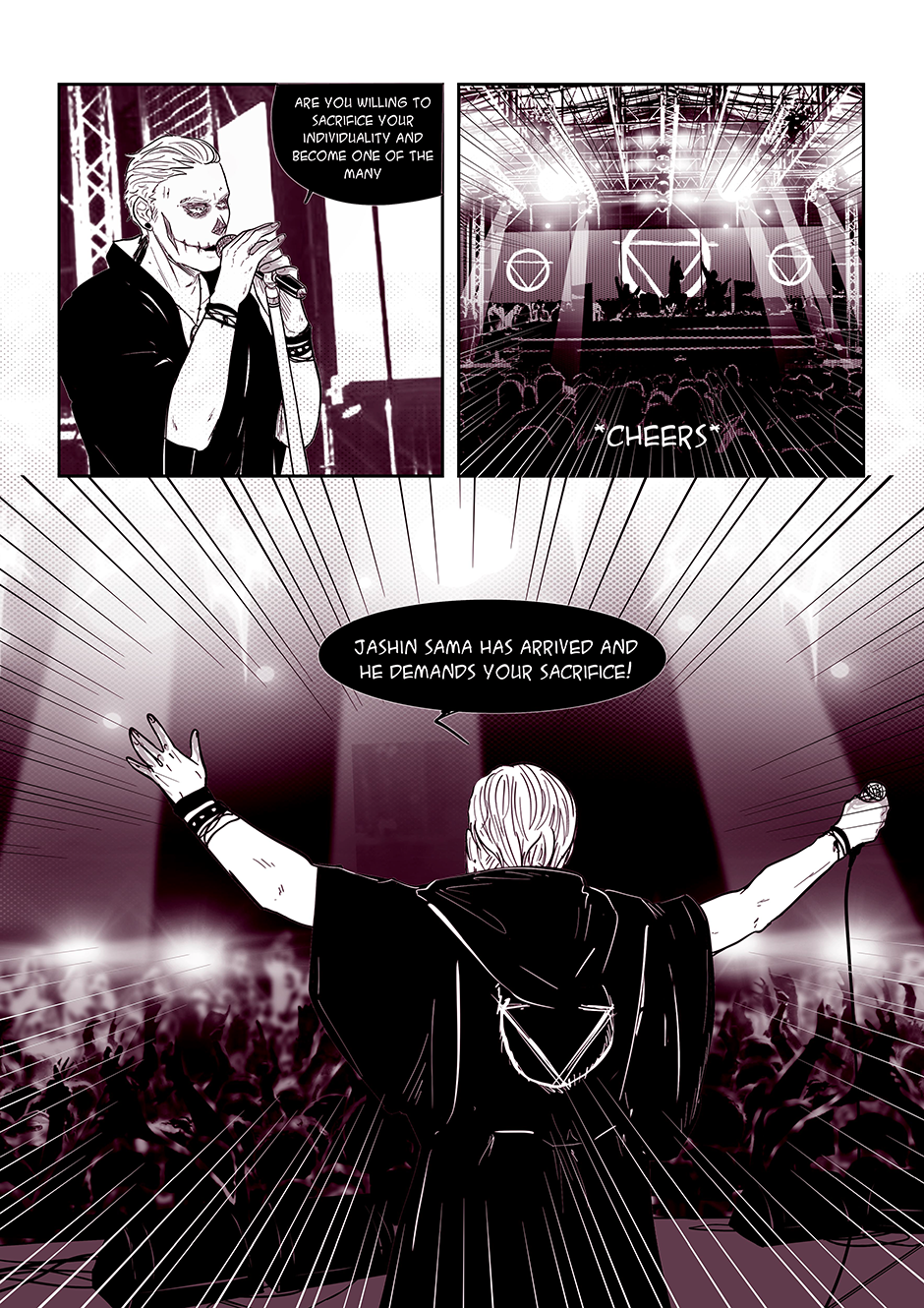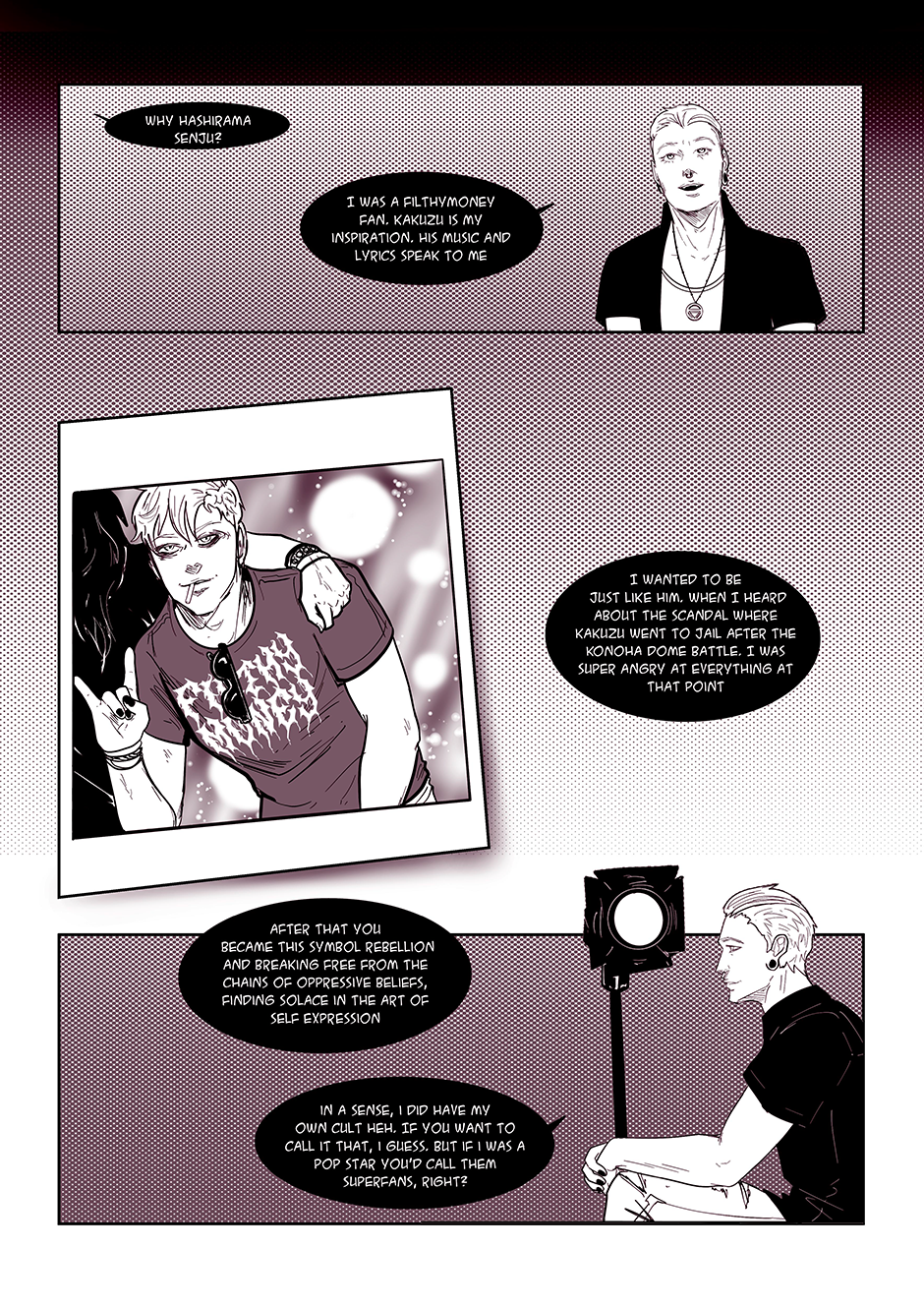 "Songs of the Damned" is a comic book that takes you on a wild ride through the chaotic world of a band called the 'Akatsuki' (based on the anime characters from Naruto). Behind the scenes of their electrifying performances and catchy tunes lies a labyrinth of personal struggles, haunted by past traumas, battles with addiction, and the haunting specter of abuse. But hold on tight, because this isn't your typical tale of woe. With a twisted sense of humor, the story unfolds as a dark comedy, weaving laughter and despair together in a devilishly entertaining symphony.