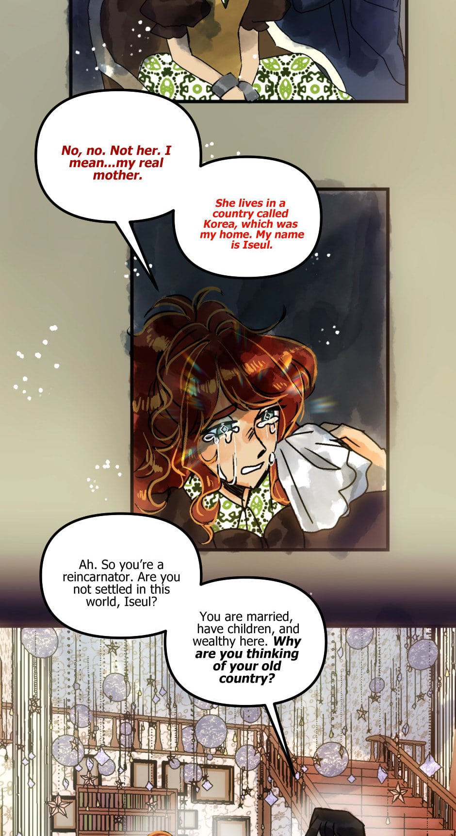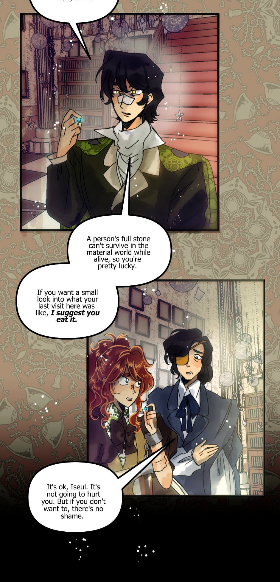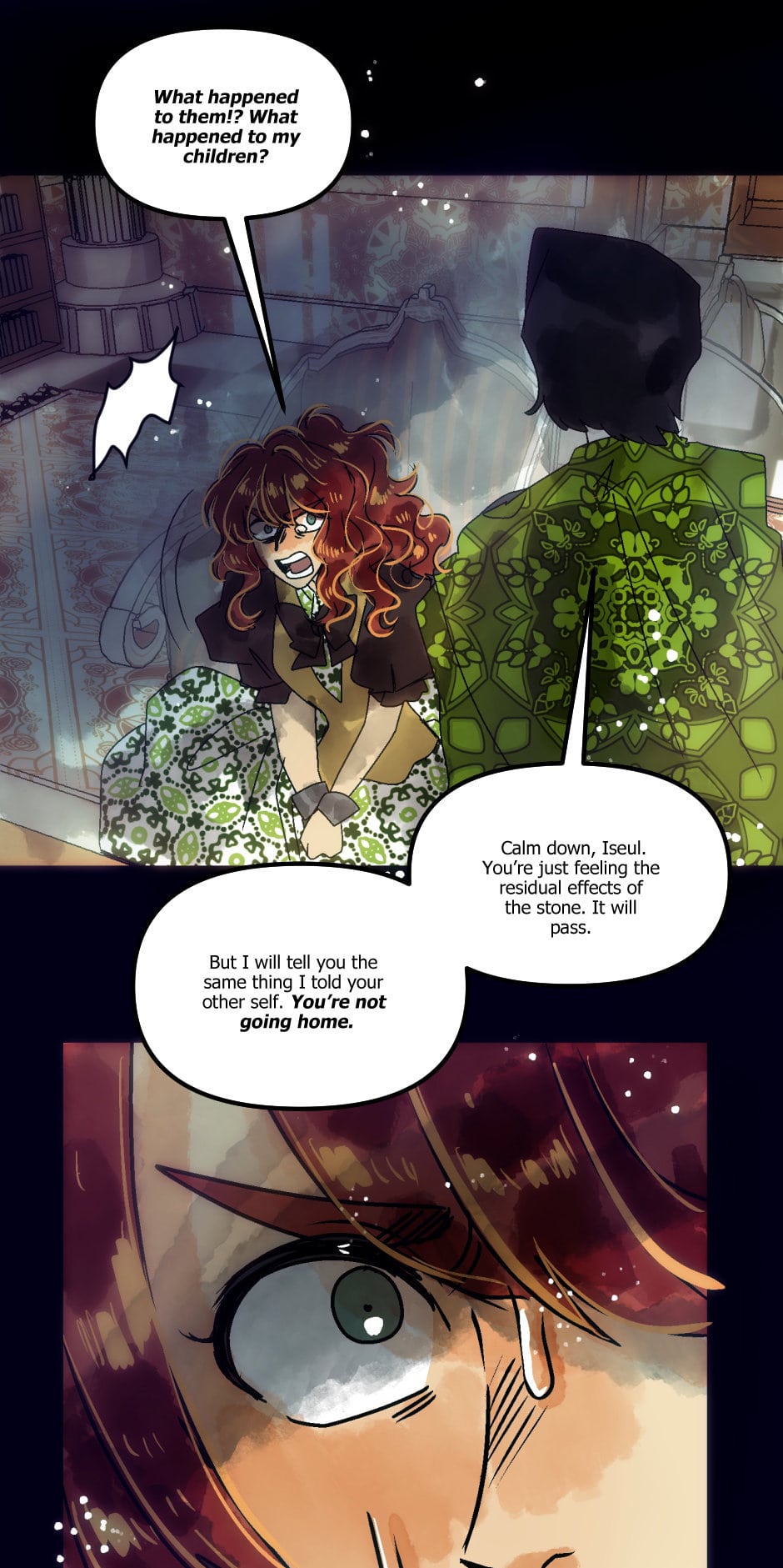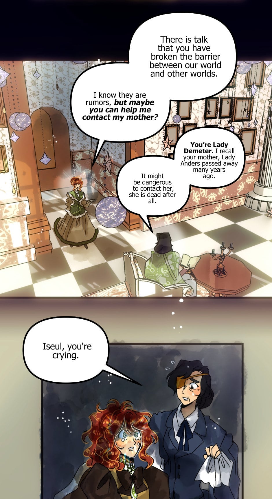 I definitely distrust his assertion that Iseul can’t return home. I wonder if the key to getting home will require finding and connecting with Anette, sharing memories and character development maybe. Theoretically, Anette should be a connected, other self of Iseul, basing off how it is for Bridgette and Demeter. Alternative selves?