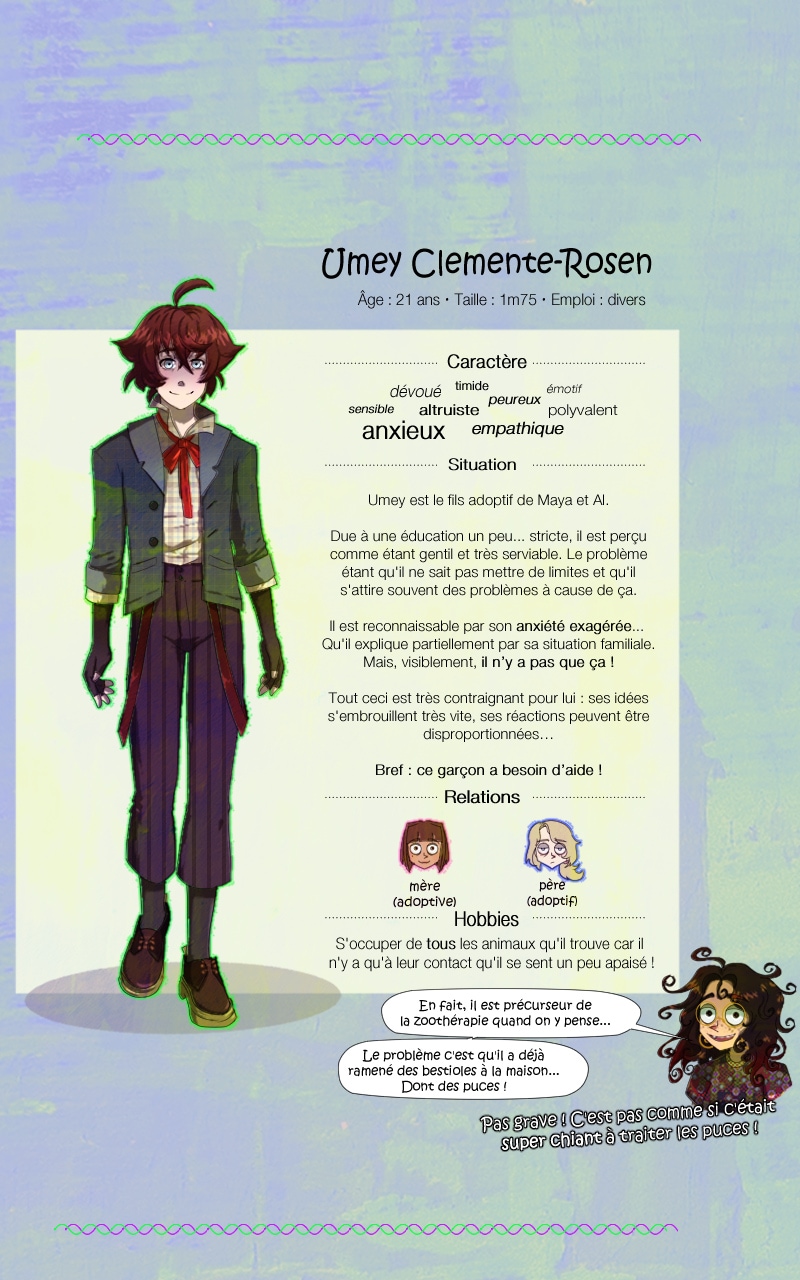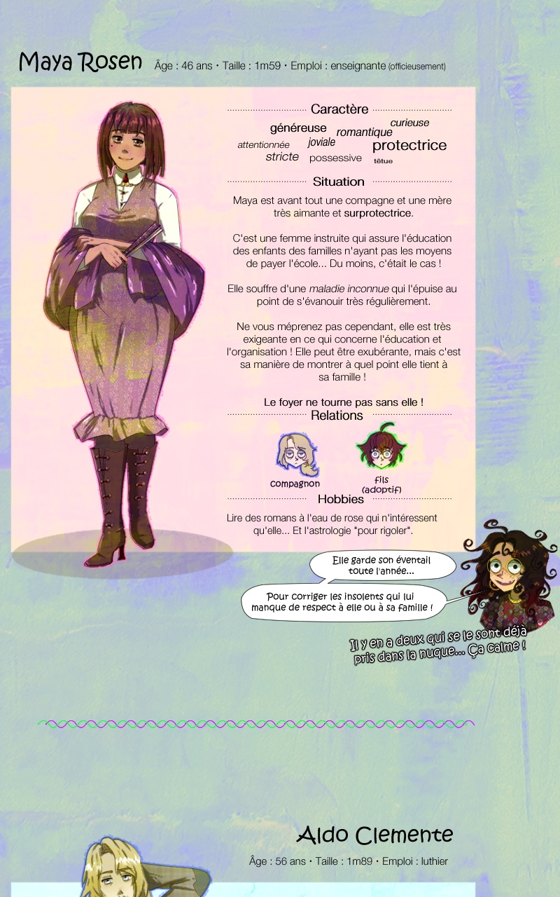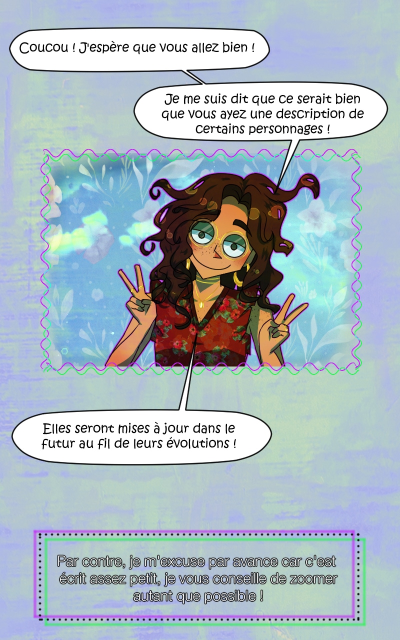 J'espère que cela vous plait d'en savoir un peu plus sur certains personnages. Les fiches seront mises à jour au fil de leurs évolutions et bien sûr, d'autre viendront à être présenté ! :)