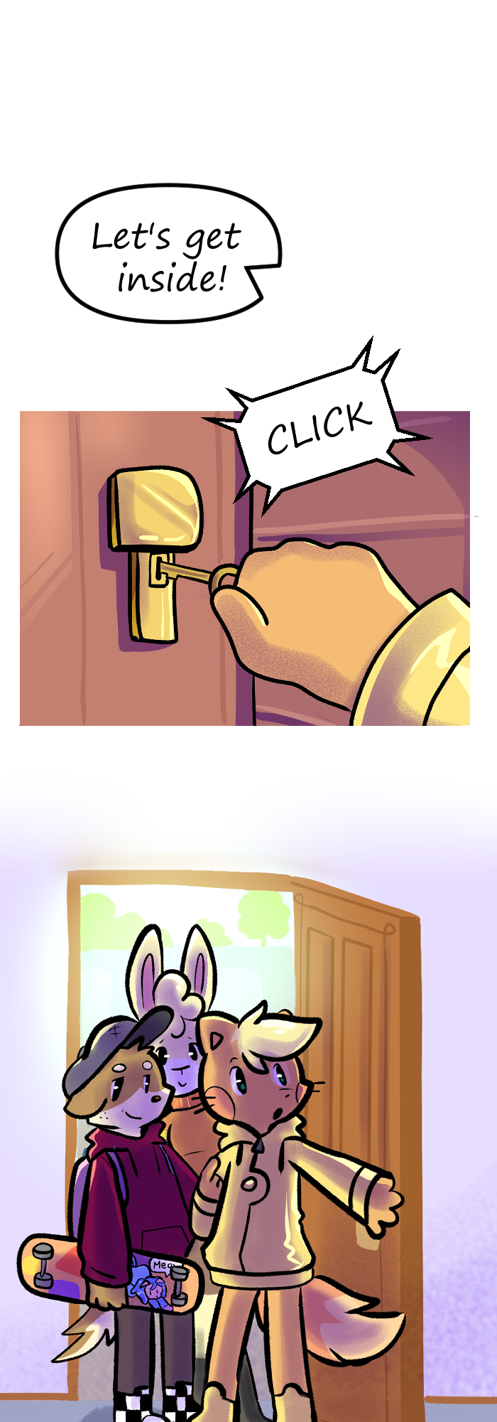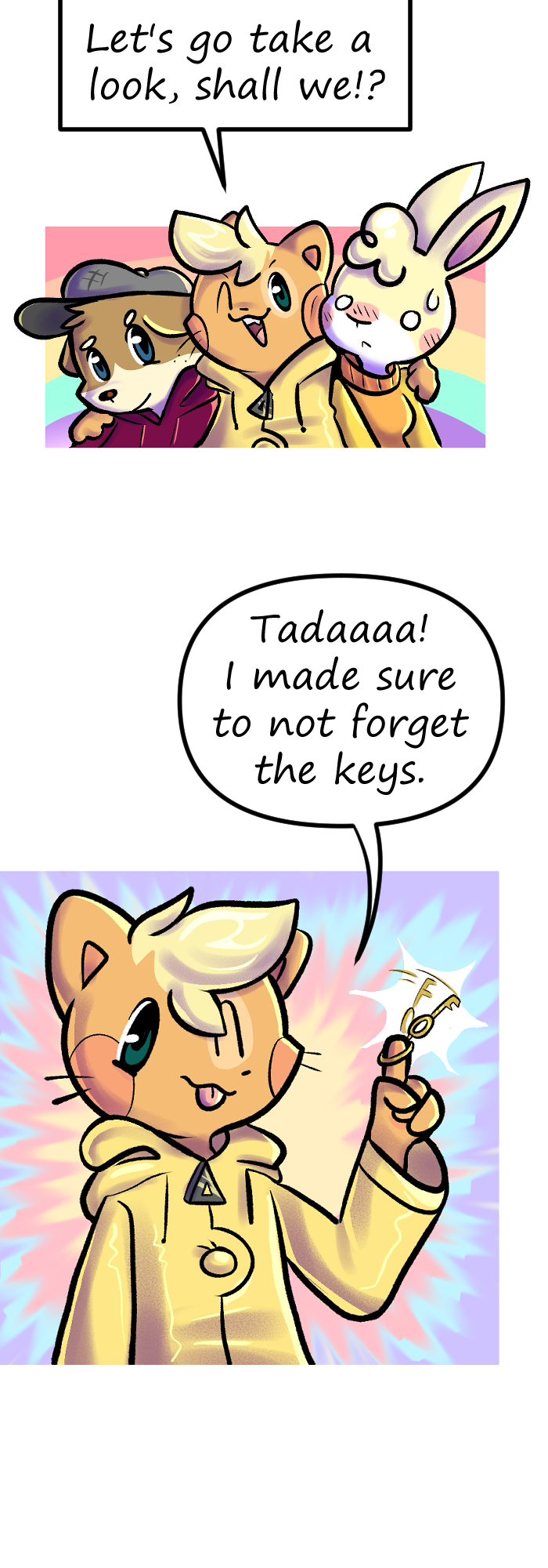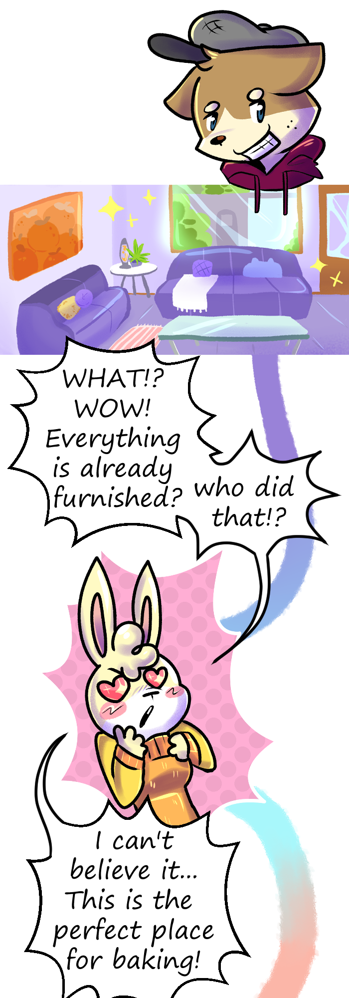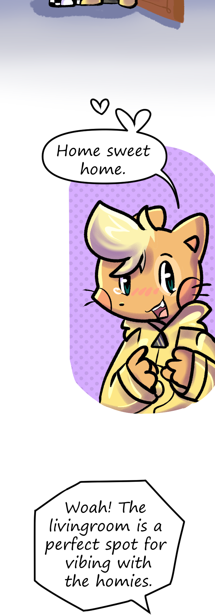 Thank you for reading episode number 2 of Floofkins! Next episode Floofkins, Wibble and Cotton will battle in a game of rock, paper and scissors to find out who will get a big room and who will get the small room. Who will lose? Find out in ep number 3!