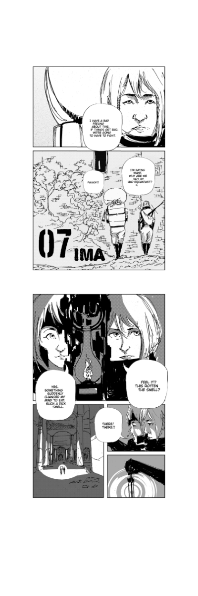 "RIDLF: IMA" (short for "Real-time Immersive Digital Life Framework: Incomplete Meta-Adventure") is a science fiction comic in the fantasy genre that tells about the journey of two companions: a Knight named Anais and a Magician without a name. The story unfolds on an abandoned server inside a metaverse filled with elements of a fantasy world. Knight Anais and the Magician without a Name embark on a dangerous journey through this abandoned server, exploring various areas and meeting various creatures and mysterious places. Each area they enter is a unique fantasy kingdom with its own rules and features. During their journey, the Knight and the Magician face dangers, solve puzzles and fight enemies to uncover the secrets of this metaverse server. Together they discover that this server contains a lot of unused and lost stories, and their task is to find a way to trace each thread of the story to the end.