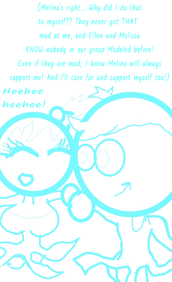 I wanna apologize for 2 things: this was suppose to wrap up neatly on this chapter.. But it doesn't happen this way (which end up being a good thing, a fun thing, but it ABSOLUTELY destroyed the "short chapters" thing I was going for) and Melina is always suppose to have long and always in view eyelashes.. But I screwed up..