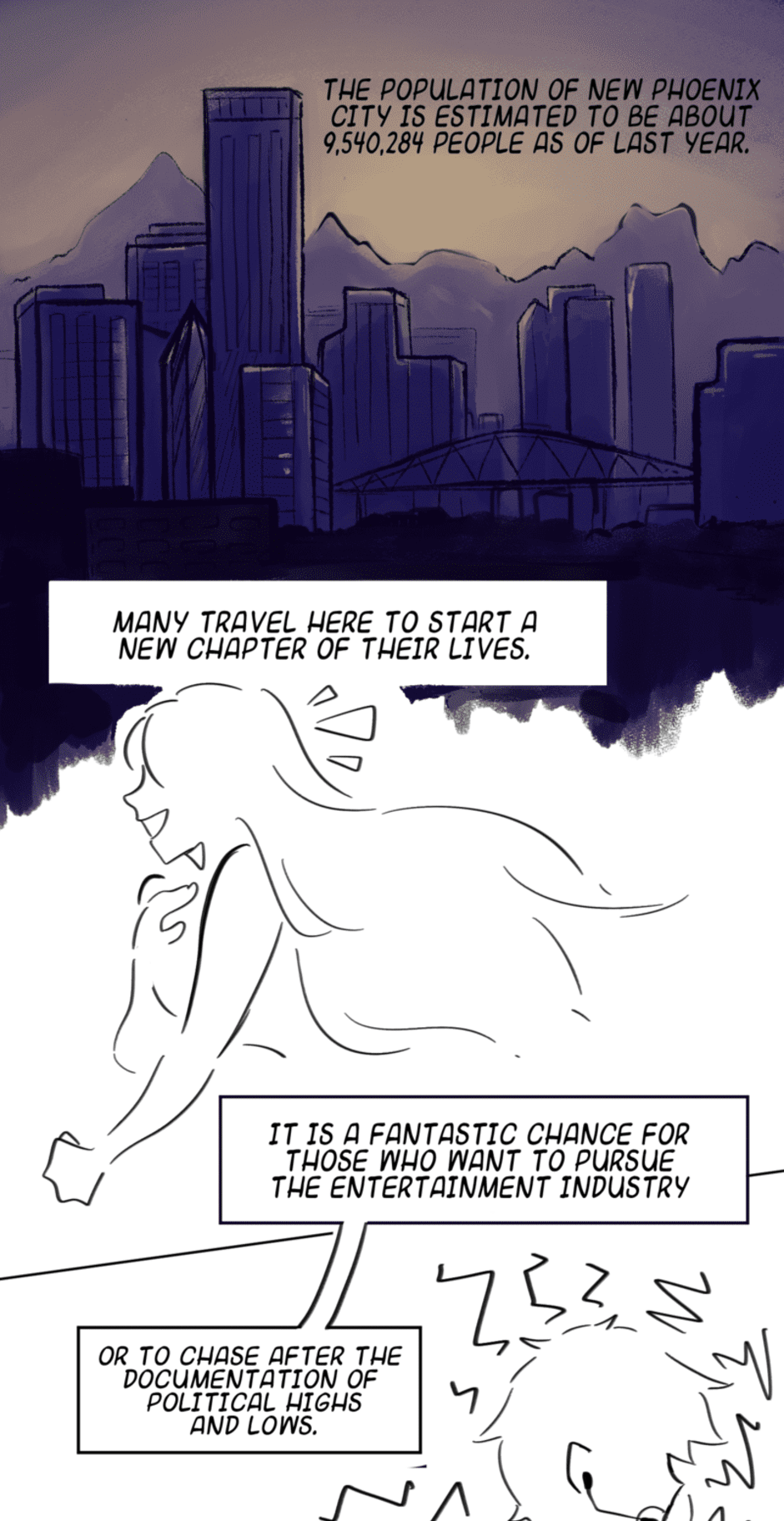 Chi, raised by their human father and kept in isolation, finally has a chance to explore while their father is away. After finding Bea, a fellow loner, in a library hidden within the crevices of the bustling city, they finally get the chance to discover more about New Phoenix City and the dangers it has to offer.