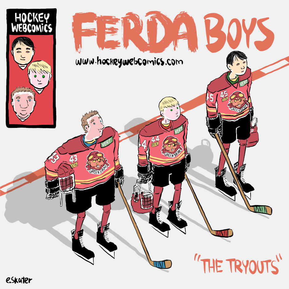 Just the cover art for "The Tryouts" arc. Here's a reboot of my webcomic series "Ferda Boys." Ferda Boys is a slice-of-life and sports webcomic about a group of junior hockey players. Also, it has its own score: THEME FROM FERDA BOYS by David Tulloch here https://soundcloud.com/hockeywebcomics/theme-from-ferda-boys And last but not least, please, if you like my work, you can Buy me a Coffee: https://www.buymeacoffee.com/hockeywebcomics :)