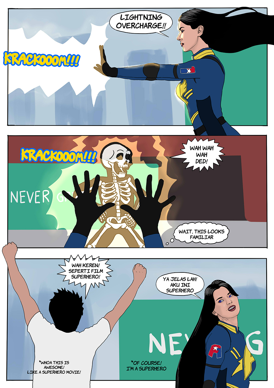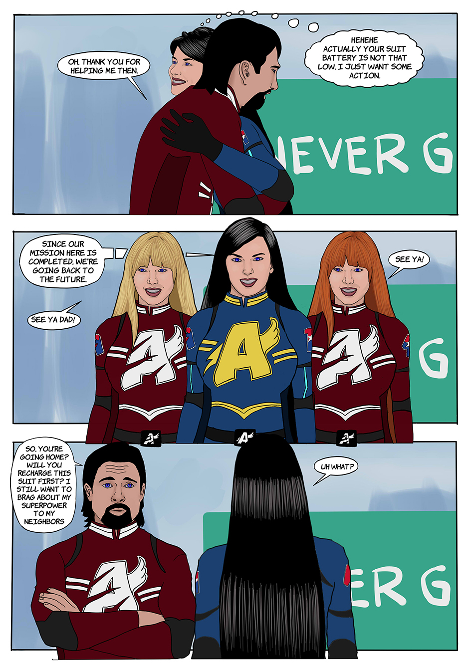 Shirley's Super Powers are back, she's back in action. Quick as lightning, Shirley kick Bad Bull ass and killed him with her lightning powers. After the mission was completed, Shirley, Julie and Jessie are back to the future.
