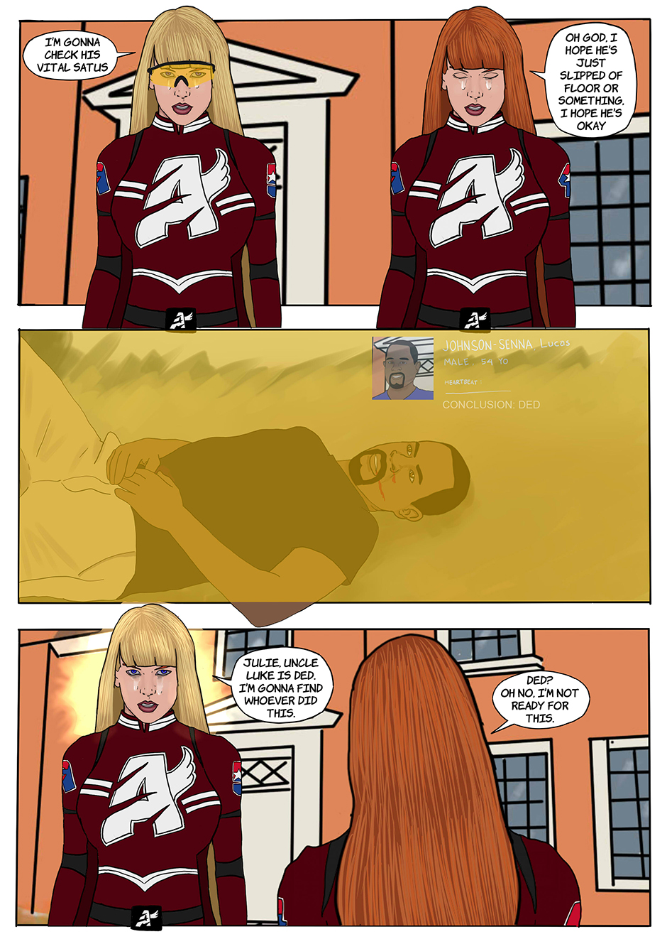 Dead? Holy crap! Plus, tempted to cosplay Julie sometime soon. "Of course, I'm a superhero"? LOL! Your one-liners are terrific.