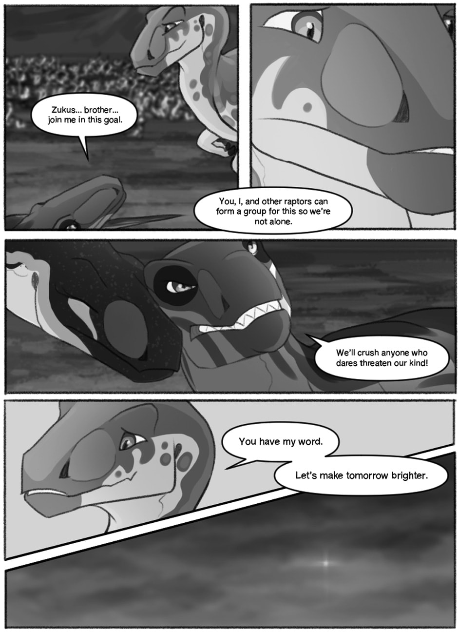 On the Eo Isle, a land with many different factions of saurians, we follow the story of Zukus, a utahraptor from the Zuhai clan in the nation of Kikuyat. He experiences a major tragedy during his childhood, inspiring his friend to form a special fighting group within their clan for the purpose of protecting those around them. They will have many enemies coming to their borders; will they succeed, or will they fall?