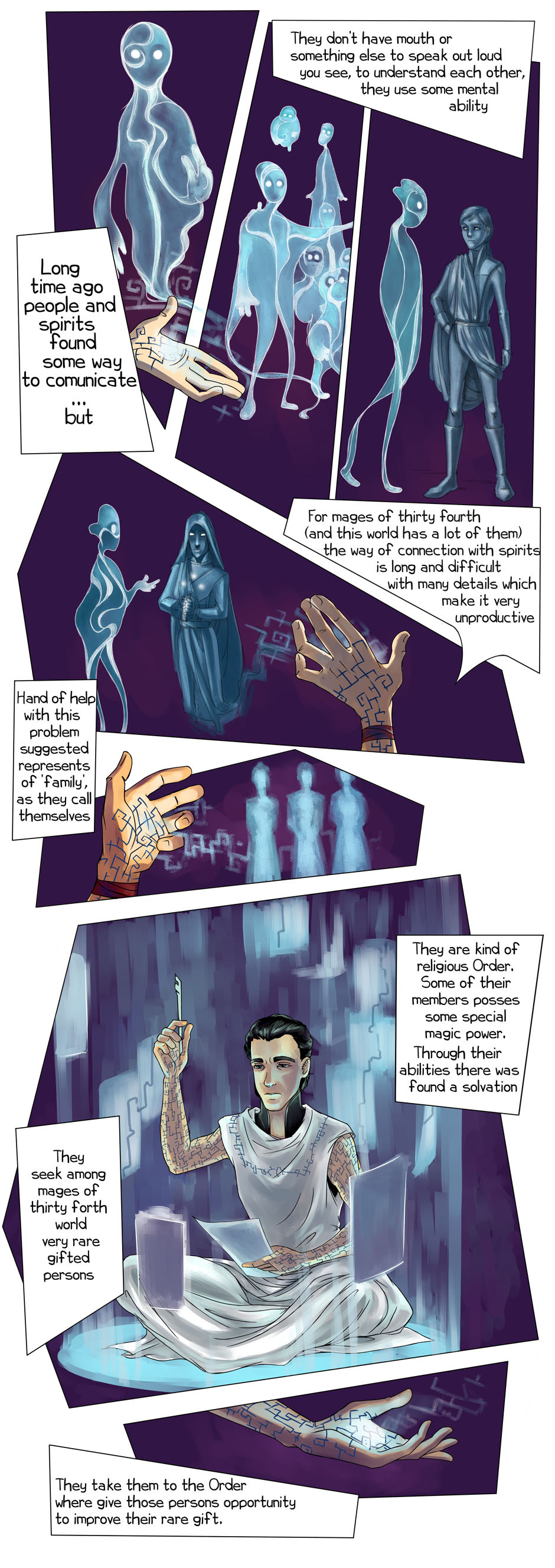 Well, the spirits have hands (As you've shown), couldn't they just, you know, use sign language? Also your art is cool and I'm still gonna read this... But yeah sign language is a thing.