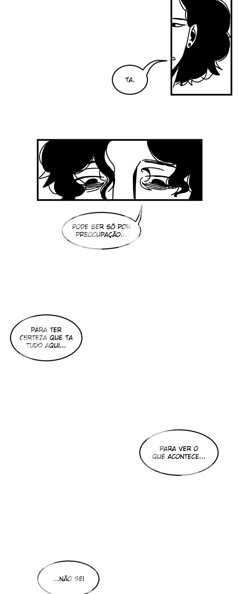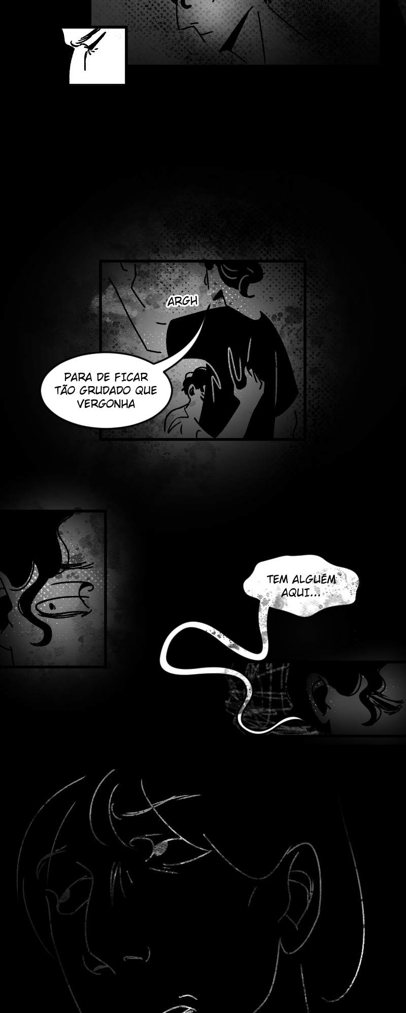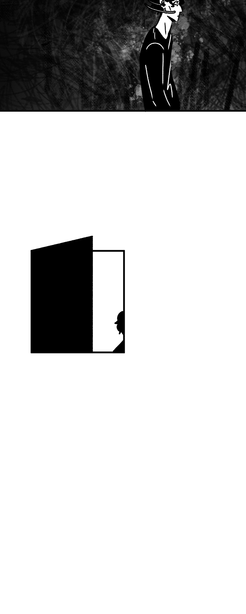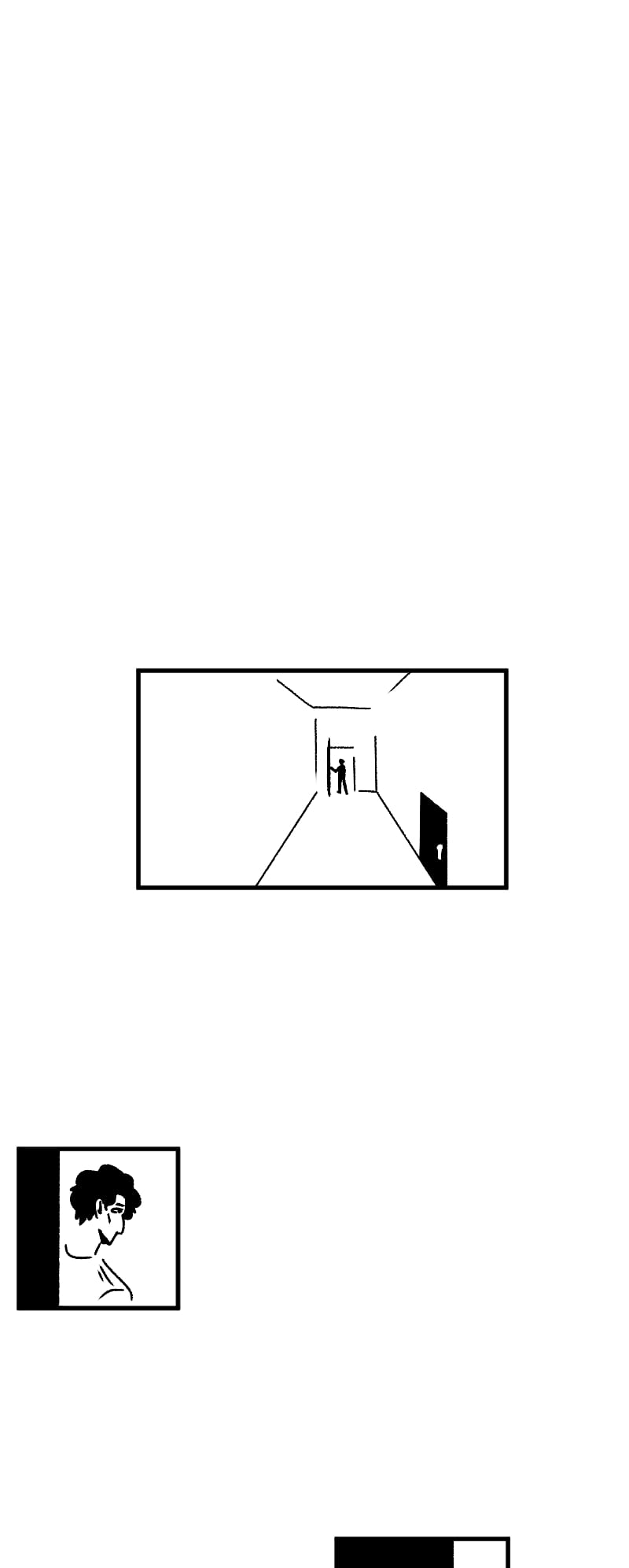 Engraçado que não apenas esse detalhe da observação deixa a gente agoniado, como a escolha de quadros que você faz contribui mto pra isso tb. A falta de cenários em alguns cantos, o jogo de preto e branco e todas as portas abrindo e fechando dão uma sensação bizarra de claustrofobia :,)