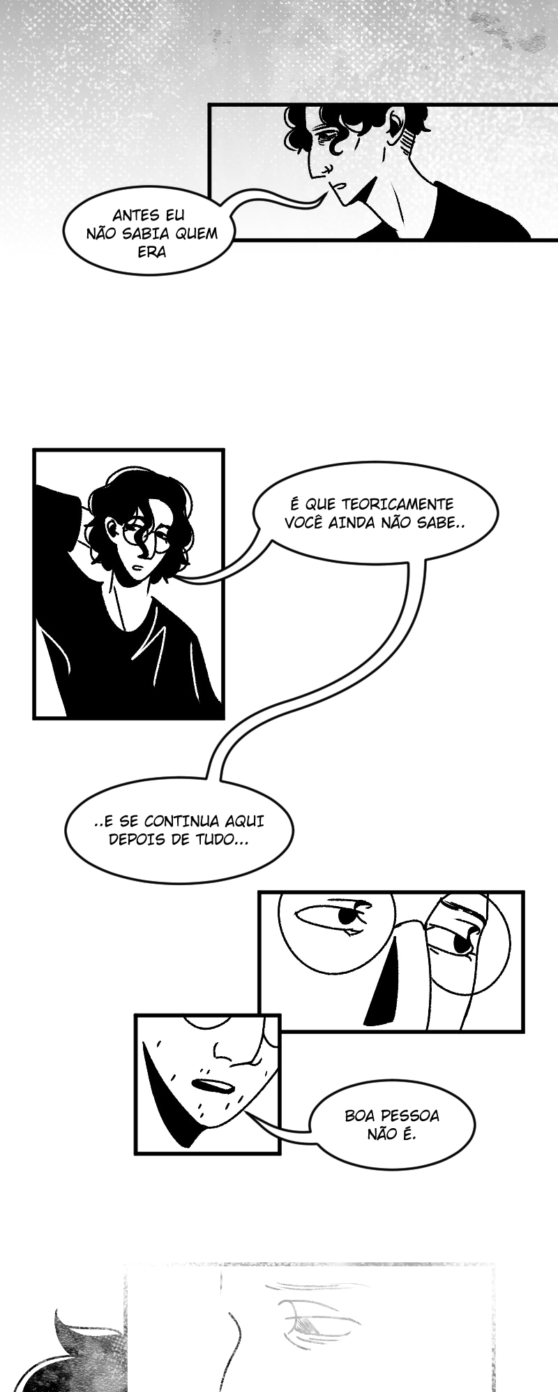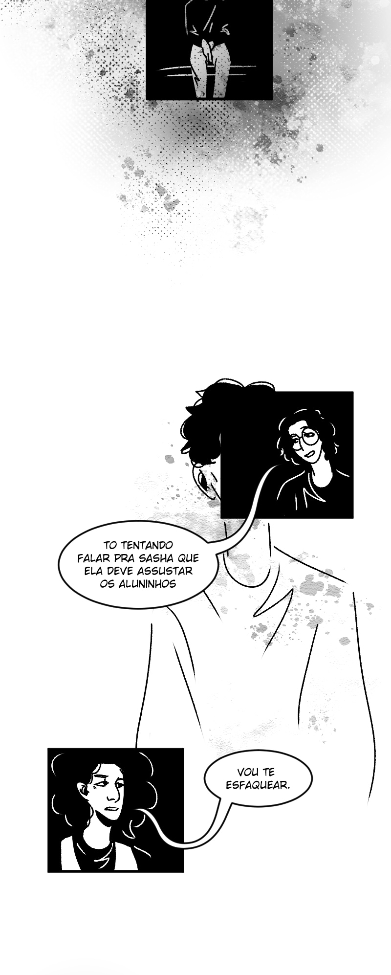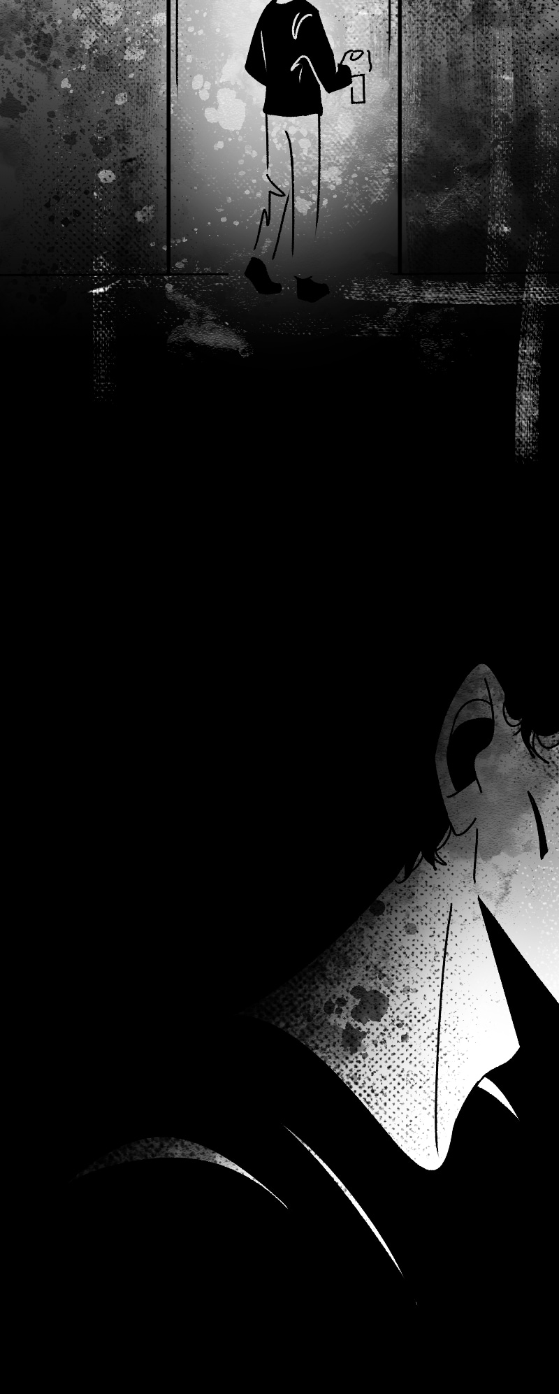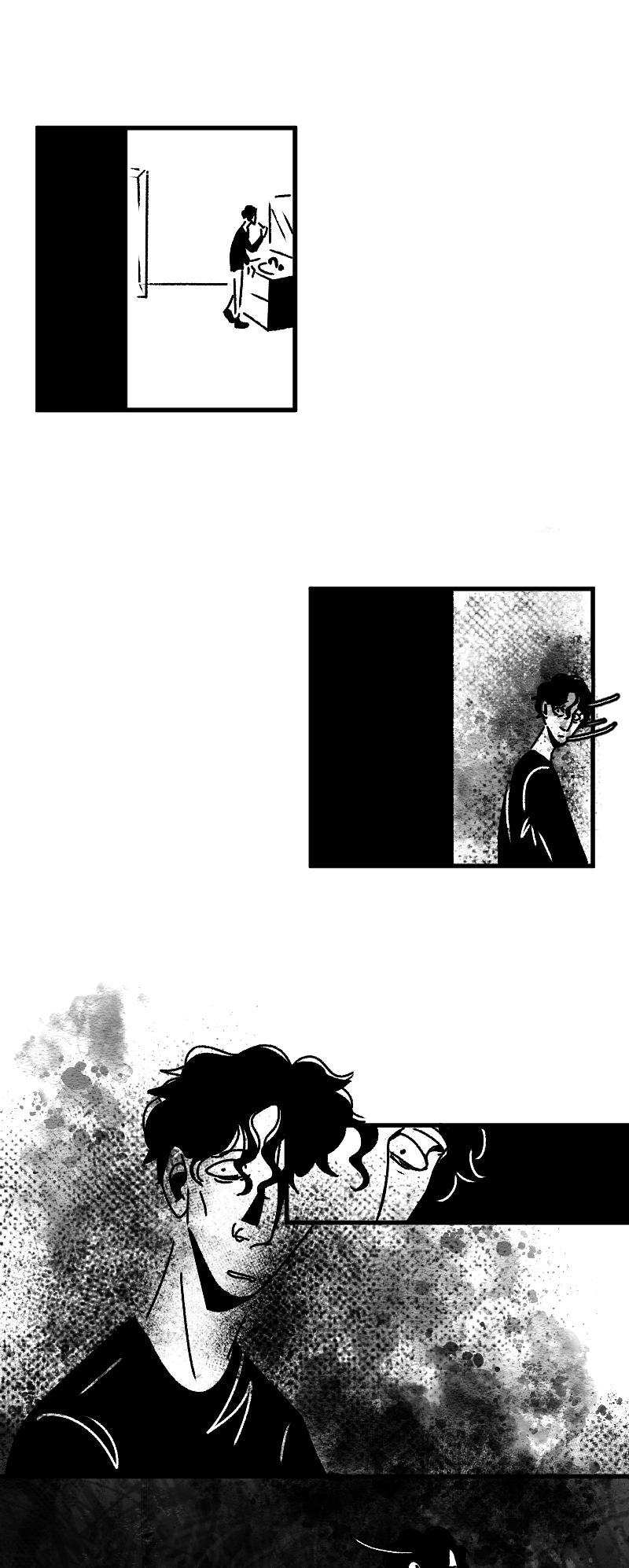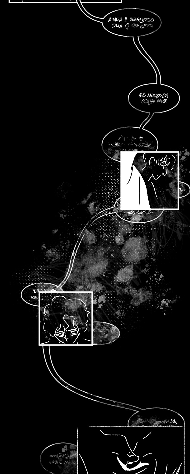Engraçado que não apenas esse detalhe da observação deixa a gente agoniado, como a escolha de quadros que você faz contribui mto pra isso tb. A falta de cenários em alguns cantos, o jogo de preto e branco e todas as portas abrindo e fechando dão uma sensação bizarra de claustrofobia :,)