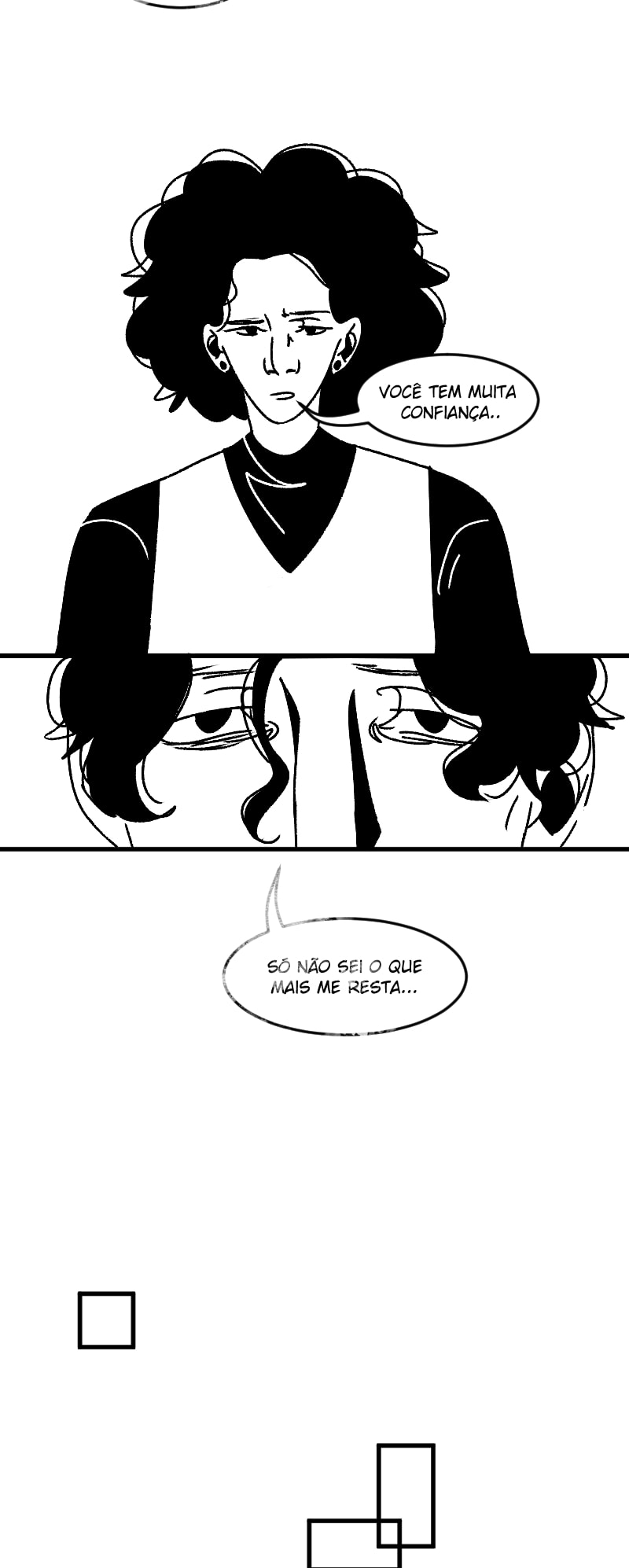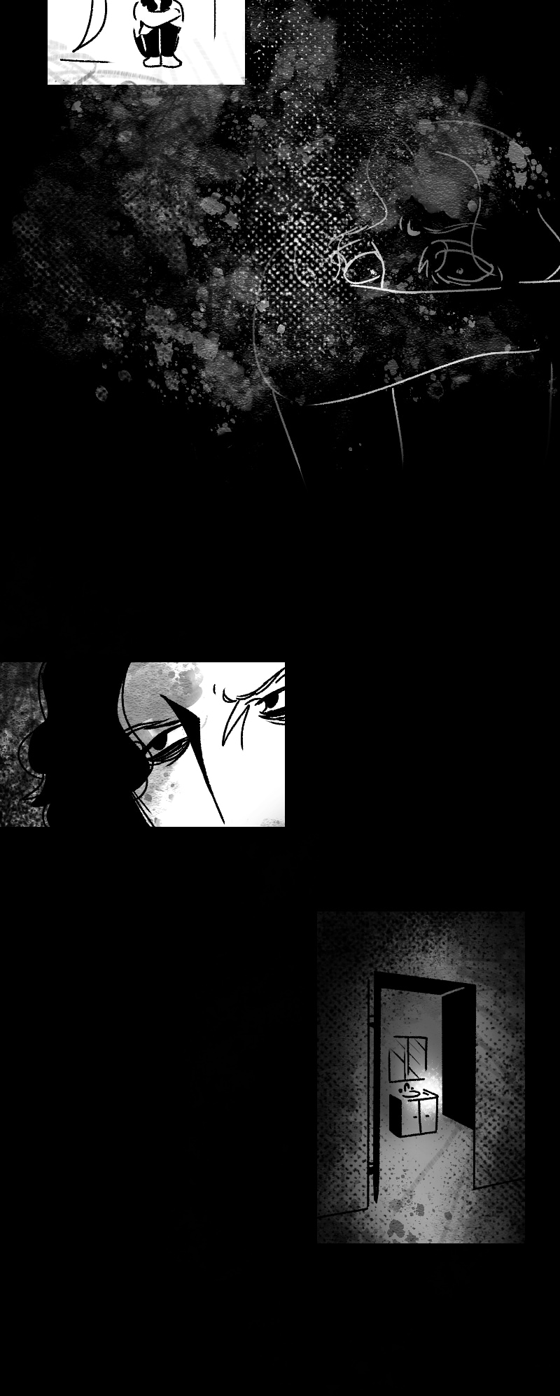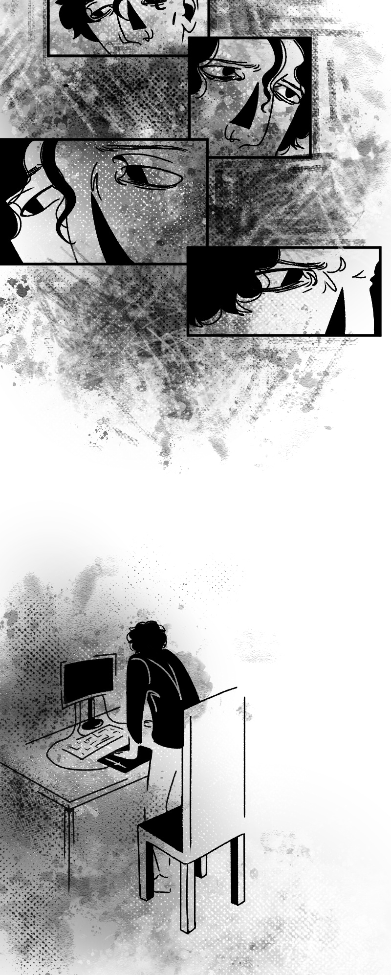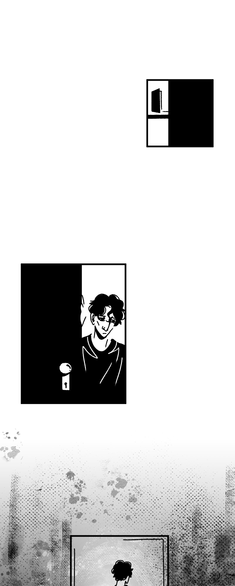 Engraçado que não apenas esse detalhe da observação deixa a gente agoniado, como a escolha de quadros que você faz contribui mto pra isso tb. A falta de cenários em alguns cantos, o jogo de preto e branco e todas as portas abrindo e fechando dão uma sensação bizarra de claustrofobia :,)