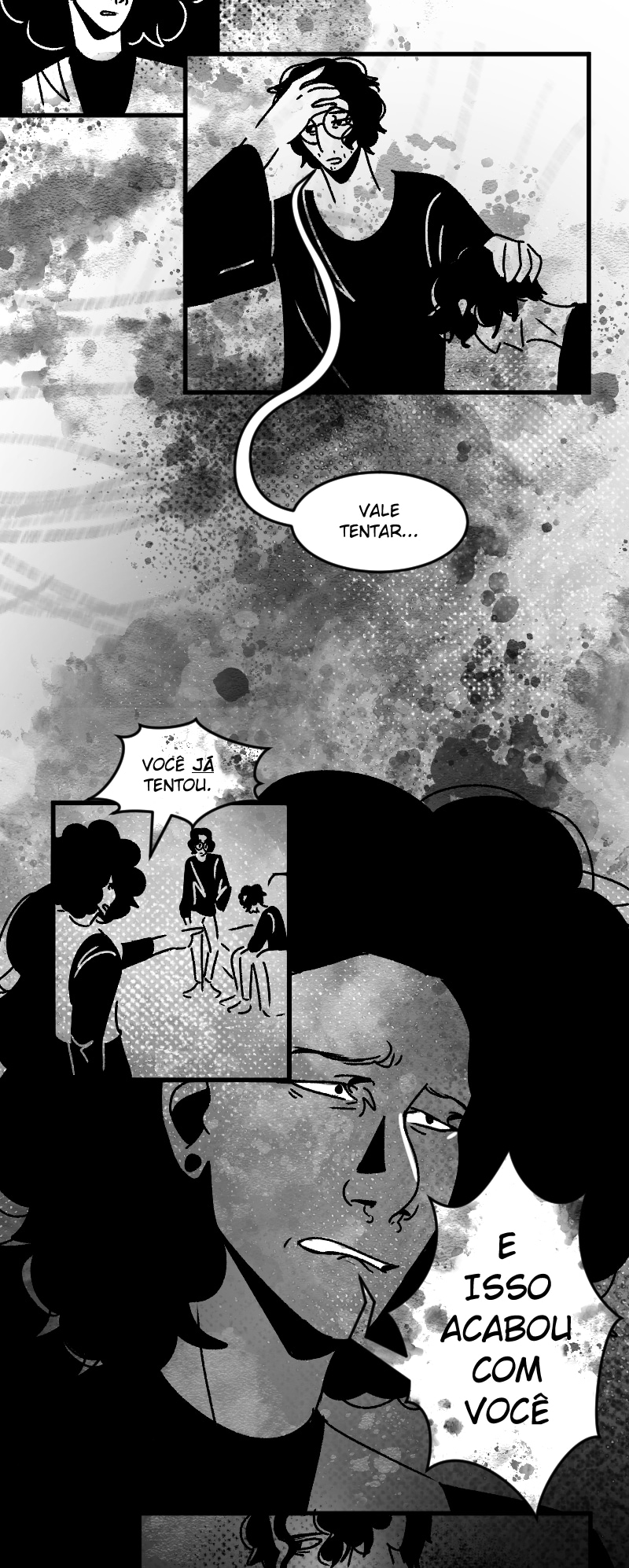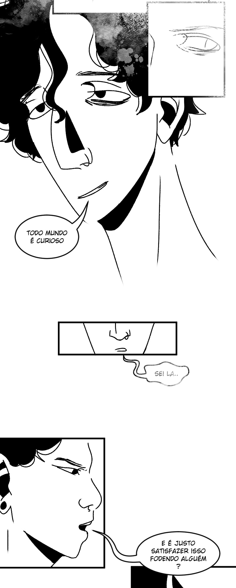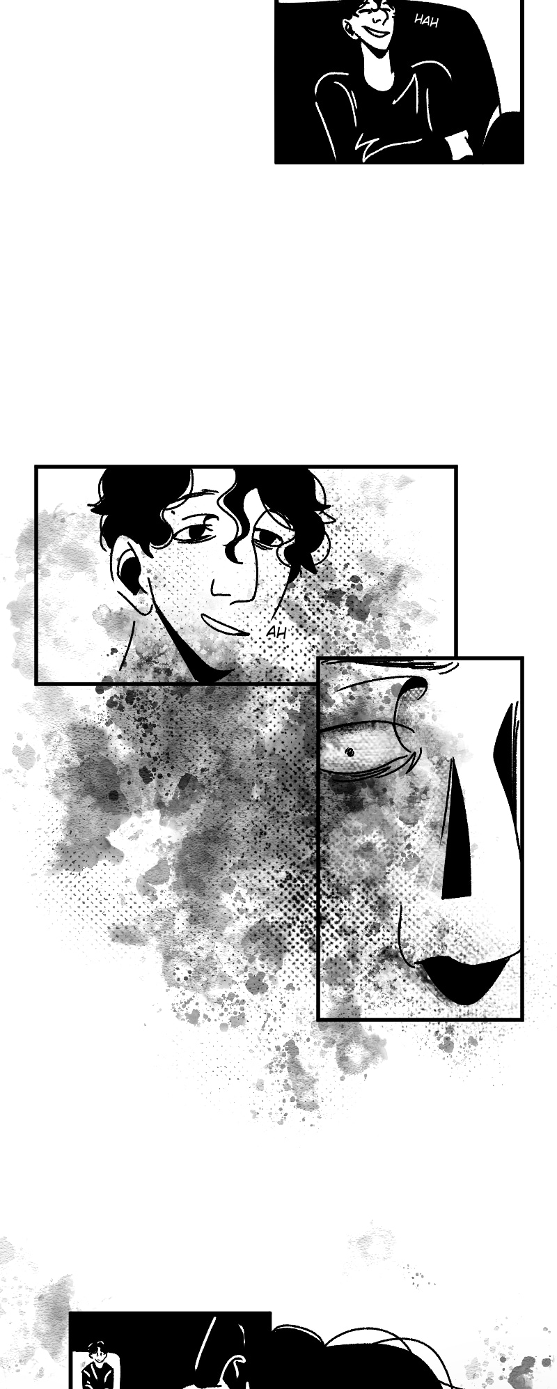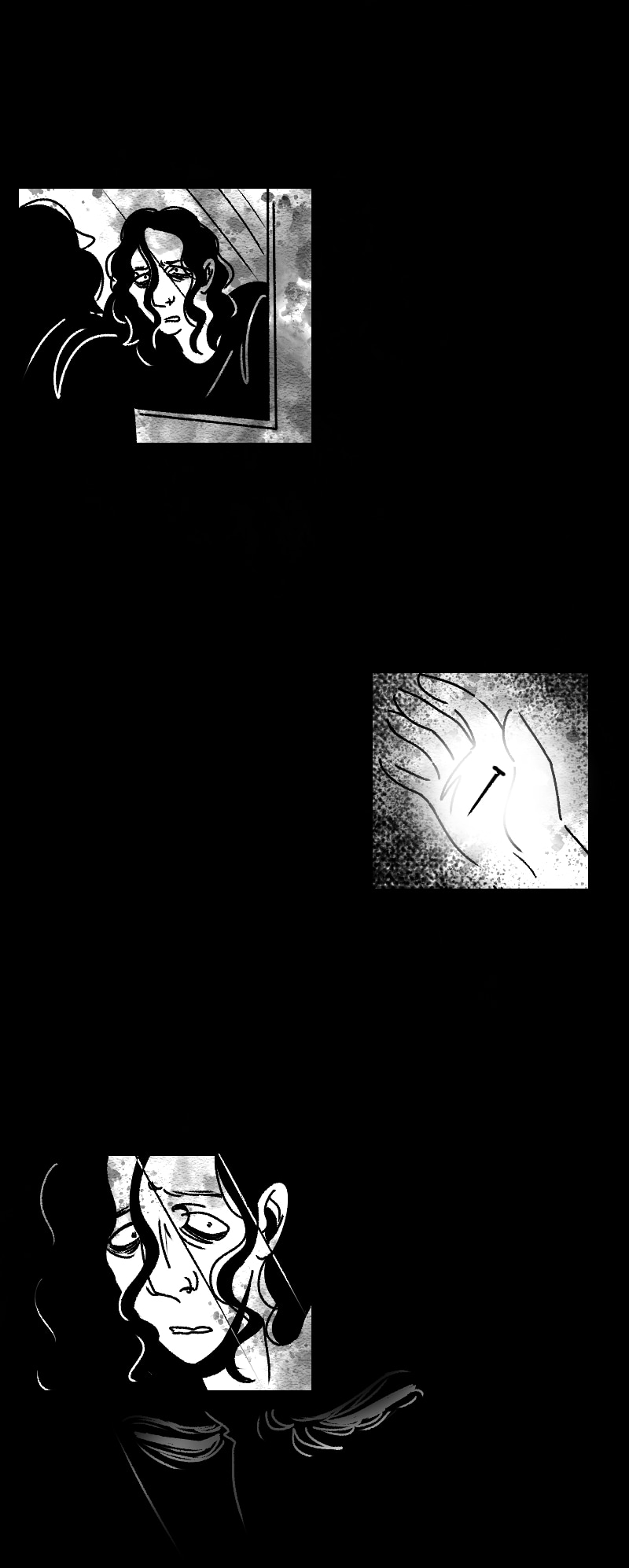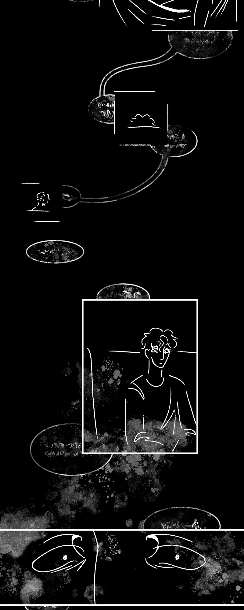 Engraçado que não apenas esse detalhe da observação deixa a gente agoniado, como a escolha de quadros que você faz contribui mto pra isso tb. A falta de cenários em alguns cantos, o jogo de preto e branco e todas as portas abrindo e fechando dão uma sensação bizarra de claustrofobia :,)
