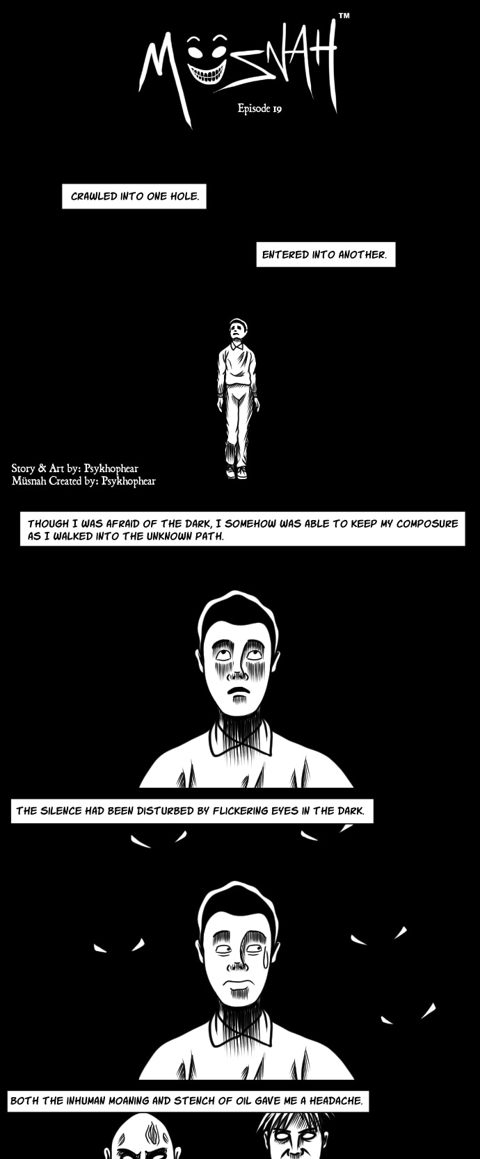 New episode on the 22nd every month. There have been reports of a strange sighting of a mysterious figure. It's a woman - she has a permanent grin on her face, she doesn't say a word, she has supernatural powers, and she lurks in the shadows. Despite her appearance, she preys on bad people and protects the innocent. She also goes by the name of Müsnah. Who is she? What is her goal? What's her motivation? Find out in this webcomic created by Psykhophear.
