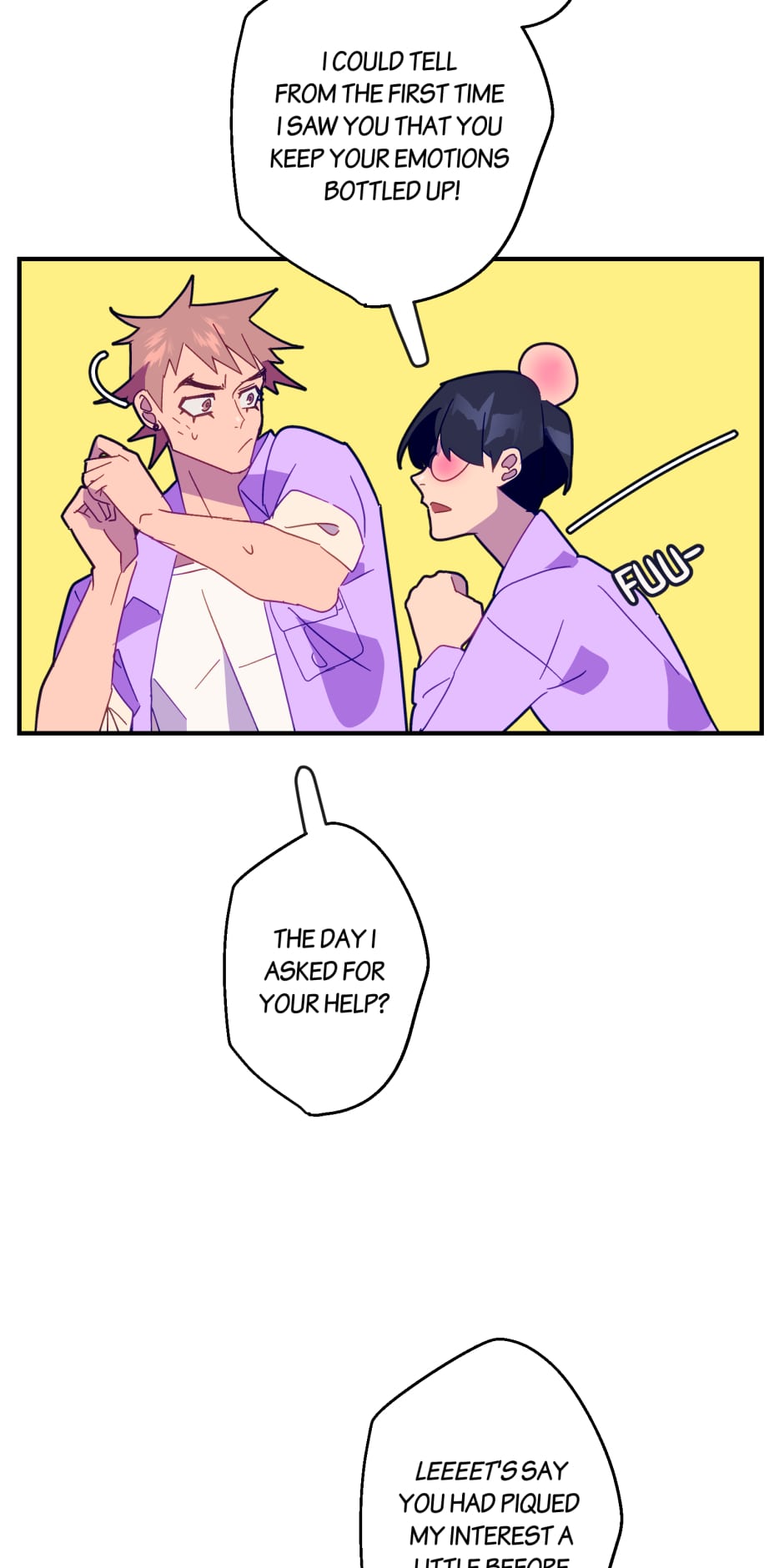 Fubi, who has no idea how to be a normal human being, asks Bushuugi, the perfect guy, for help.