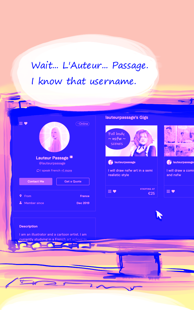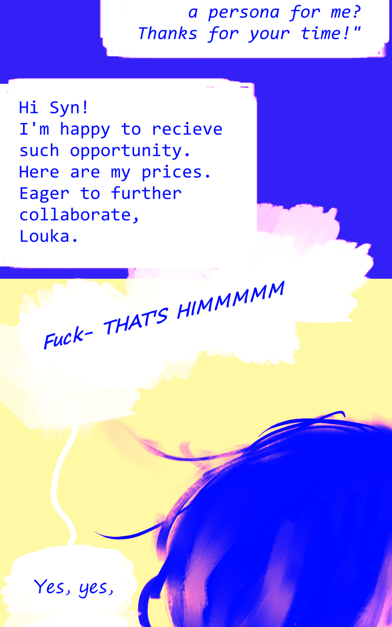 Louka, illustrator/co-writer: I regret nothing. Syn, writer: For legal reasons, the Fiverr sequence is a joke.