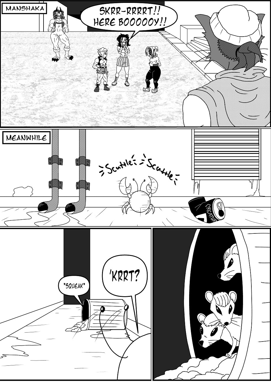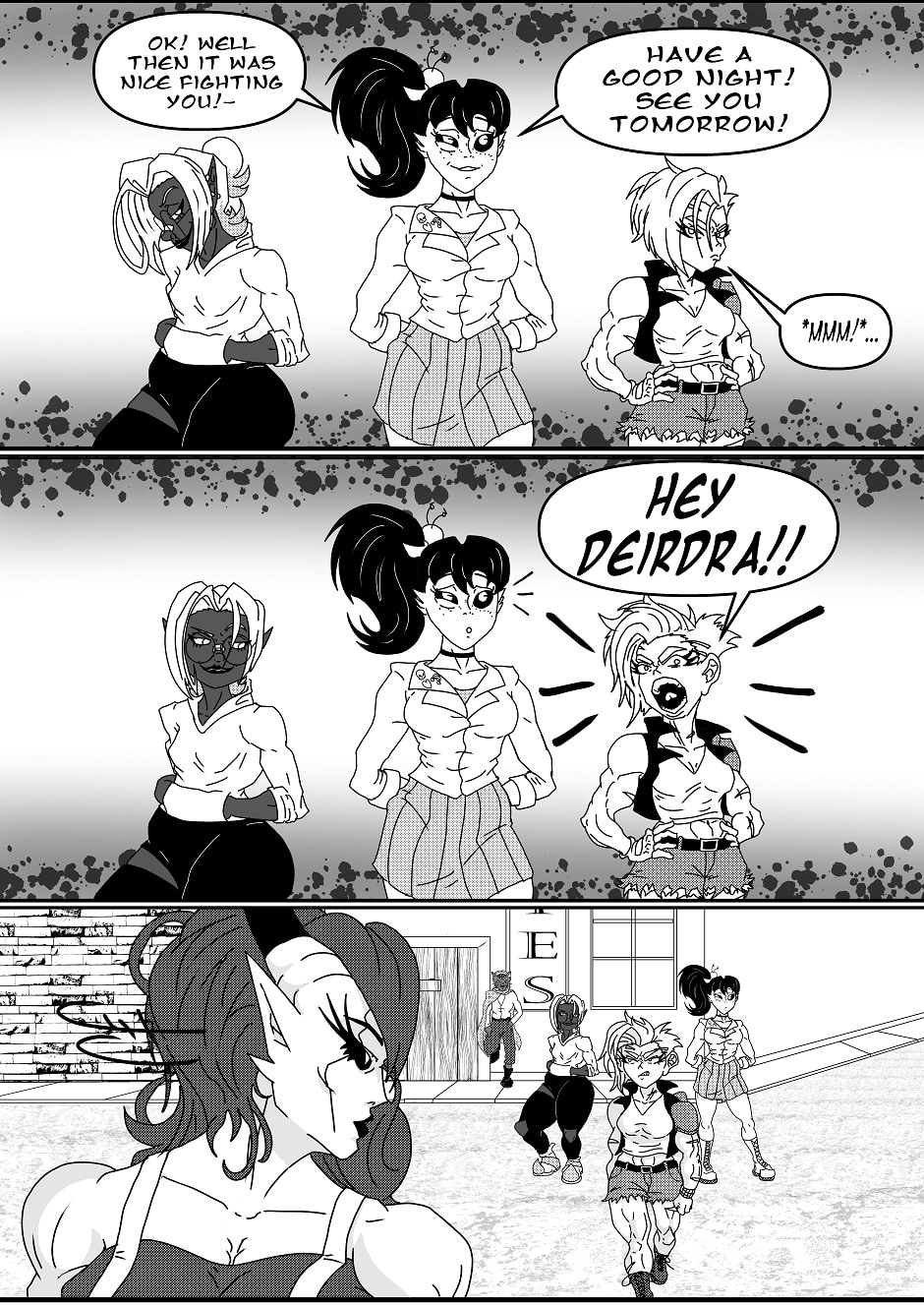 Skrrrt runs into The Rough City Rats. Ragna wants to fight Deirdra.
