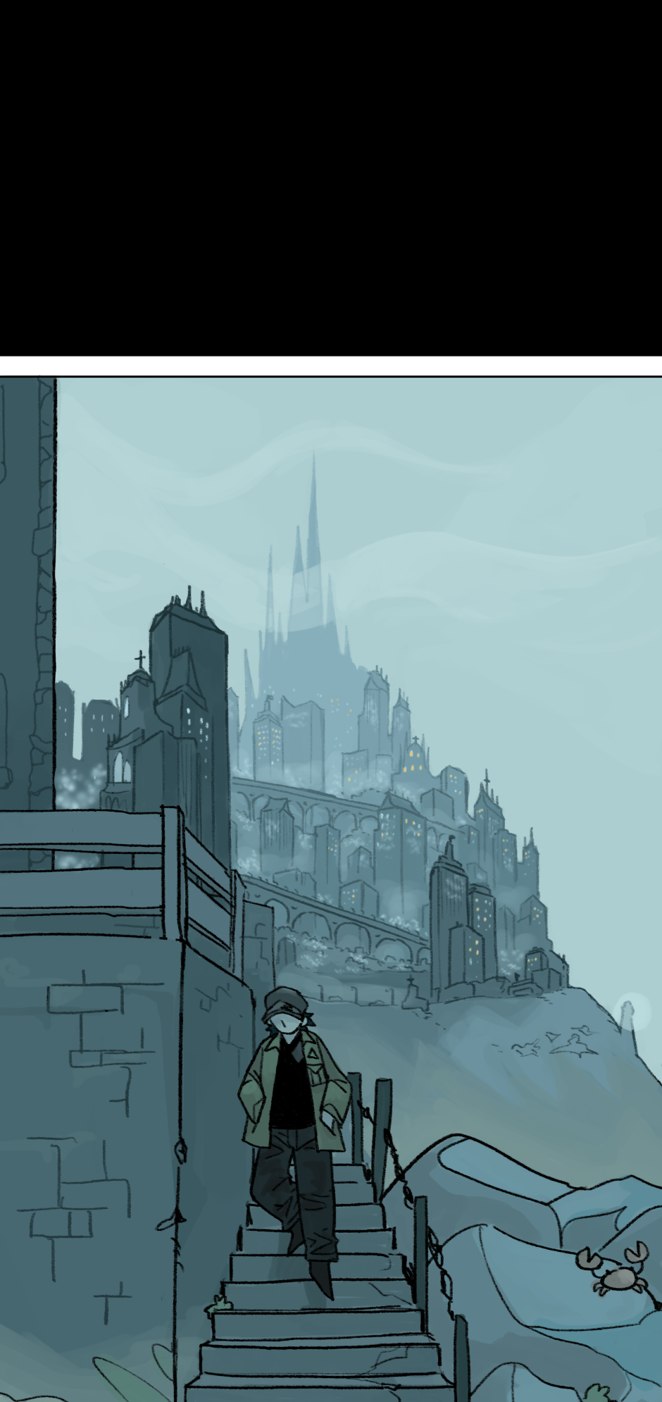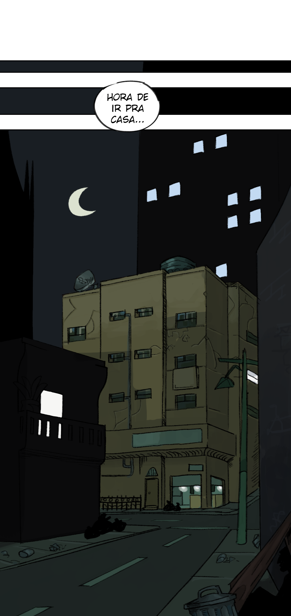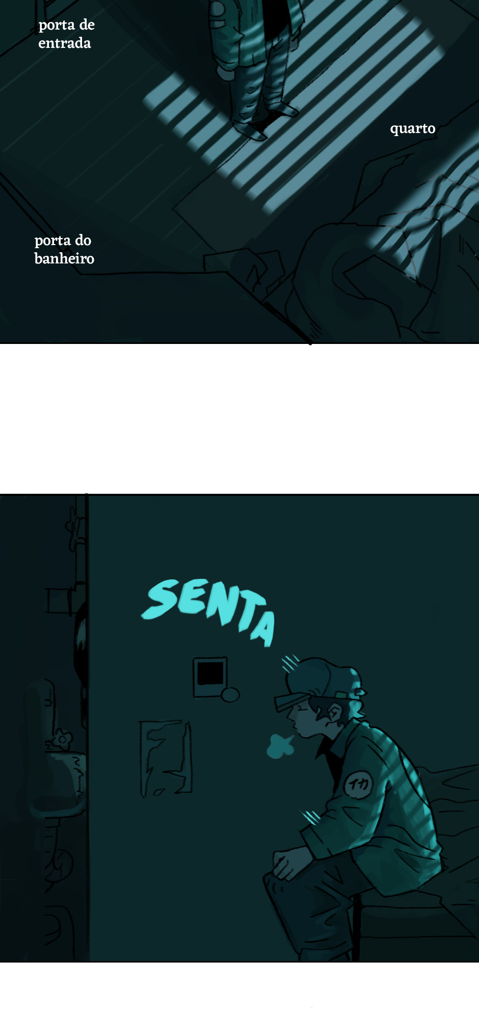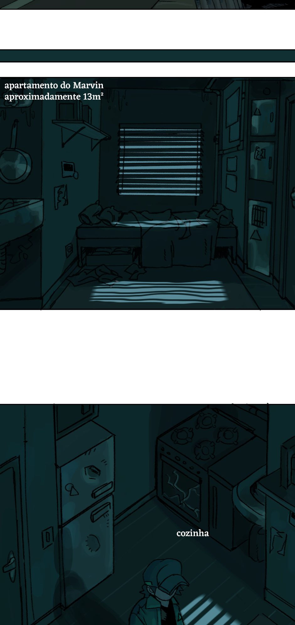 Cara eu tou achando mt massa a ambientação e as cores que vc vem dando. Principalmente as partes que tem cores frias, da uma vibe meio melancólica, como se eu tivesse a sensação de que tem algo de errado. Gostei muito, parabéns.