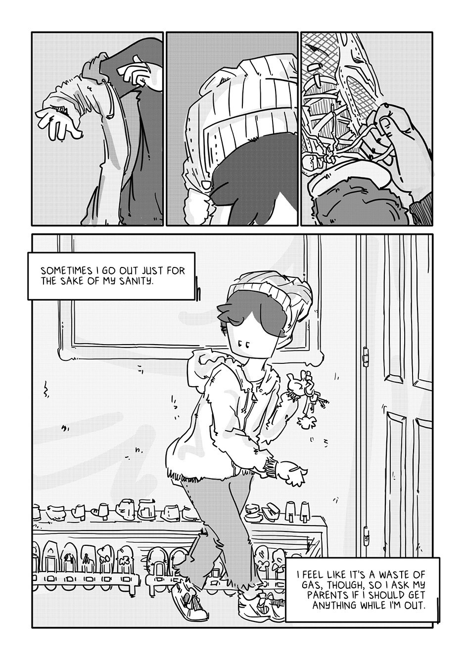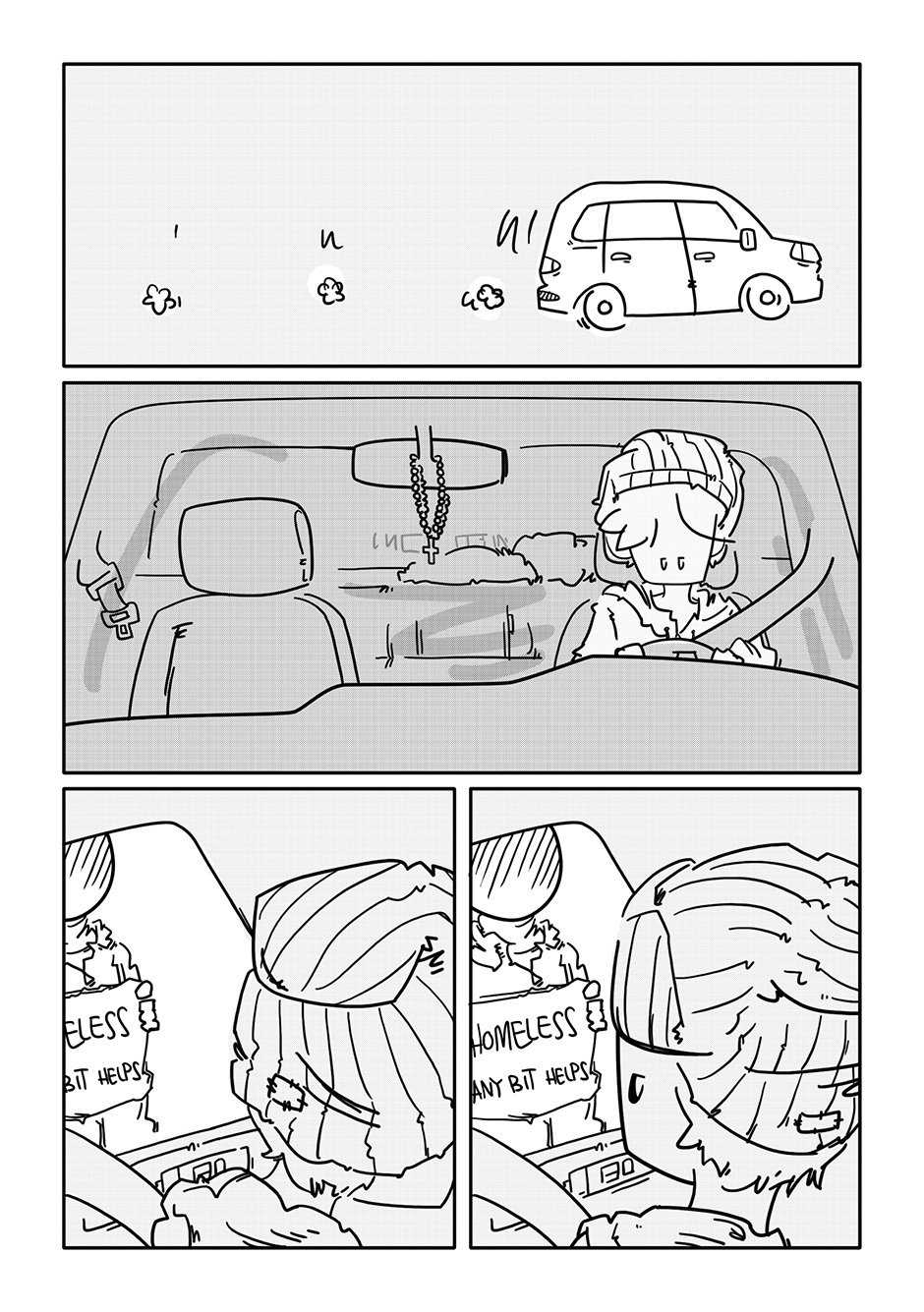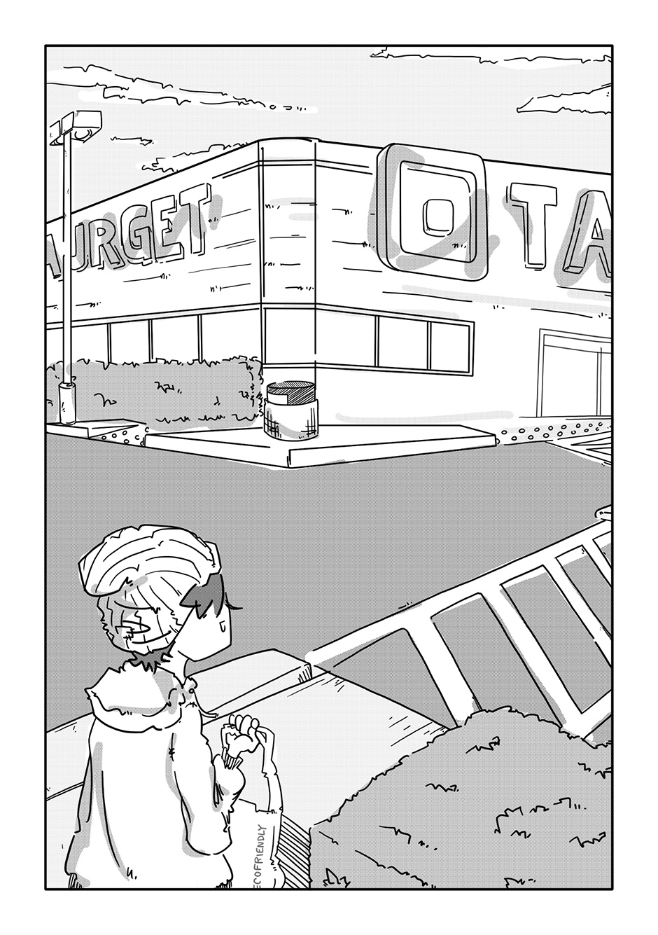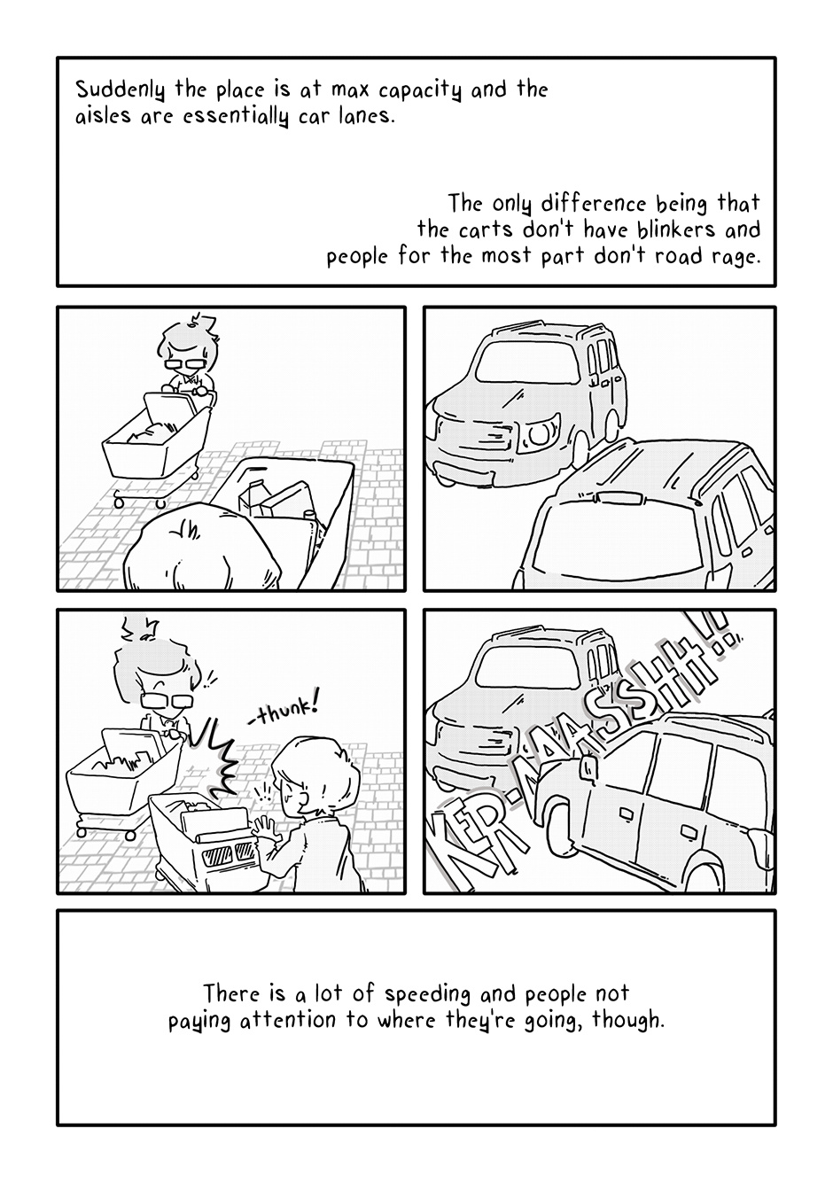Lookit that sick horizontal panel layout! After just the initial rough of those pages, I concluded the rest of the comic could come out complete and utter crap and I’d still be proud of it if only for those panels of Boy walking through the aisles. For added fun, imagine Semisonic’s “Closing Time” playing over the store speakers.
