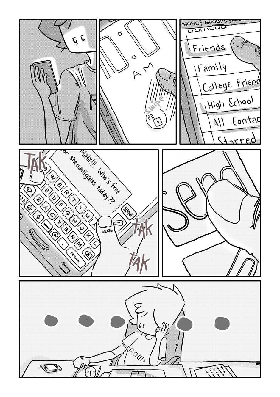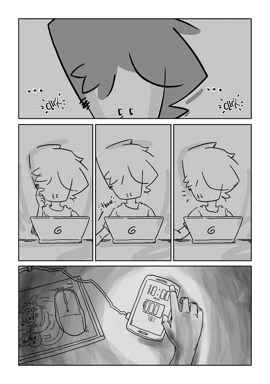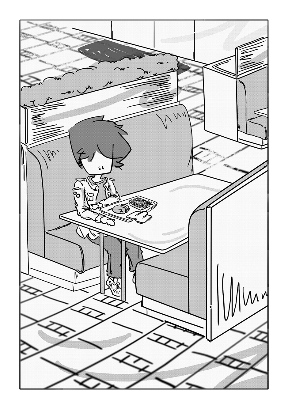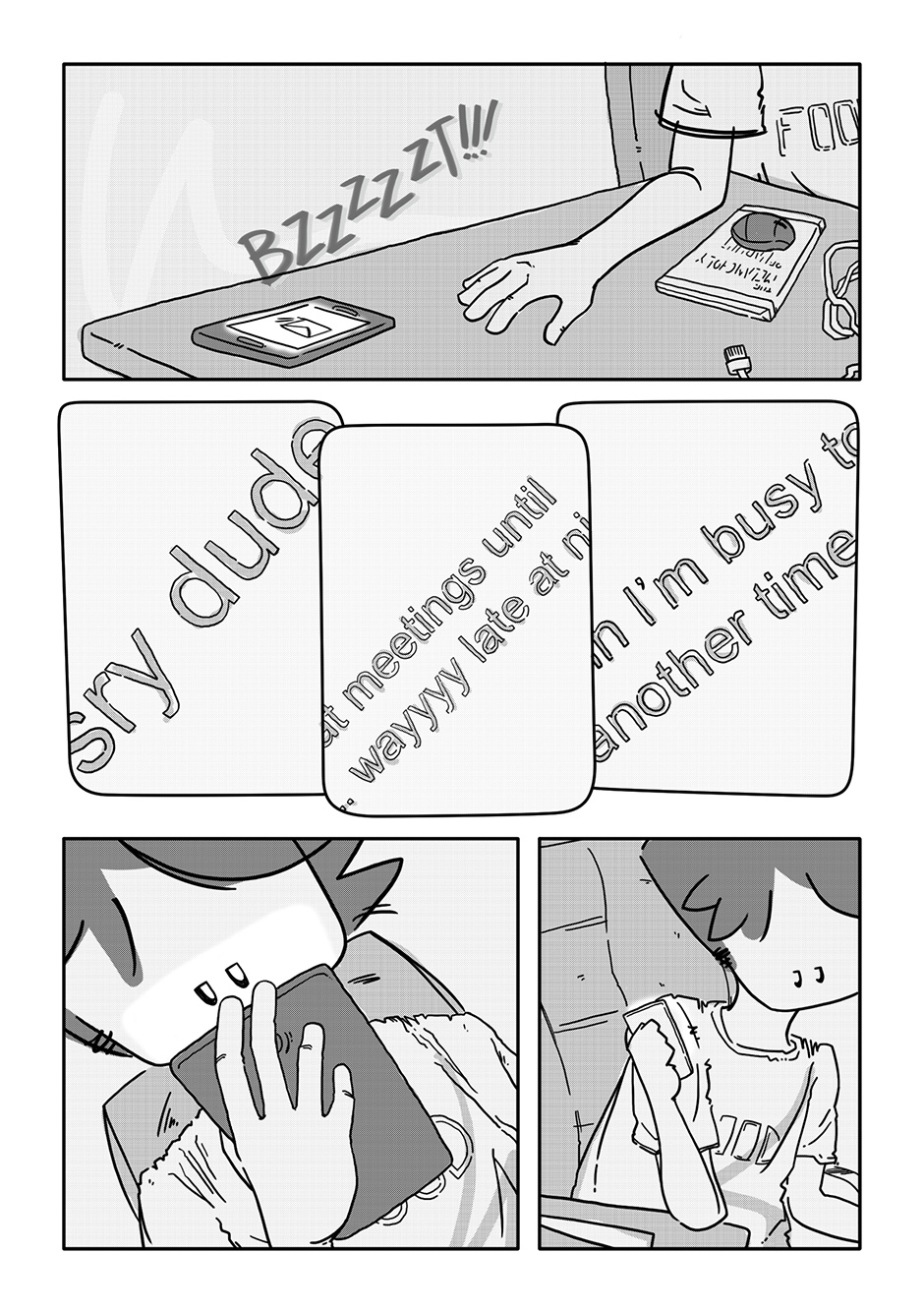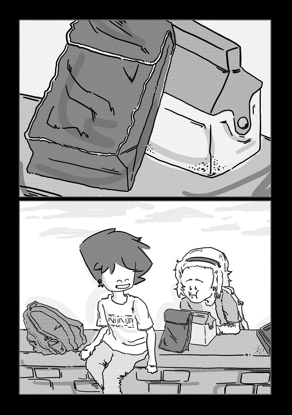 The first three chapters were such a bummer and I figured as long as I was getting Boy out of the house, I might as well throw him a bone somehow. Stoker was my response to that. Of all the characters in the story, he’s the only one I didn’t have a character design ready for when I got to roughing out his chapter. I figured something of a surfer bro (but not quite really!) look would fit a townie (well, “city-ie”) best.