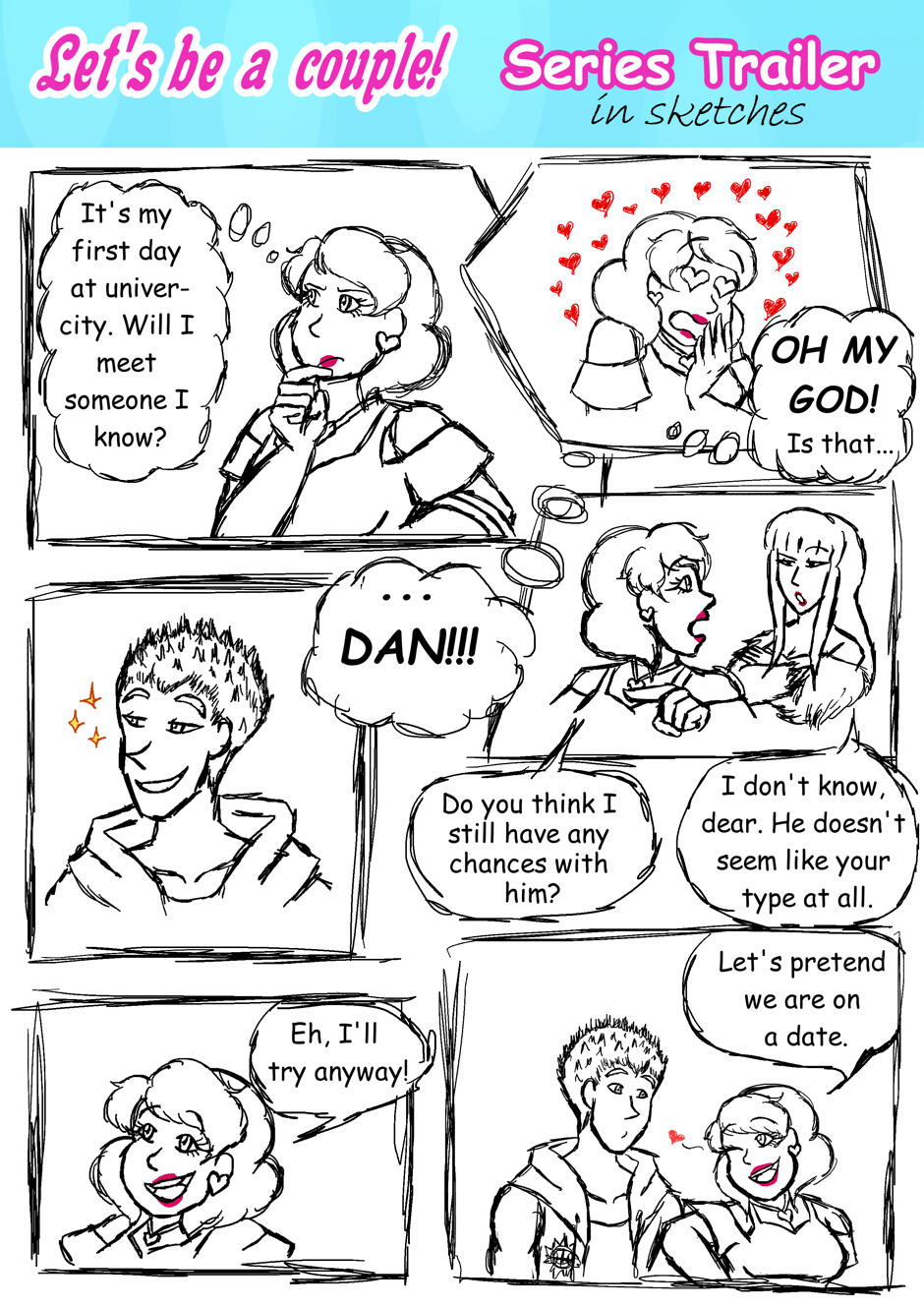 "Let's be a couple!" series trailer in sketches
