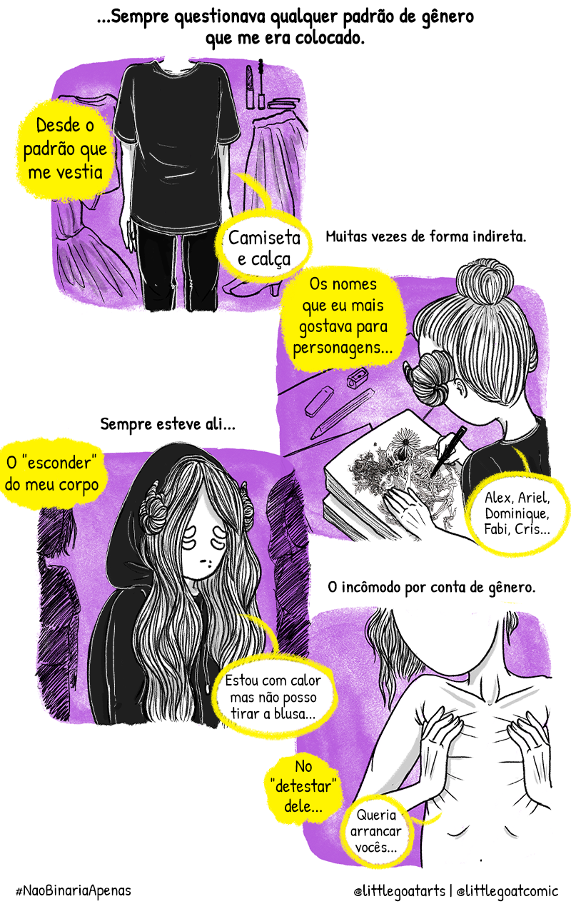 A história autobiografia contará a experiência e percepção da autora enquanto pessoa não-binária, um processo longo e de grande confusão, que sendo sincera!? Quando acaba?