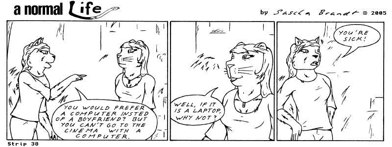 «a normal life» is a monthly webcomic about the two female computer geeks Sandra Lionheart and Sarah Fox. Many years ago :-) Support my comic a normal life and become a patron at www.patreon.com/lionclaw1
