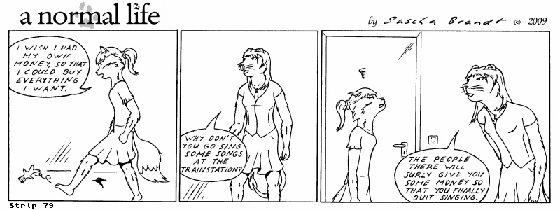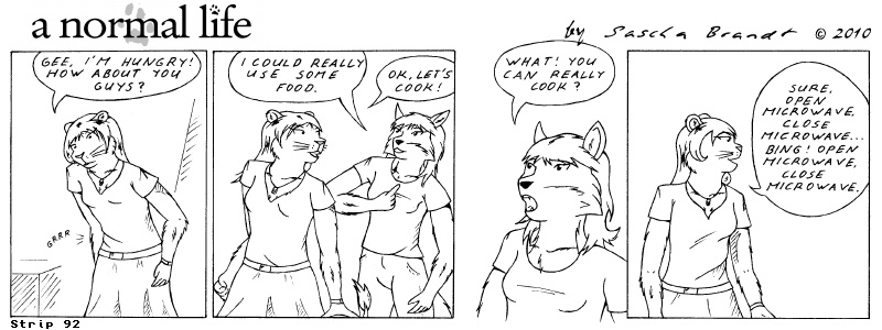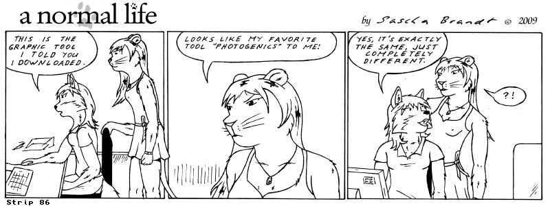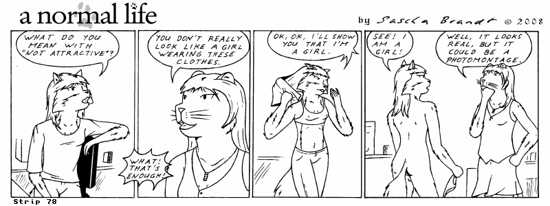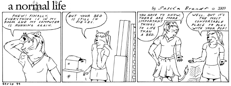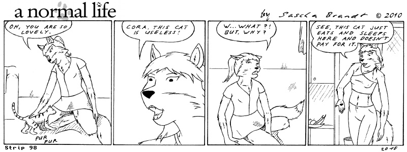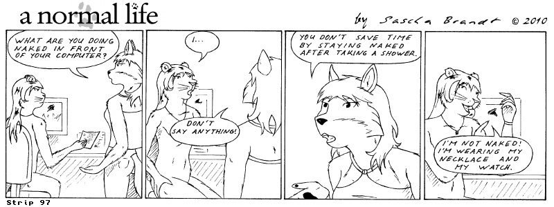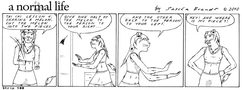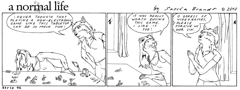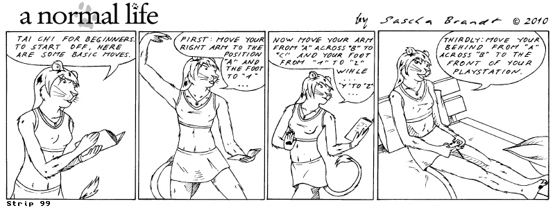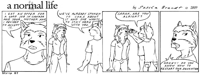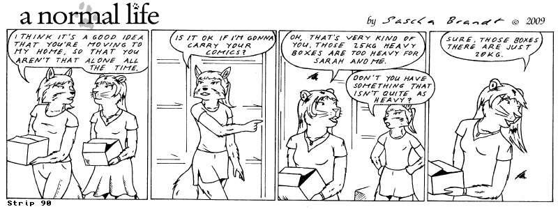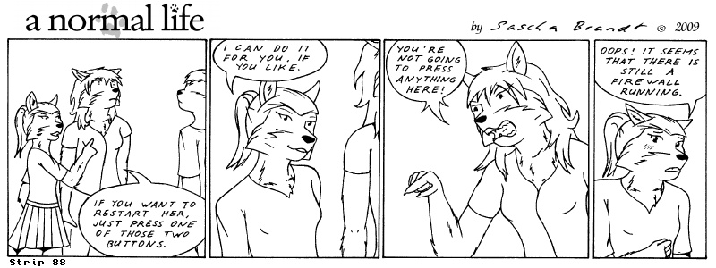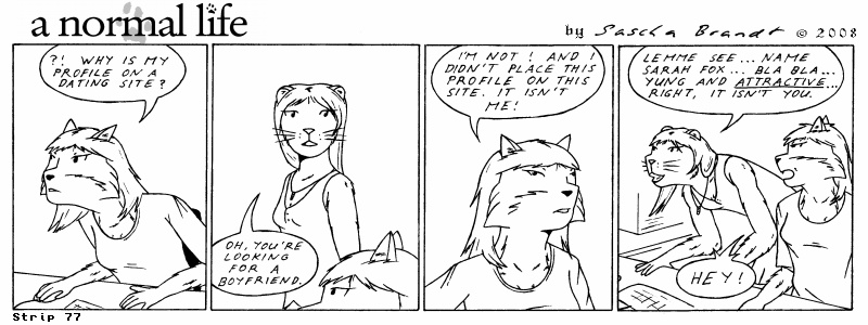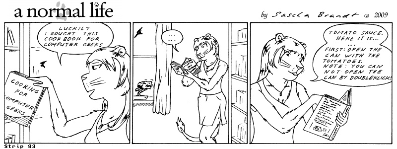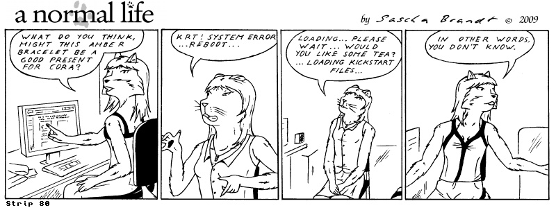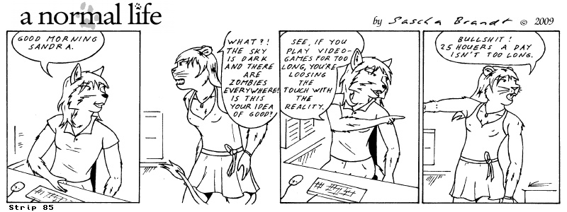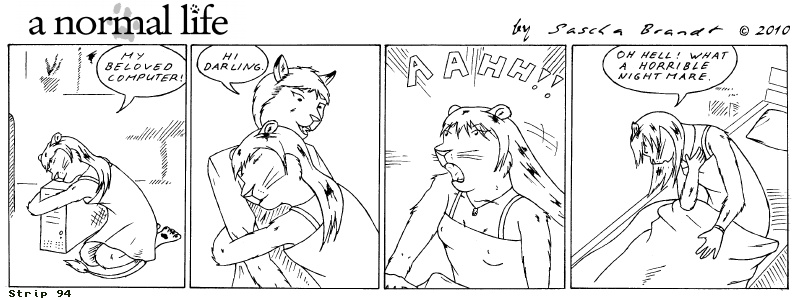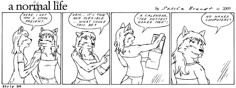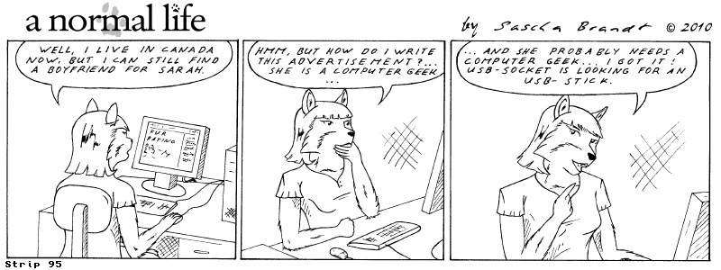 «a normal life» is a monthly webcomic about the two female computer geeks Sandra Lionheart and Sarah Fox. WooHoo! 100 Strips! Support my comic a normal life and become a patron at www.patreon.com/lionclaw1