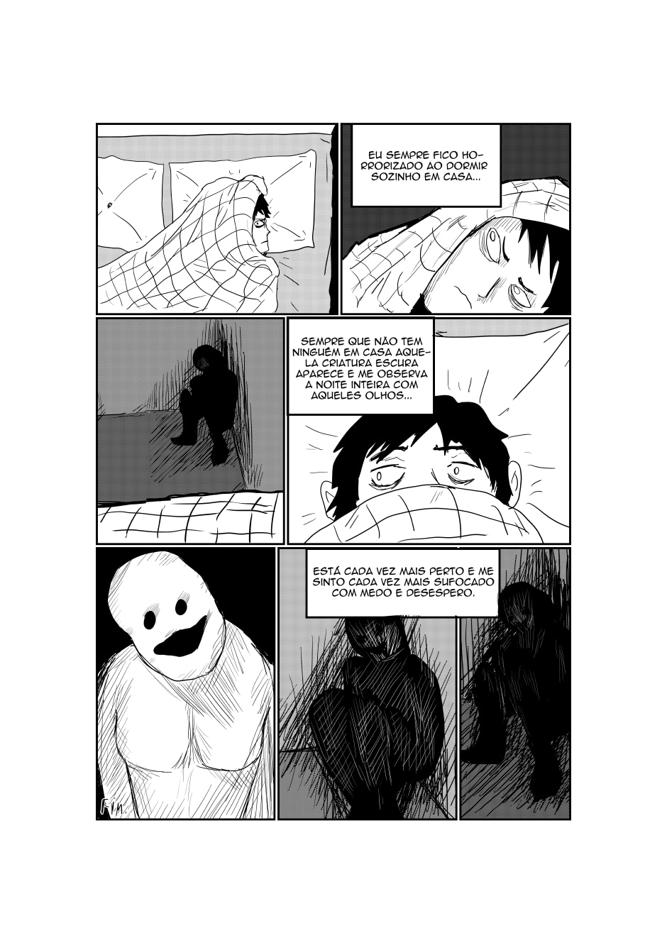 Ele está tentando dormir, mas tem algo em seu quarto, e não é a primeira vez que aquilo está lá.