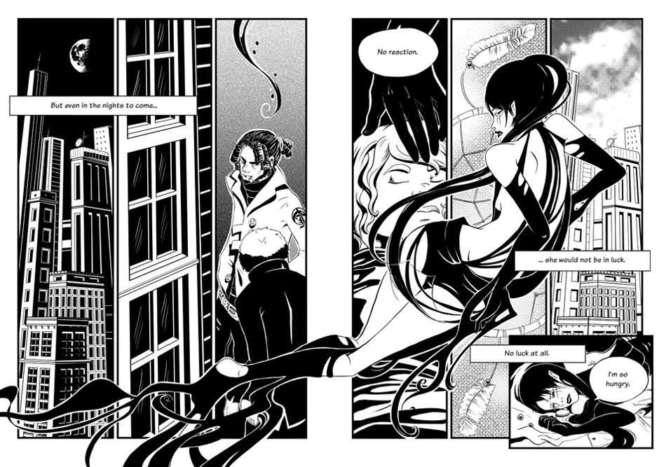 And that's the problem when you convert a print-comic into web-size :D Hope you can still see enough and get the right impression for the double-page. It just doesn't feels right to seperate the two pages, as you can see.