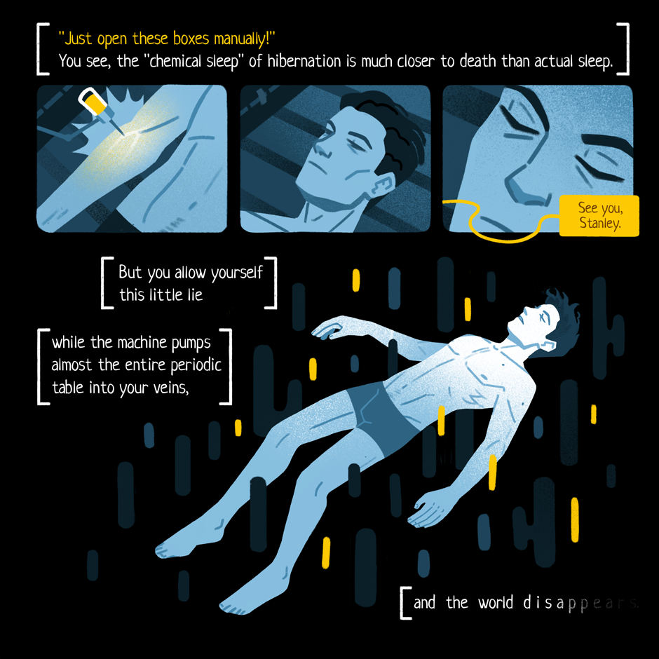 The spacecraft is critically damaged and goes off the planned course. The ship's AI is desperately trying to outplay fate and not let the passengers die.