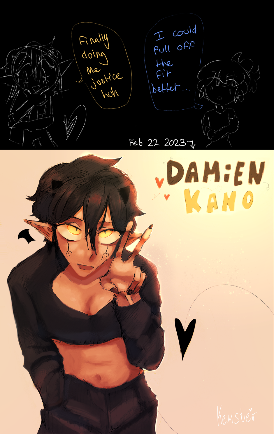 A human, Veronica, meets a demon named Damien disguised as a bat and lets him into her house. When Veronica realizes his true form, she discovers he’s in need of a home. She chooses to let Damien stay but will only be met with chaotic events. Follow these two and their friends as they learn more about each other.
