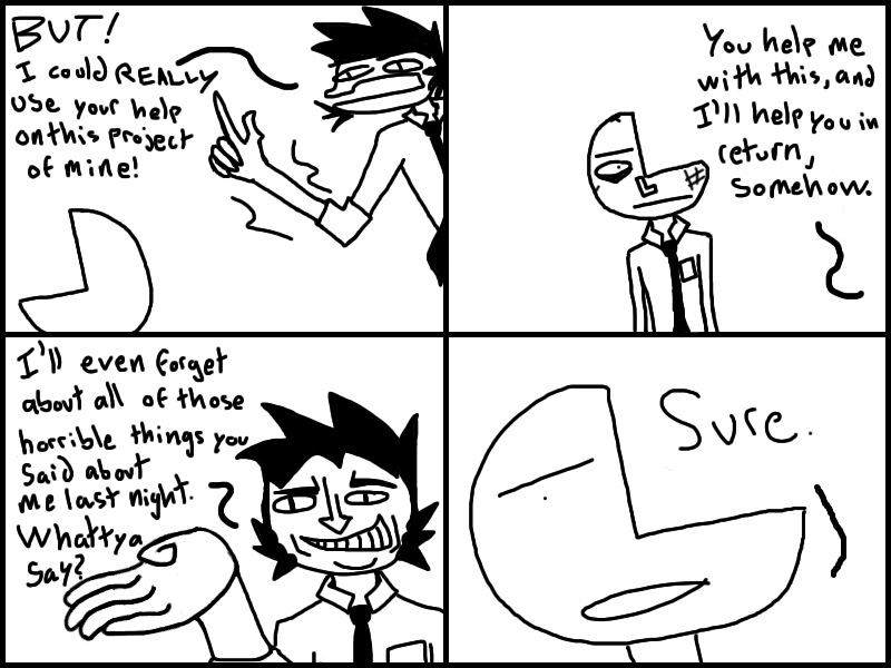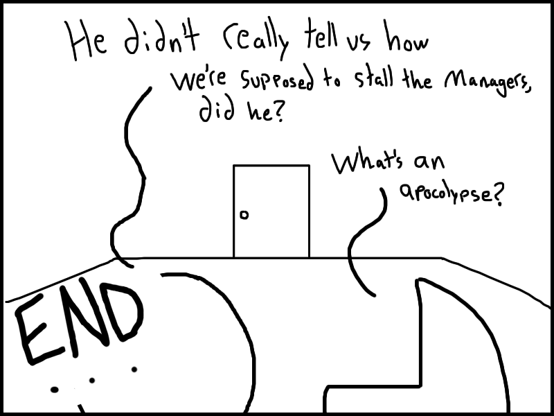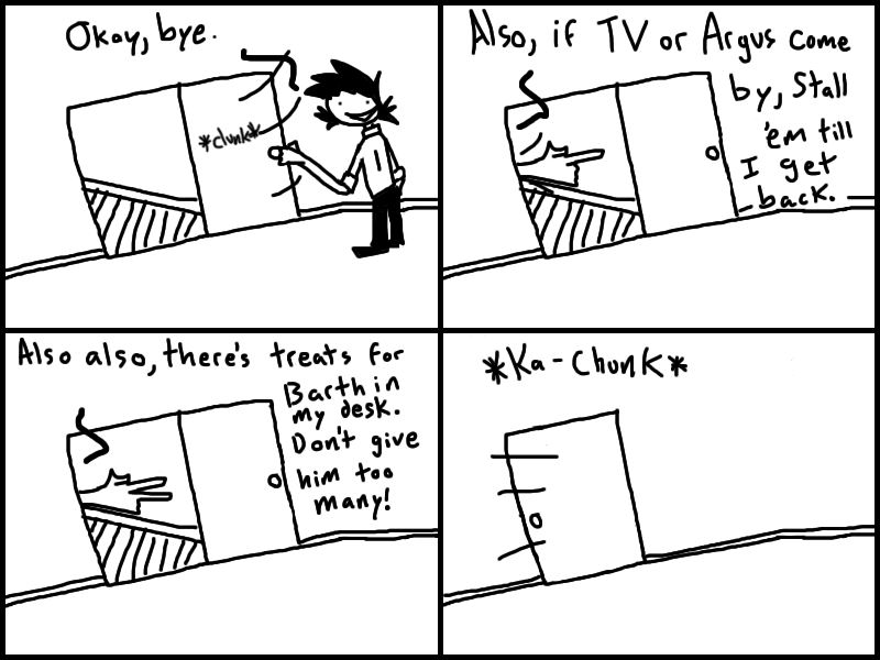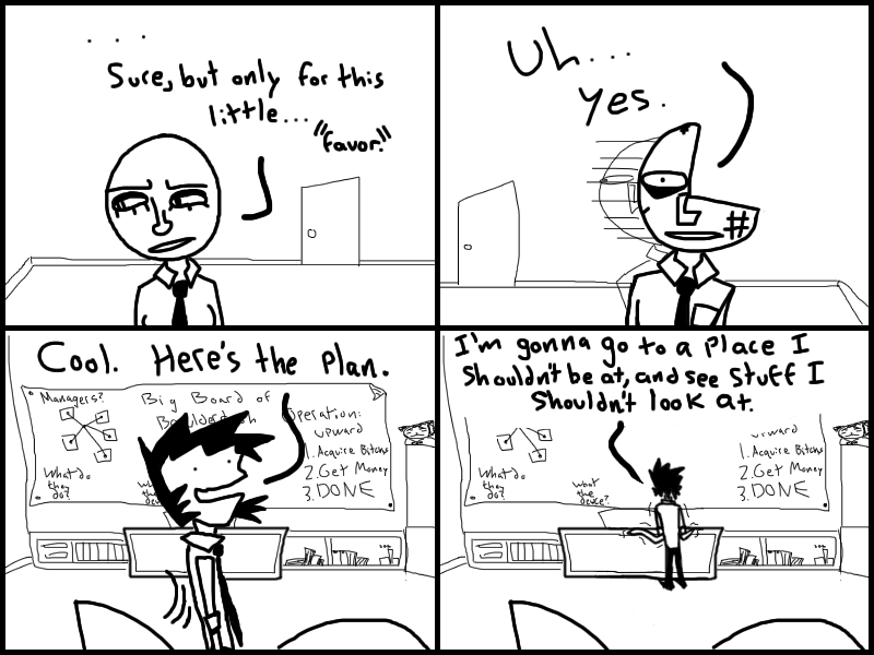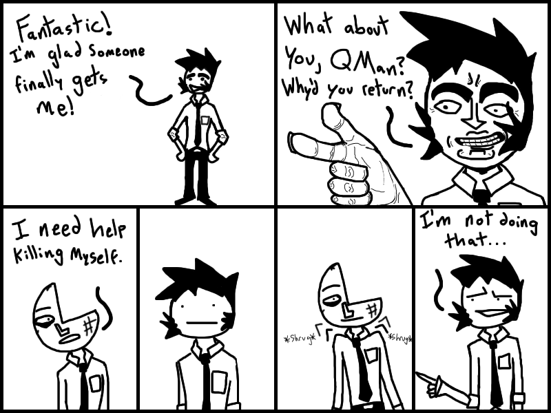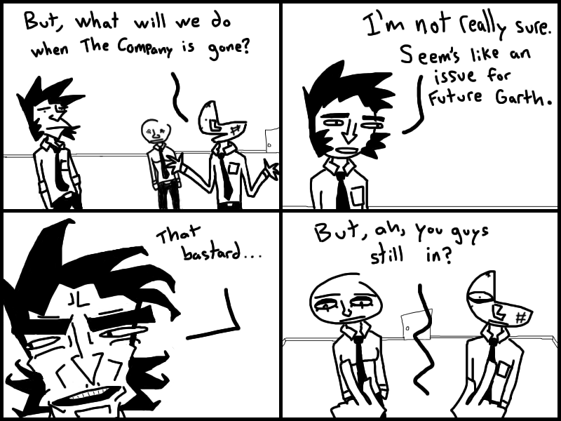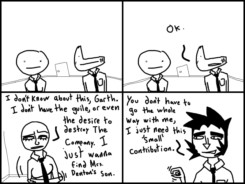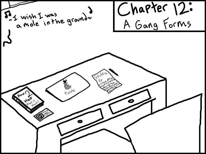 Garth meets up with Doris and QMan, and convinces them to join his little gang of miscreants. Or does he?? Who knows? Read the freakin chapter and find out.