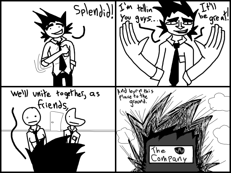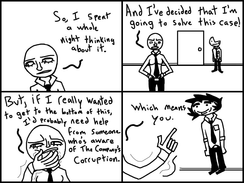 Office-ally Dead is set in a world where people trade in parts of their own bodies for mad dosh. Follow an amnesiac nicknamed "Quarter Man" as he struggles to do... anything, really.