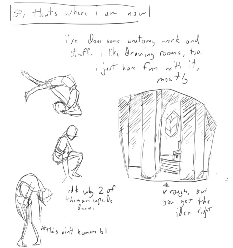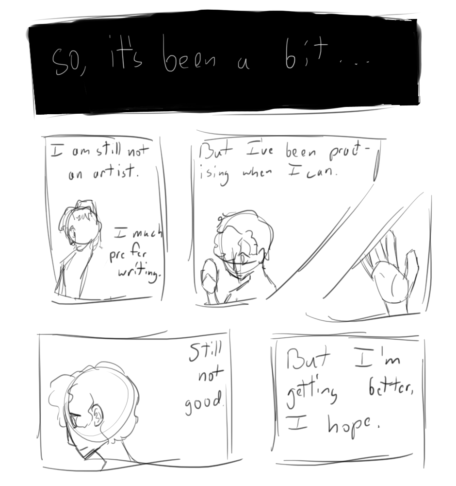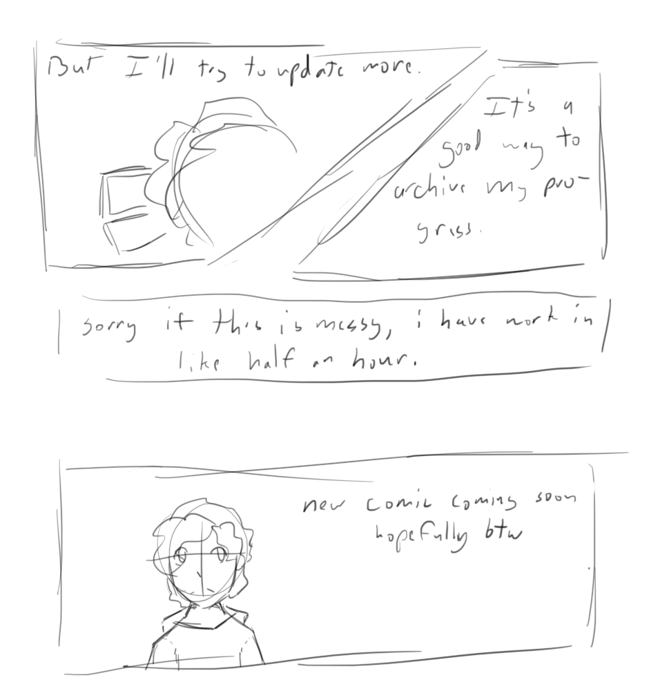 i can't promise regular updates on this, like i can with my writing, but i can try my best. just not used to drawing so it hurts my hand if i do it for more than like an hour or something, even if i do the warmups and stuff.