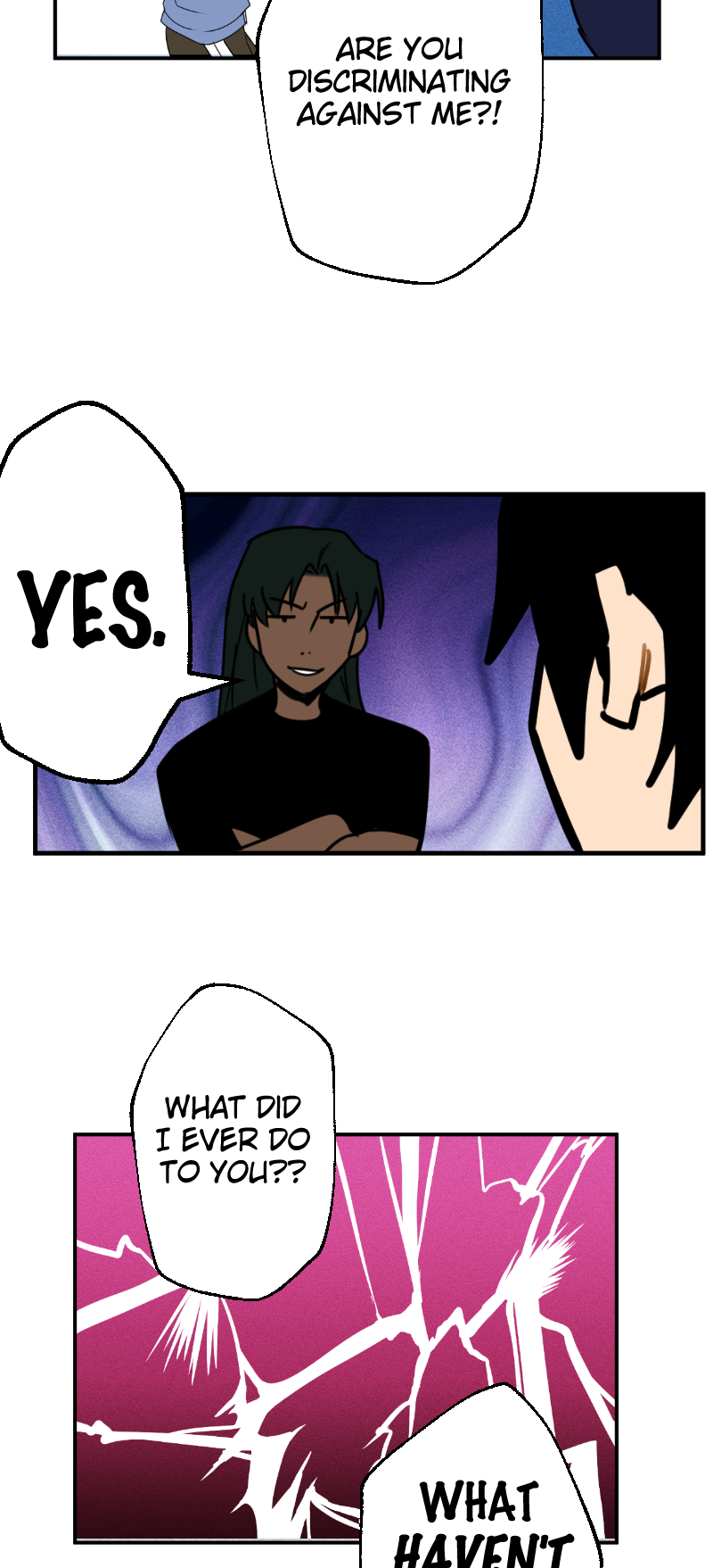 "What did I ever do to you??" do you want a list of that? And in alphabetical order or descending?