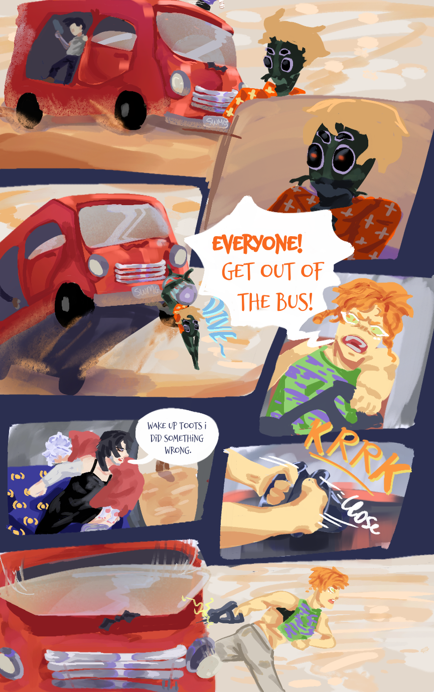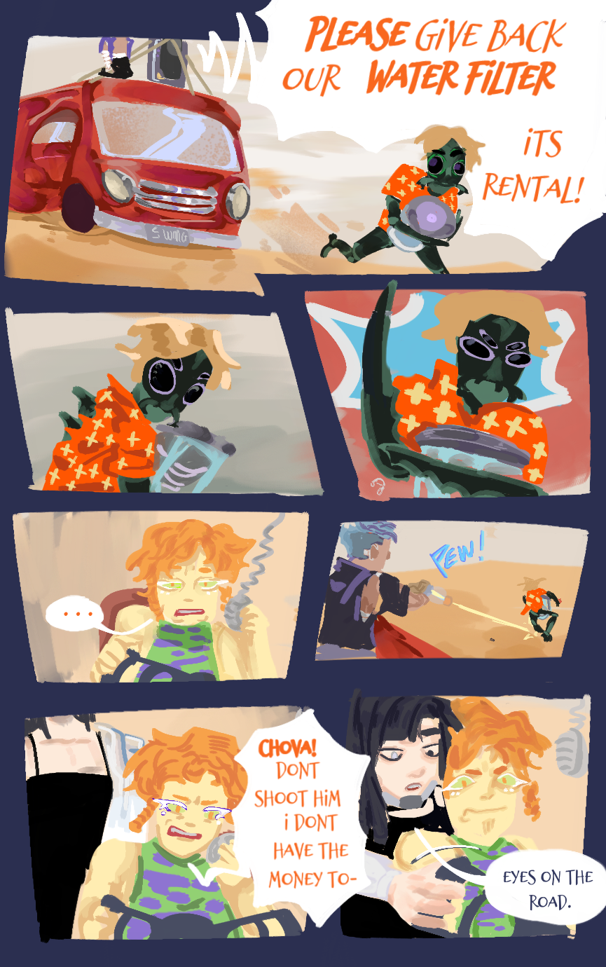 Follow the group on their other worldly adventures. Watch their unmatched chaos ruin this barren wasteland. They don't know what they're running from but they're always on the go.