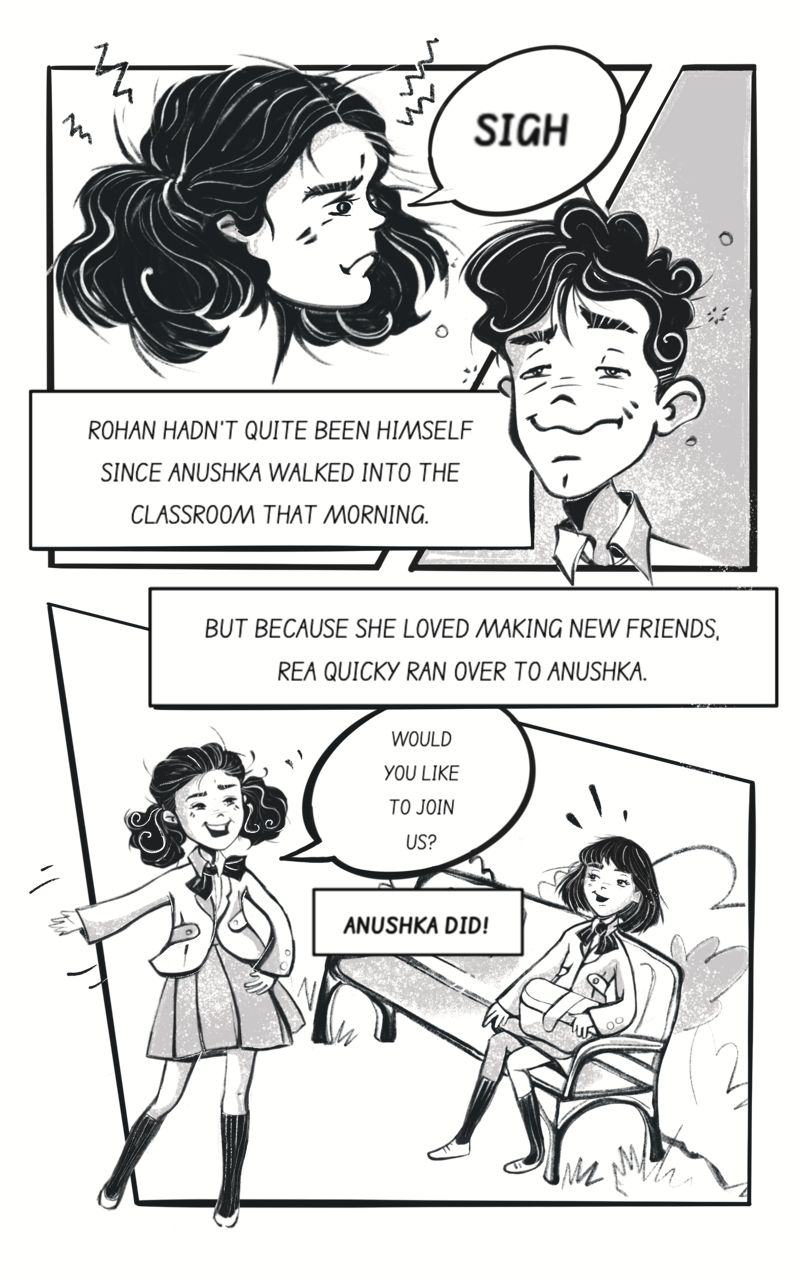 Sparkly eyed Rea is feisty and outgoing, always looking at potential mysteries to solve. Rohan, with a ready grin – is usually late to class and with his homework but gets through the day, thanks to Rea’s constant backing or bickering. Jovial Jay is a happy go lucky boy whose main happiness is breakfast, lunch, and dinner! The latest entrant to the group is Anushka- all the way from France! The shy but sweet girl joins the little group of nerds on her very first day of school! Poor little rich Anushka struggles to balance old family secrets with making new friends.