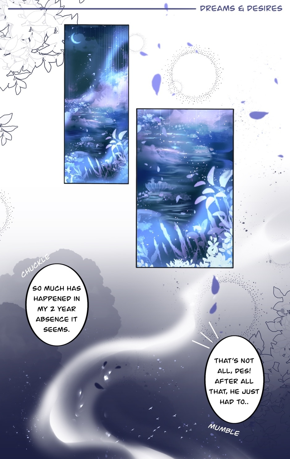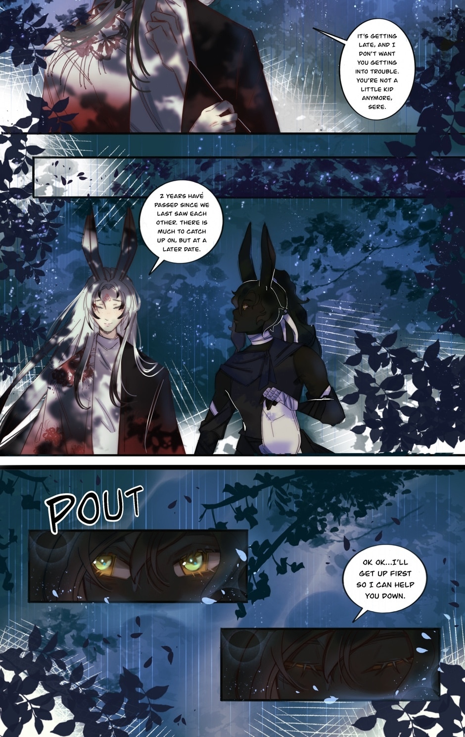 This is a more experimental short webcomic for me to flesh out my characters for when I begin planning the main webcomic! This short comic, and it's events, do happen in the main story, however! Meet Desiderius (white haired bunny) and Serenus (black haired bunny). In this short BL comic, Serenus struggles to find his words and emotions after Desiderius being in recovery for 2 years outside of their village. Serenus has always withheld his feeling for Desiderius even as a small bun. Now his feelings threaten to spill due to outside forces. I do not want to say much as this is a short to a bigger in the process story I will release in later time. Thank you for reading!