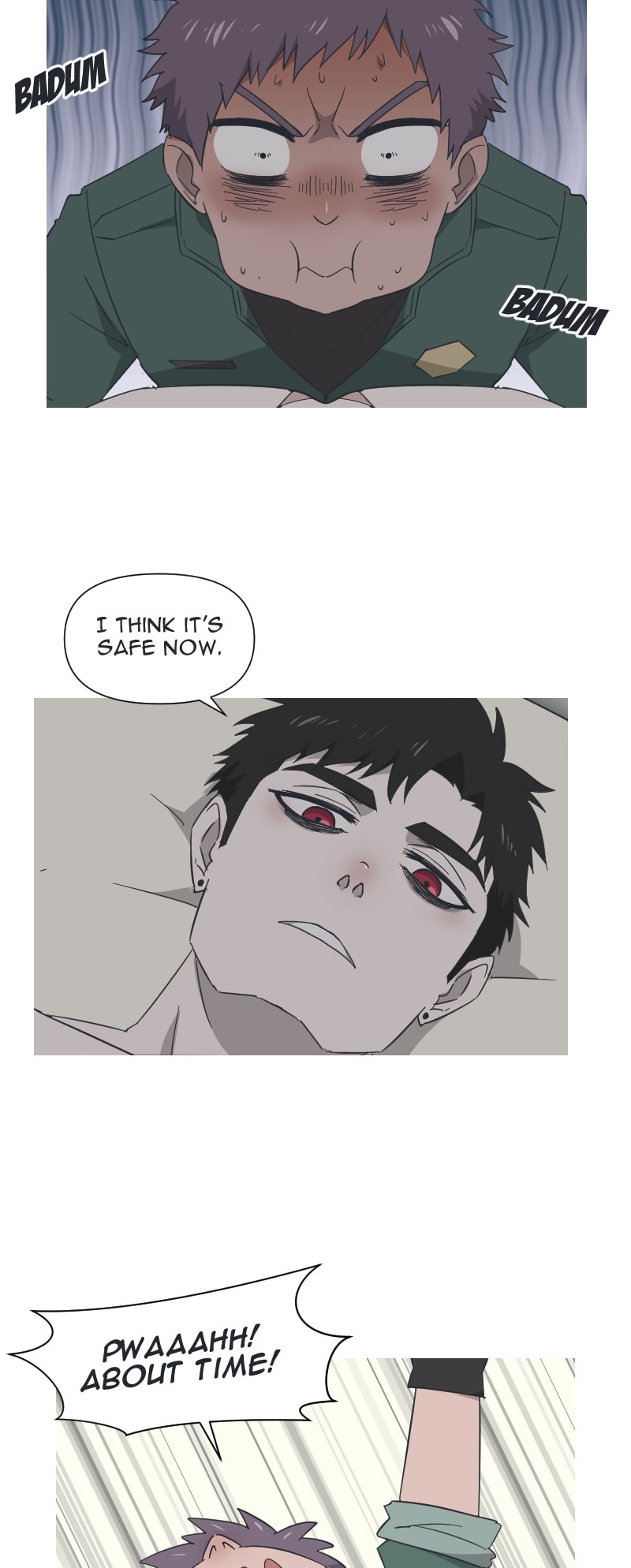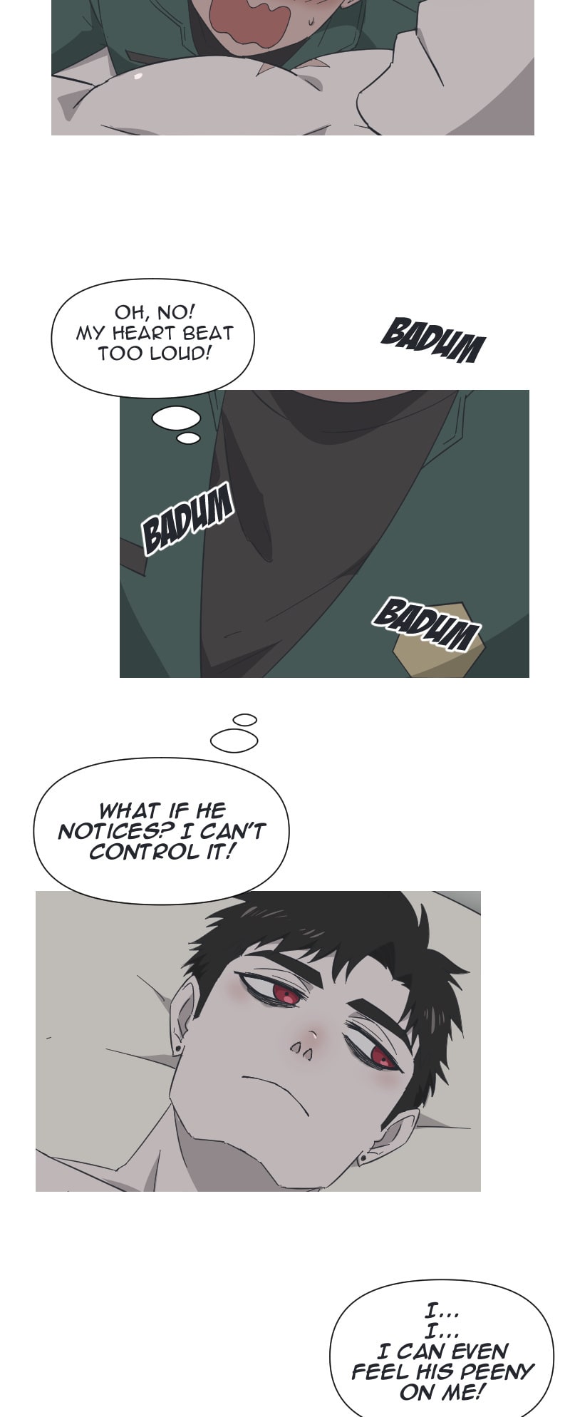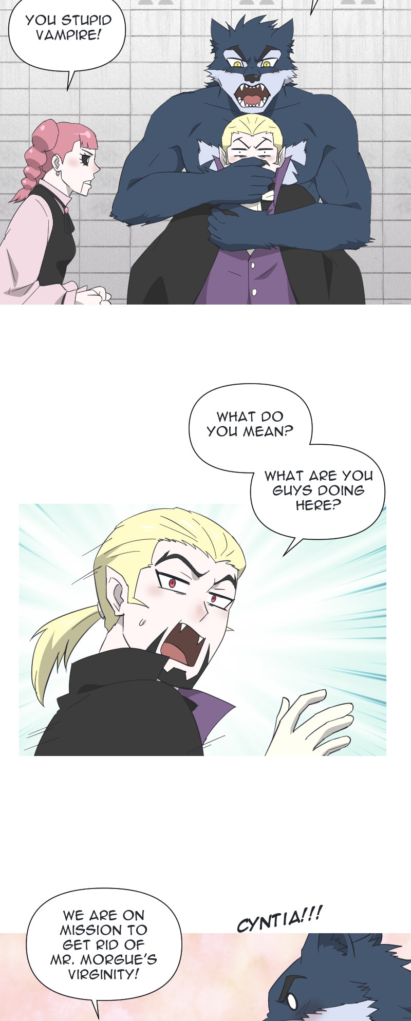 I wonder whether Mr. Morgue has telepathic powers &/or acute hearing. If not the former but the latter, does he have sufficient experience to differentiate different types of heartbeats? In short, is aware of the groundskeeper’s lust!